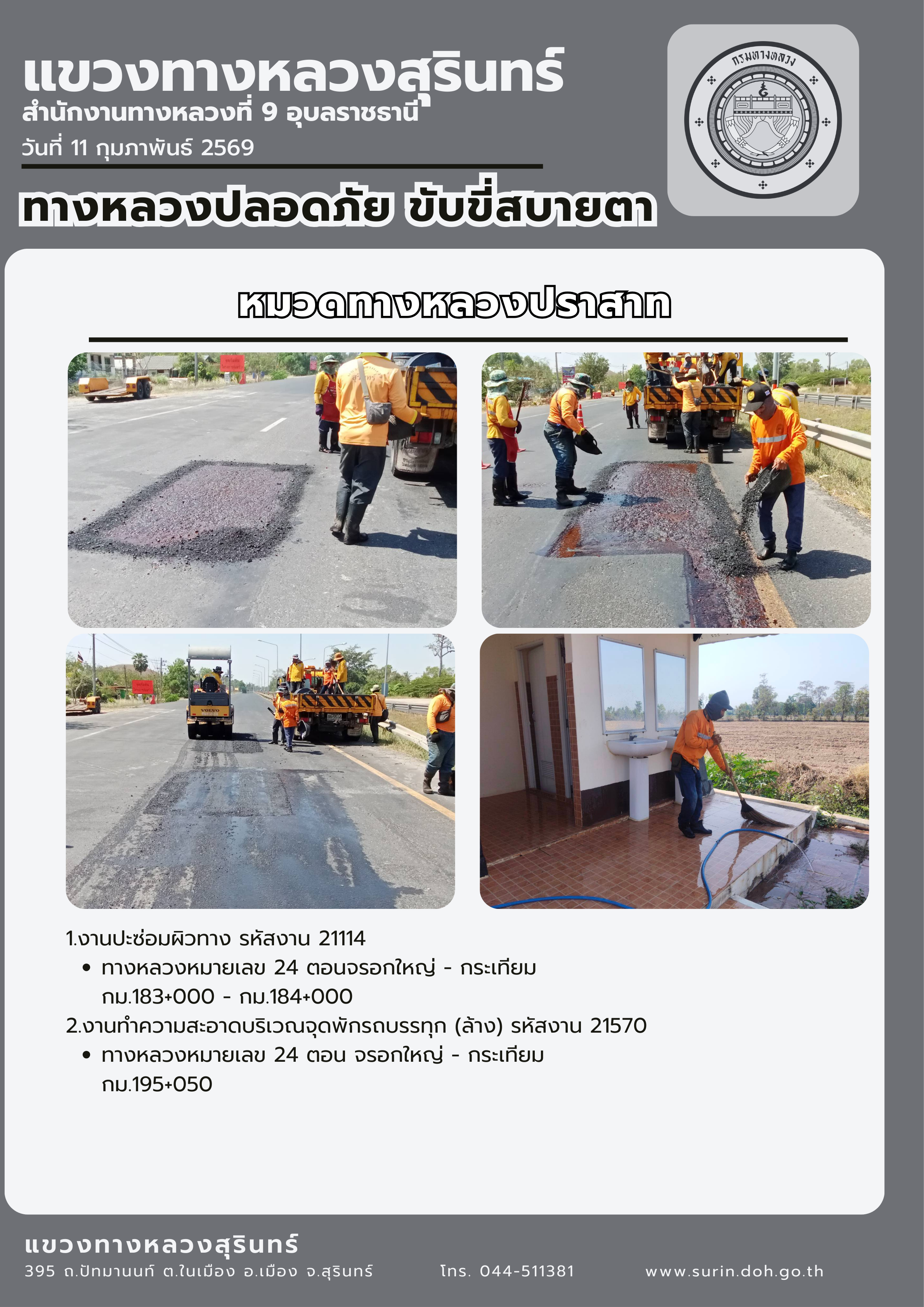 ทางหลวงปลอดภัย ขับขี่สบายตา 11 กุมภาพันธ์ 2569 |