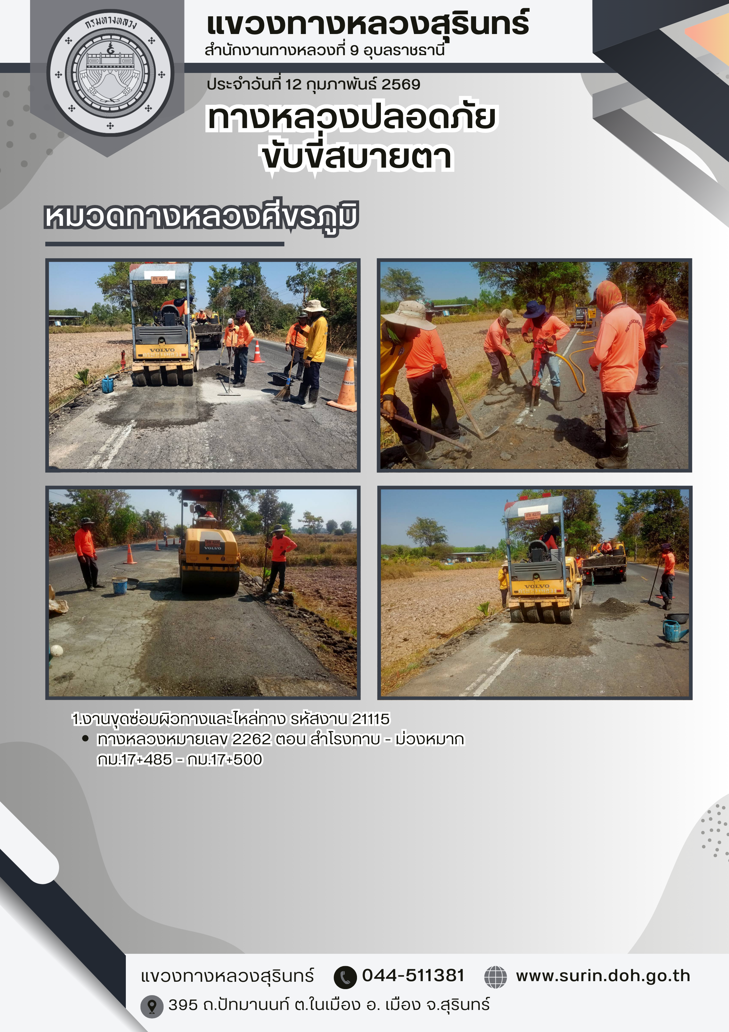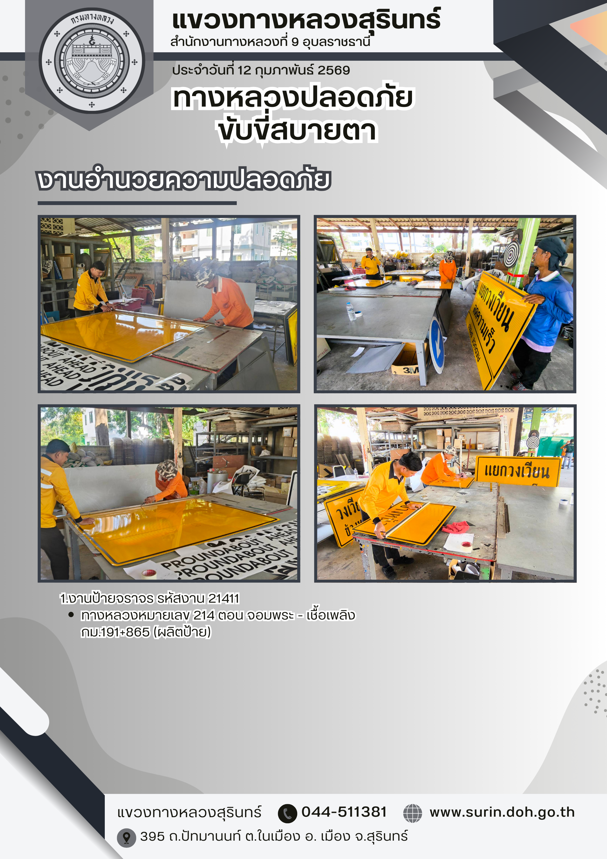 ทางหลวงปลอดภัย ขับขี่สบายตา 12 กุมภาพันธ์ 2569 |