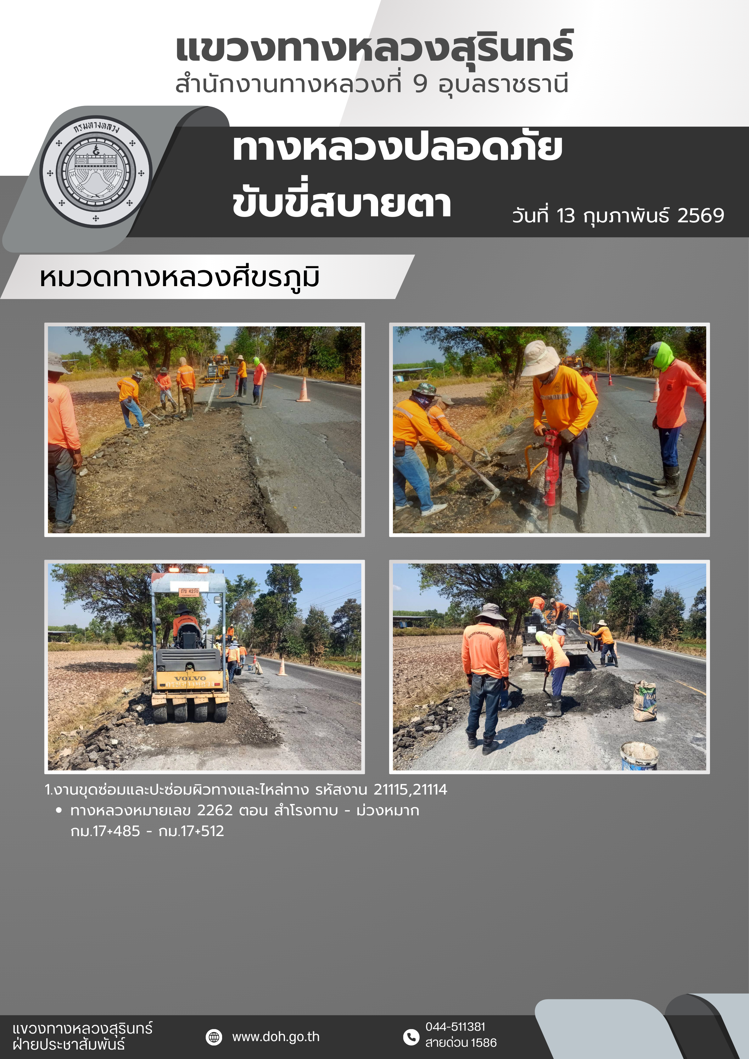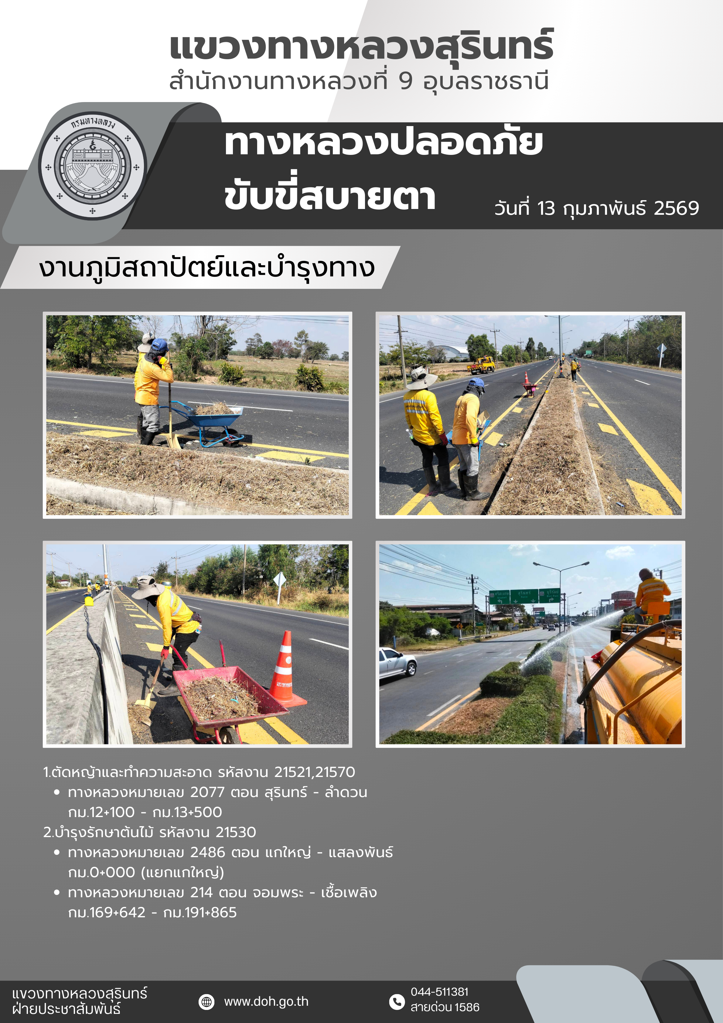 ทางหลวงปลอดภัย ขับขี่สบายตา 13 กุมภาพันธ์ 2569 |