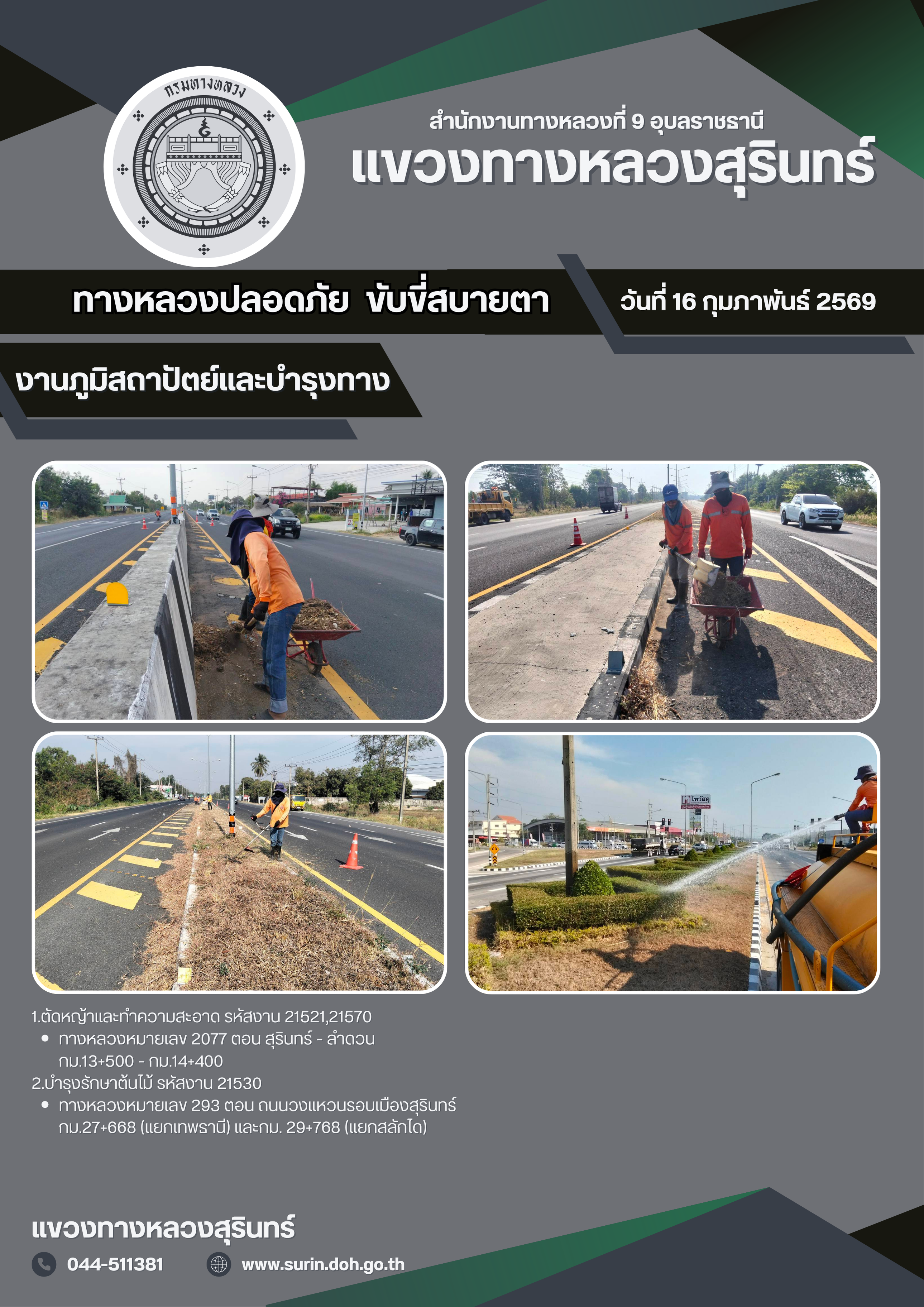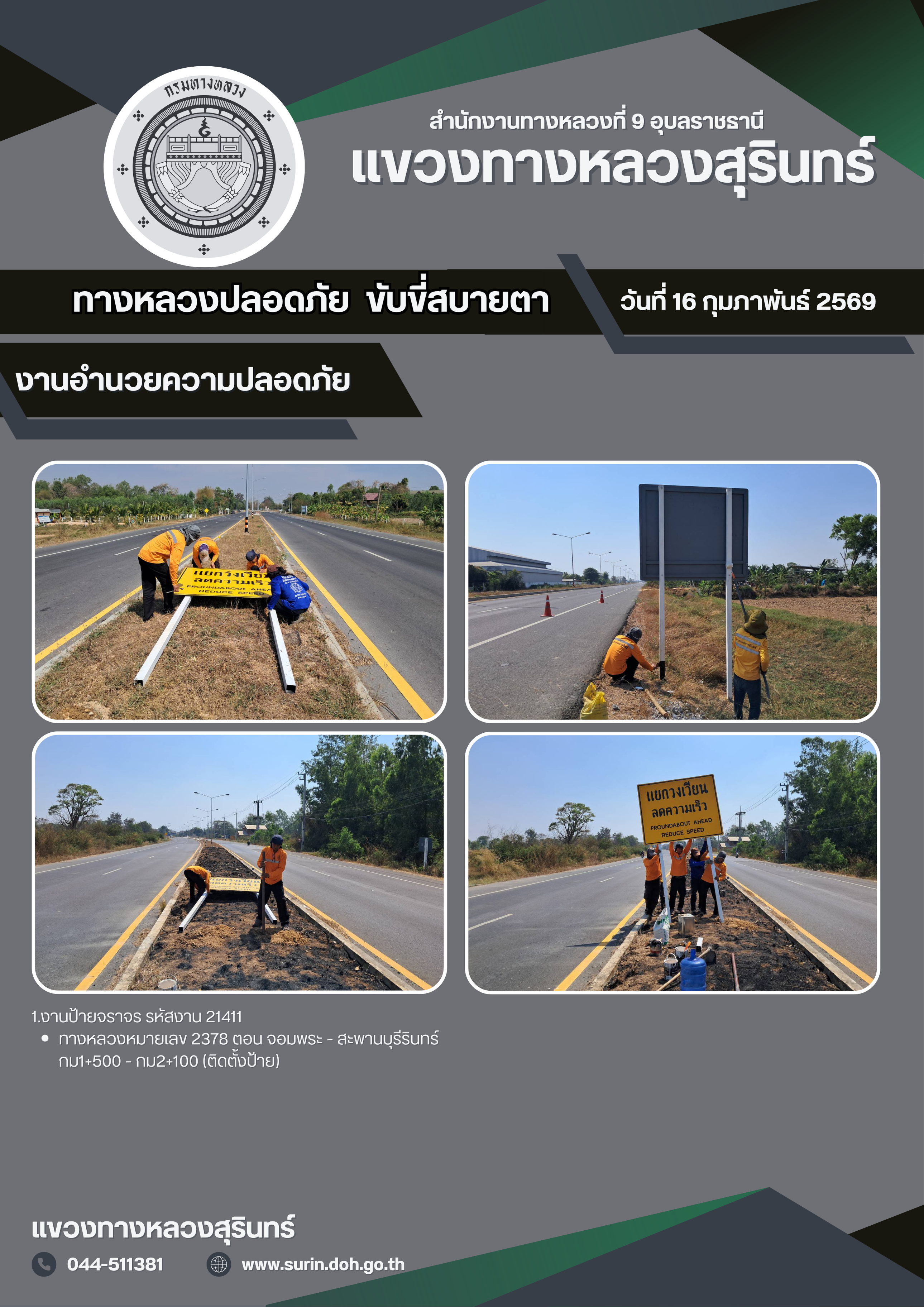 ทางหลวงปลอดภัย ขับขี่สบายตา 16 กุมภาพันธ์ 2569 |