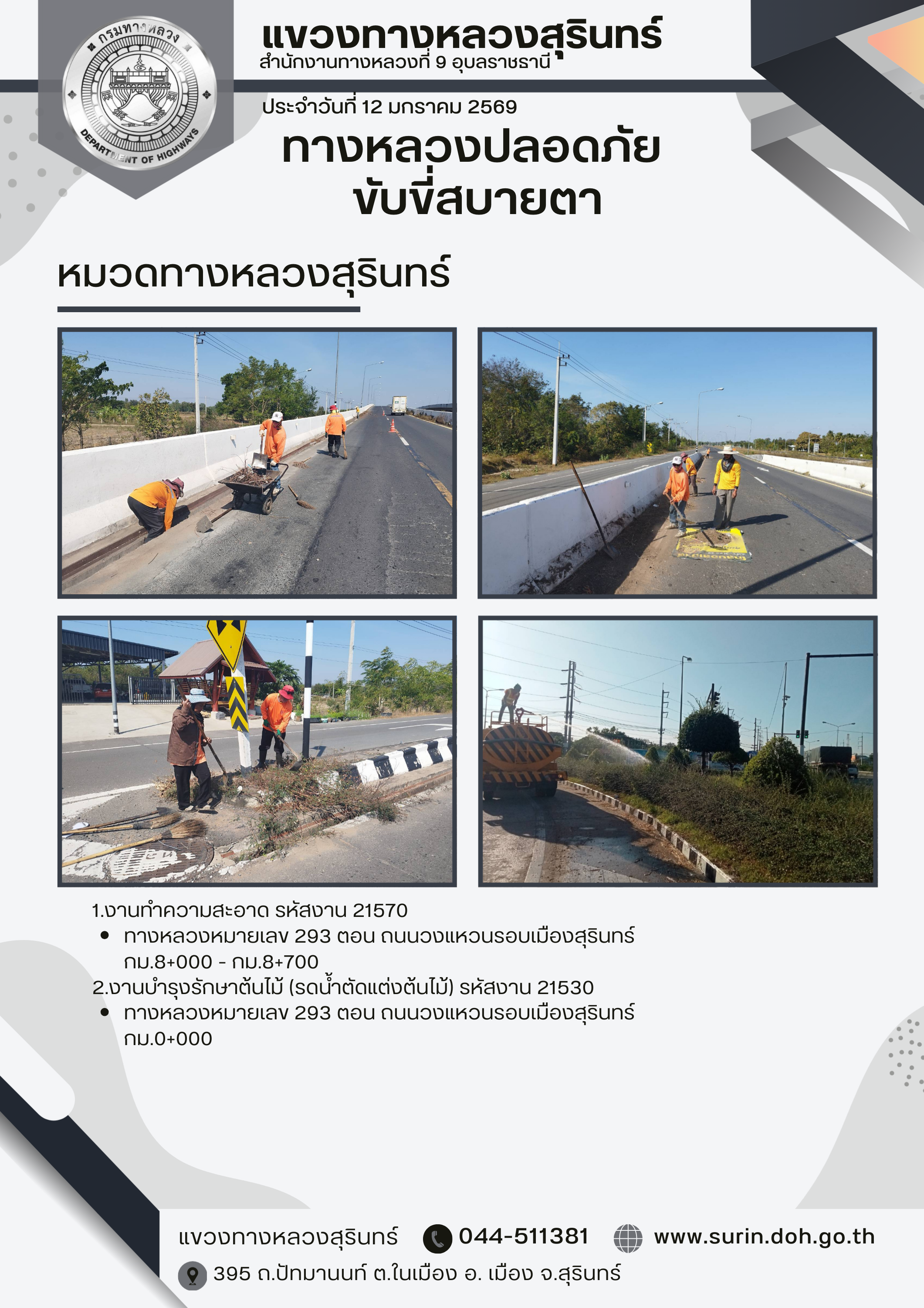 ทางหลวงปลอดภัย ขับขี่สบายตา 12 มกราคม 2569 |