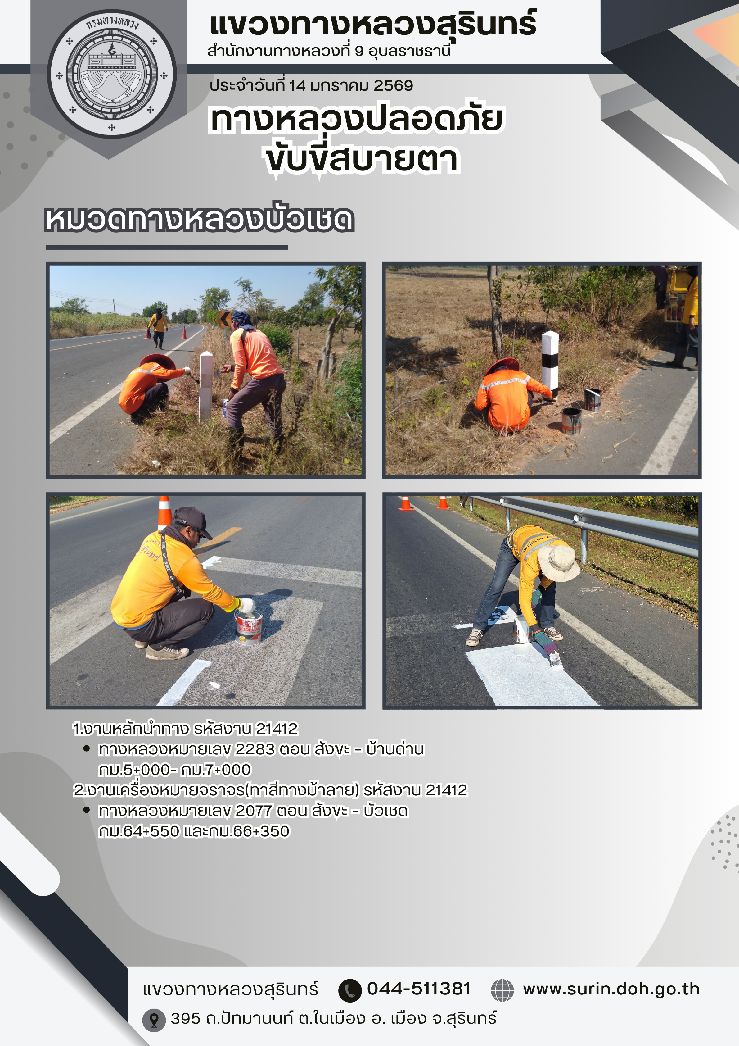 ทางหลวงปลอดภัย ขับขี่สบายตา 14 มกราคม 2569 |