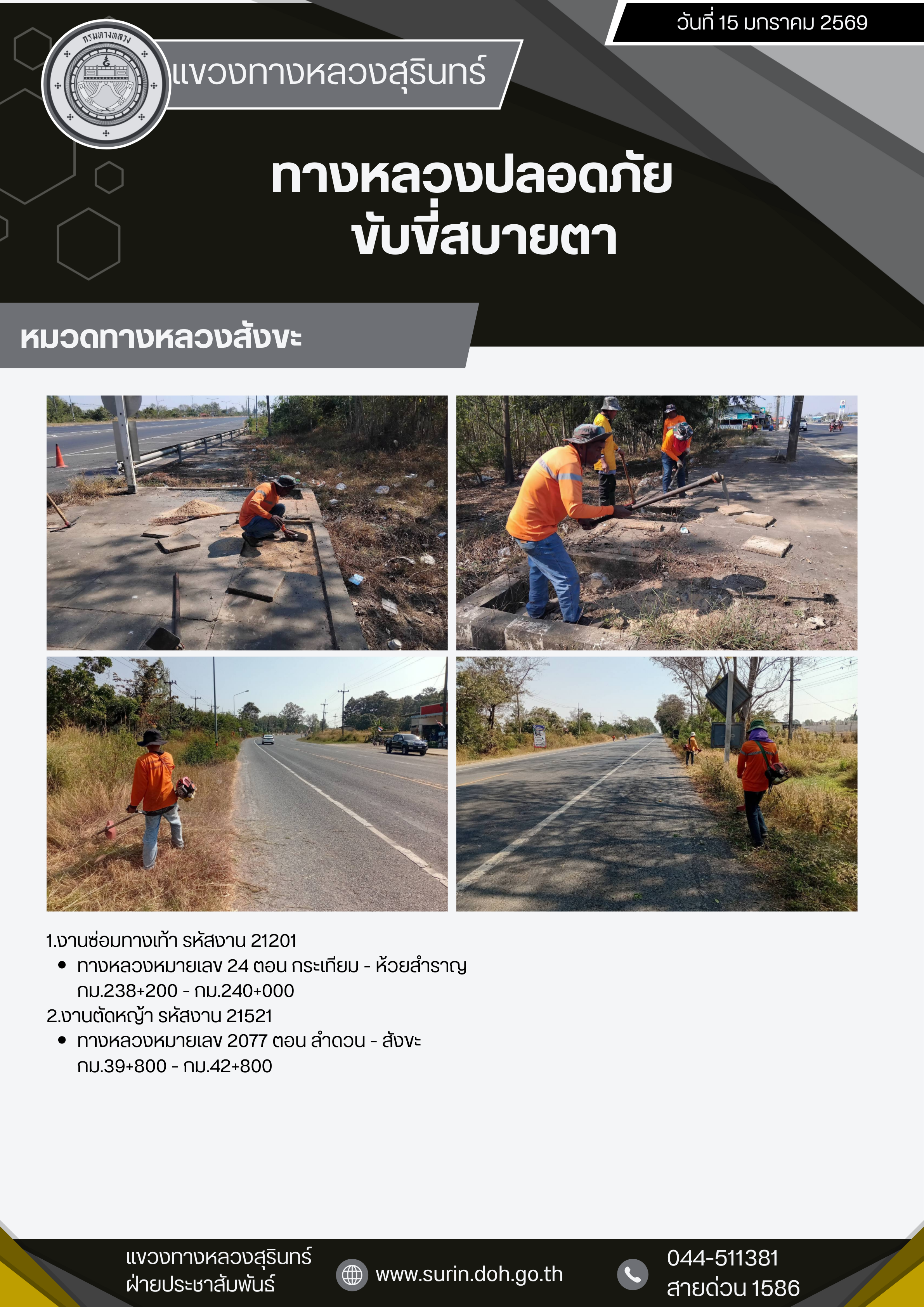 ทางหลวงปลอดภัย ขับขี่สบายตา 15 มกราคม 2569 |