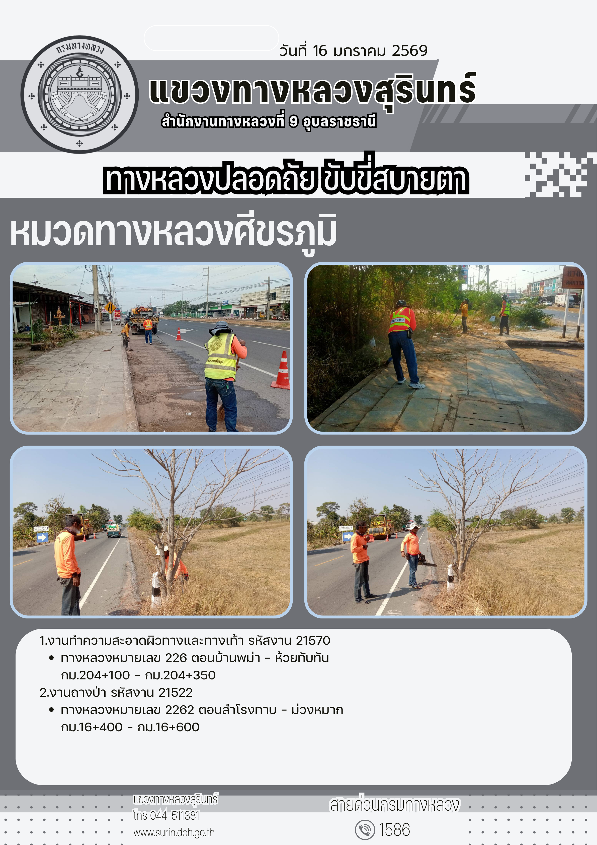 ทางหลวงปลอดภัย ขับขี่สบายตา 16 มกราคม 2569 |