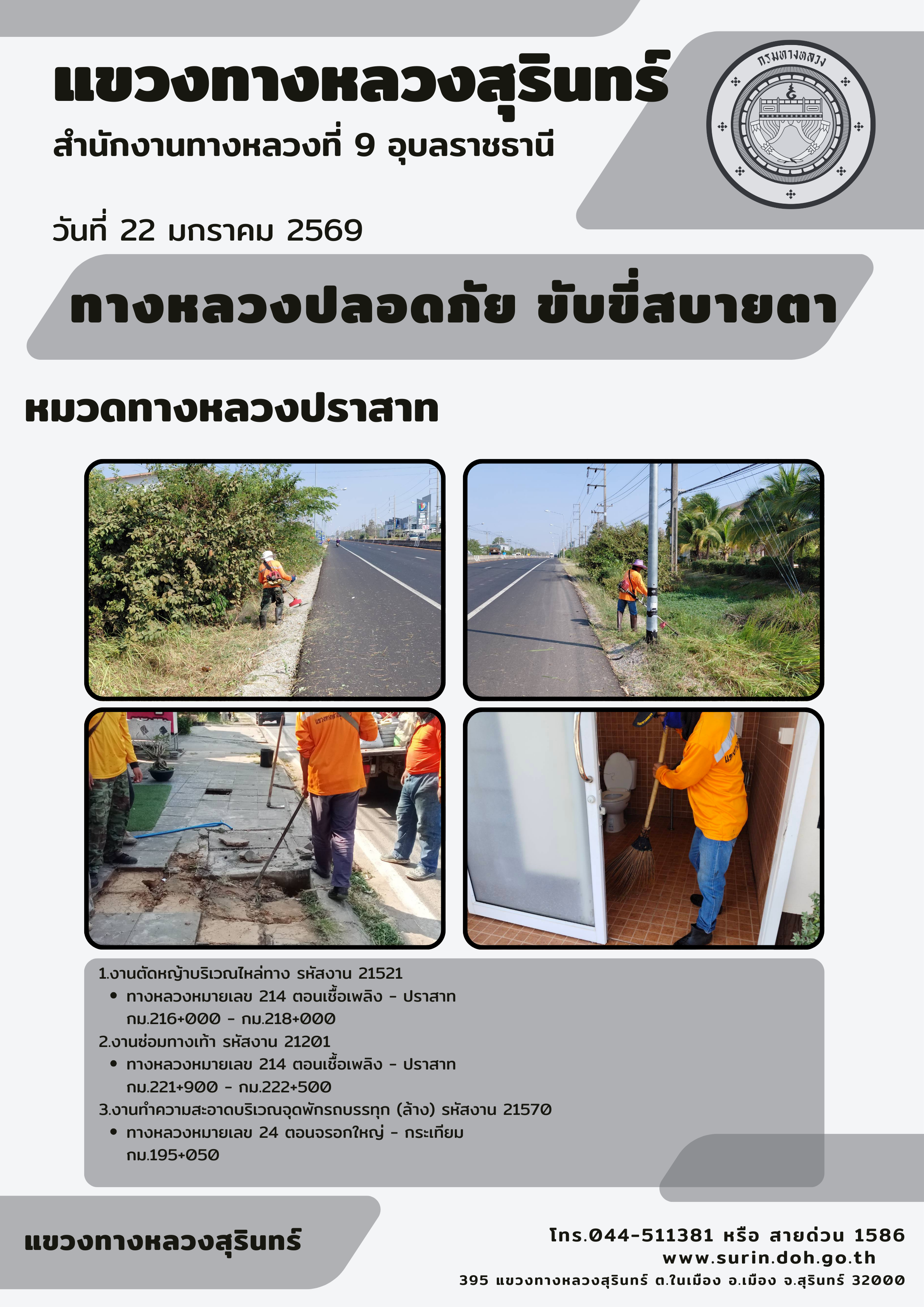 ทางหลวงปลอดภัย ขับขี่สบายตา 22 มกราคม 2569 |