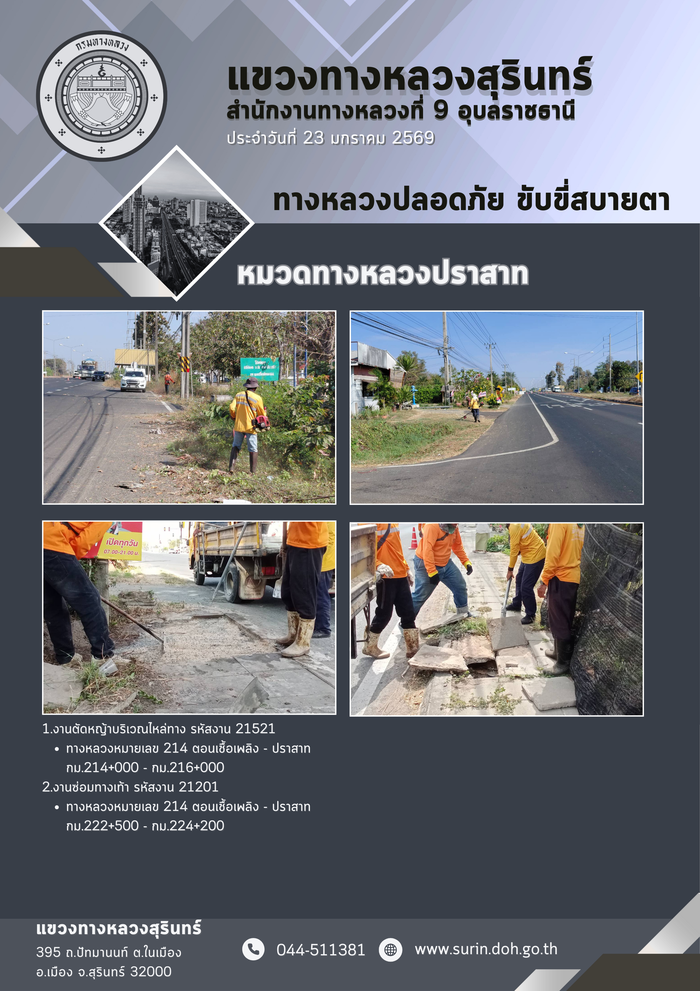 ทางหลวงปลอดภัย ขับขี่สบายตา 23 มกราคม 2569 |