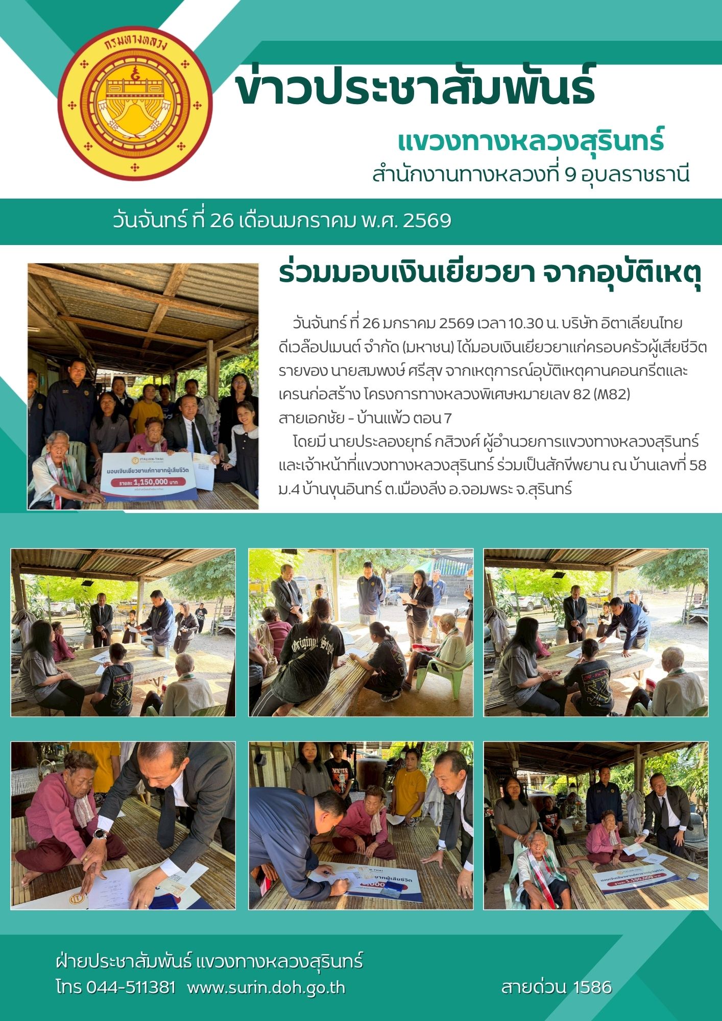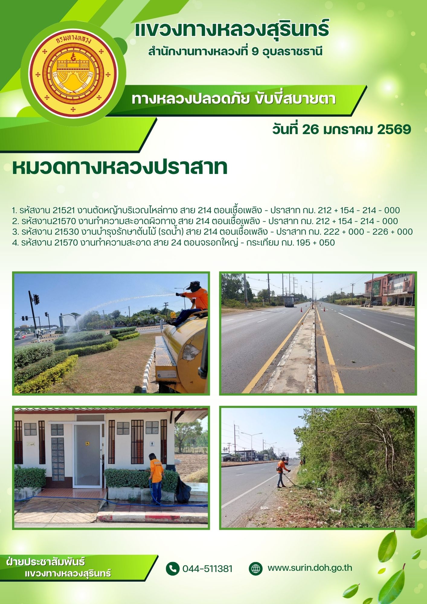 ทางหลวงปลอดภัย ขับขี่สบายตา 26 มกราคม 2569 |