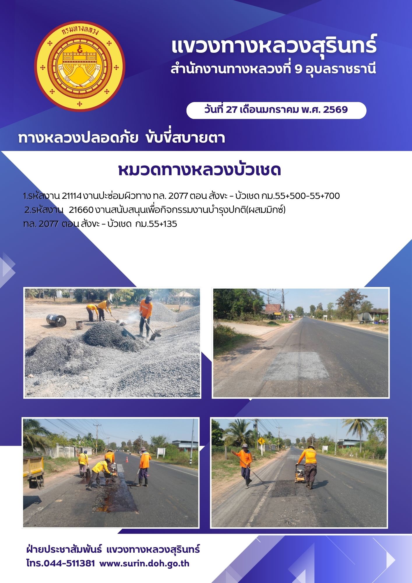 ทางหลวงปลอดภัย ขับขี่สบายตา 27 มกราคม 2569 |