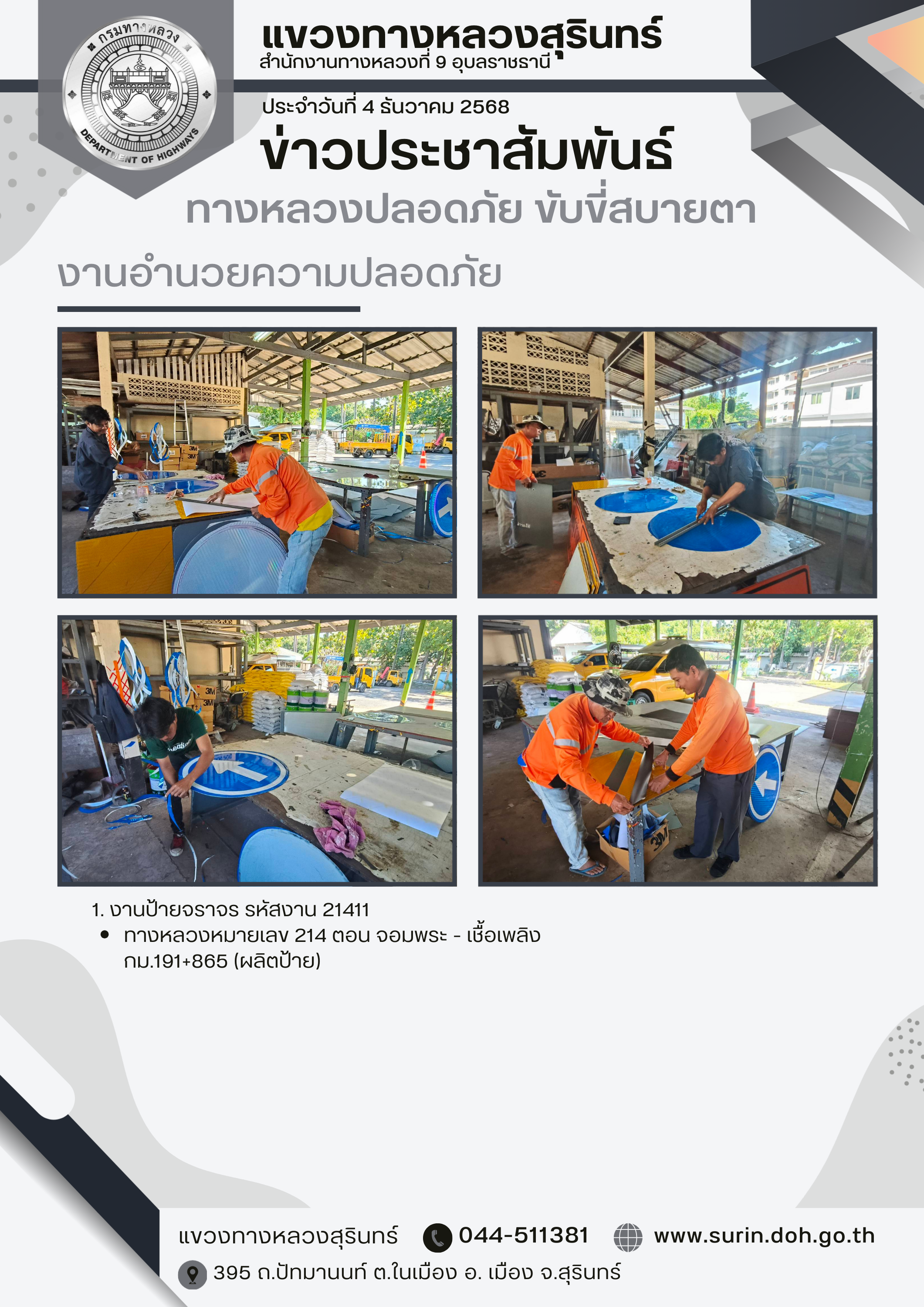 ทางหลวงปลอดภัย ขับขี่สบายตา 4 ธันวาคม 2568 |