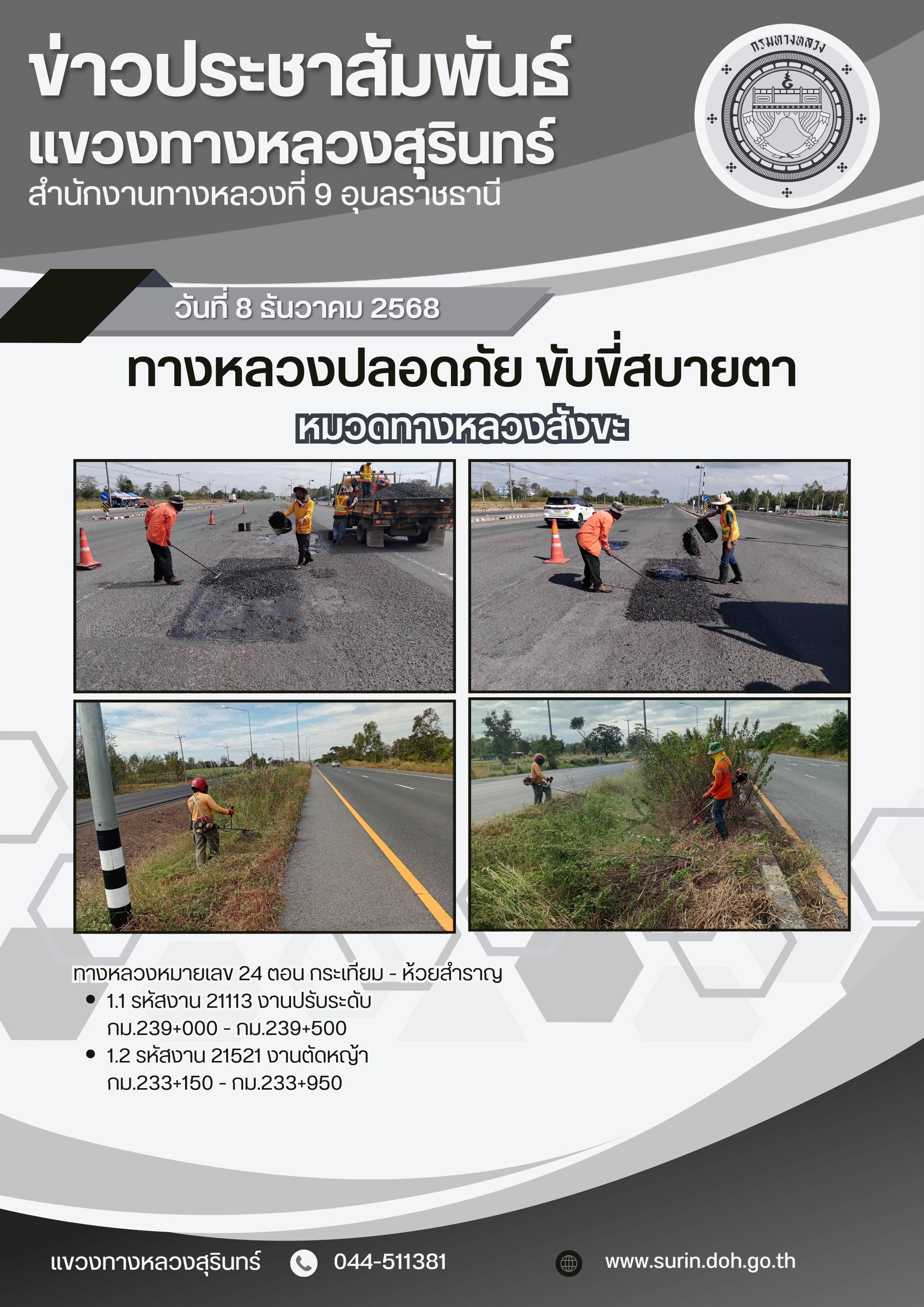 ทางหลวงปลอดภัย ขับขี่สบายตา 8 ธันวาคม 2568 |
