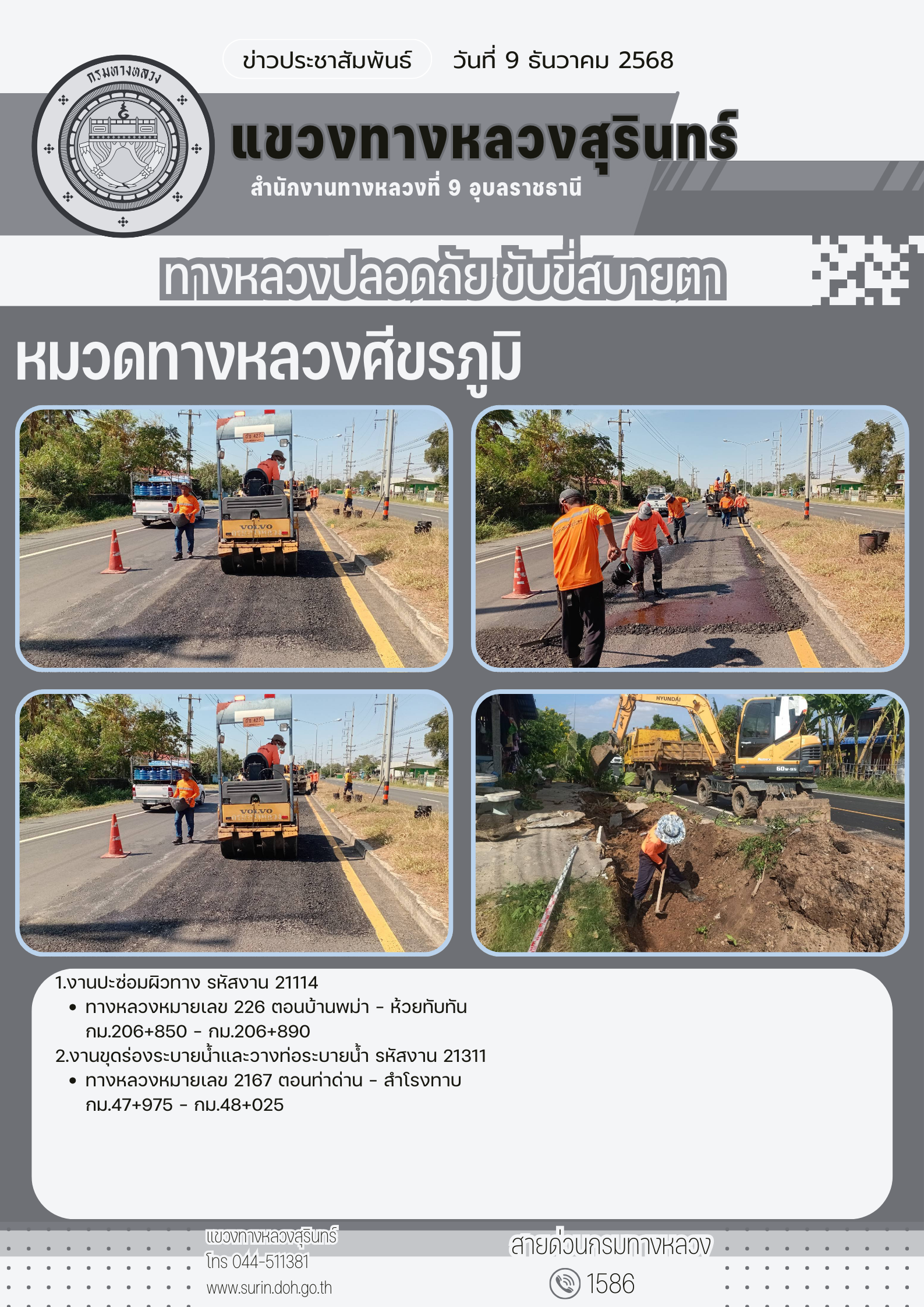ทางหลวงปลอดภัย ขับขี่สบายตา 9 ธันวาคม 2568 |