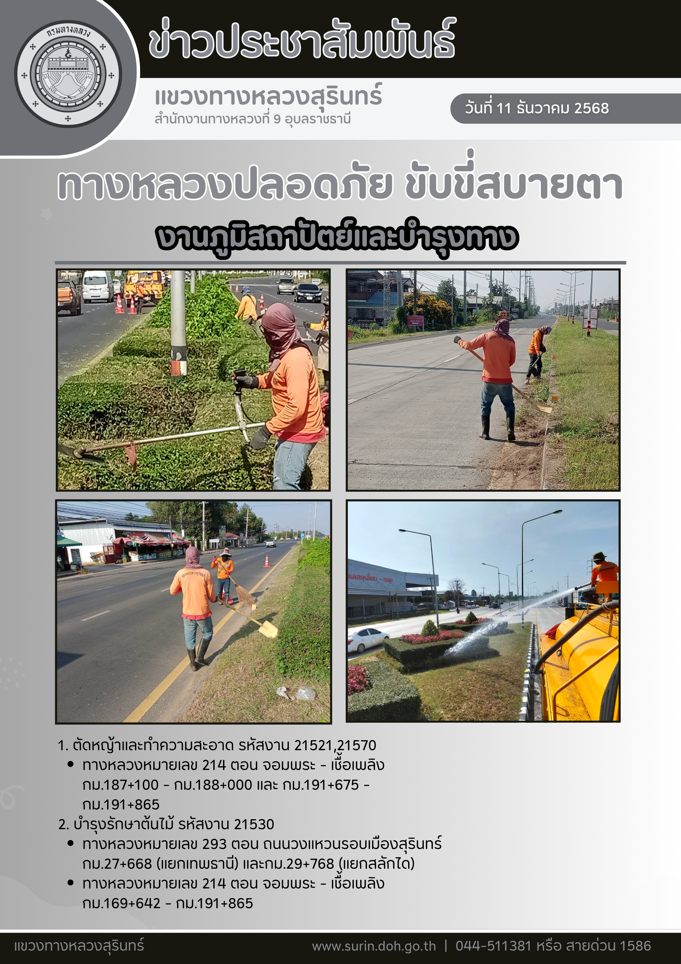 ทางหลวงปลอดภัย ขับขี่สบายตา 11 ธันวาคม 2568 |
