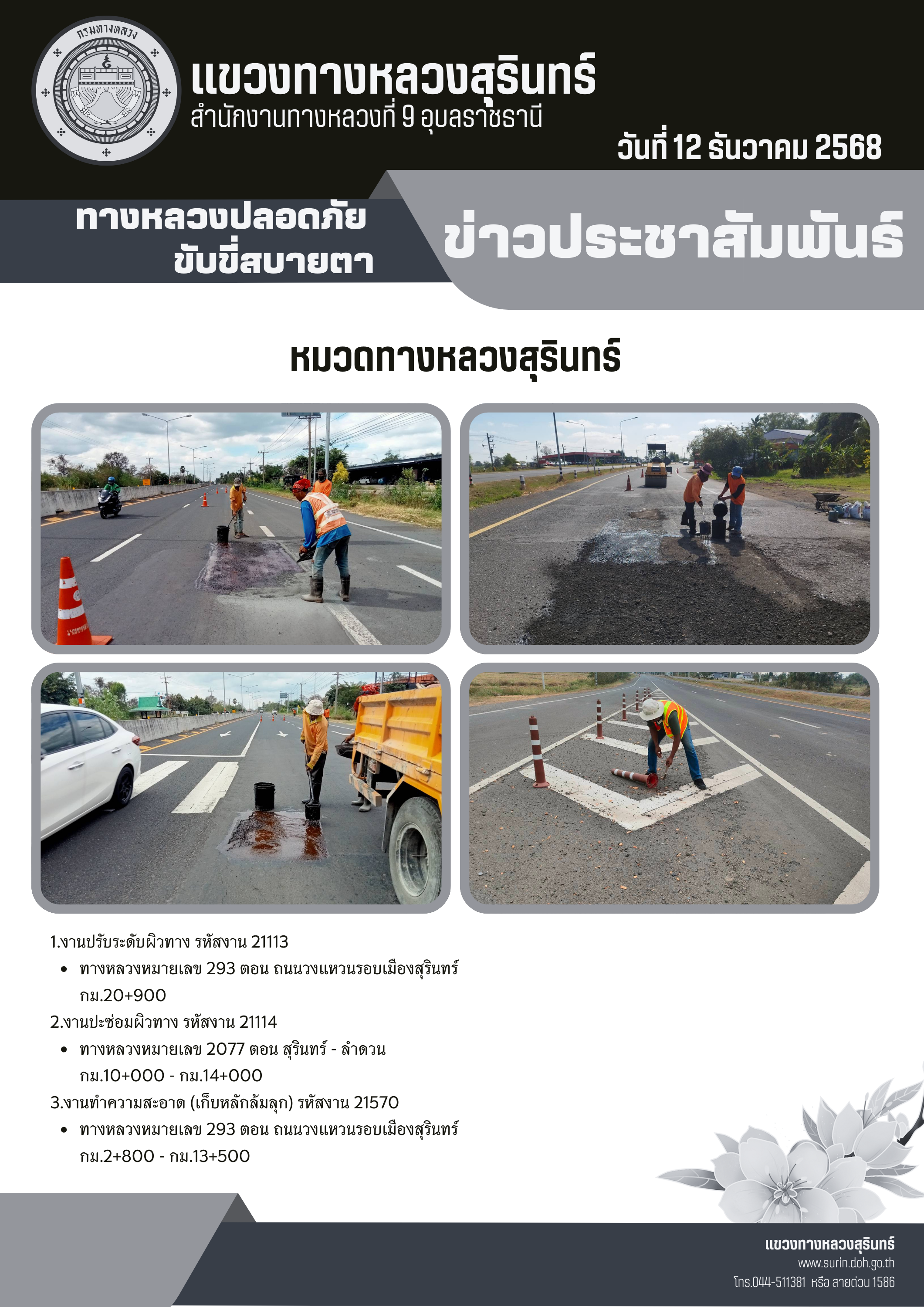 ทางหลวงปลอดภัย ขับขี่สบายตา 12 ธันวาคม 2568 |