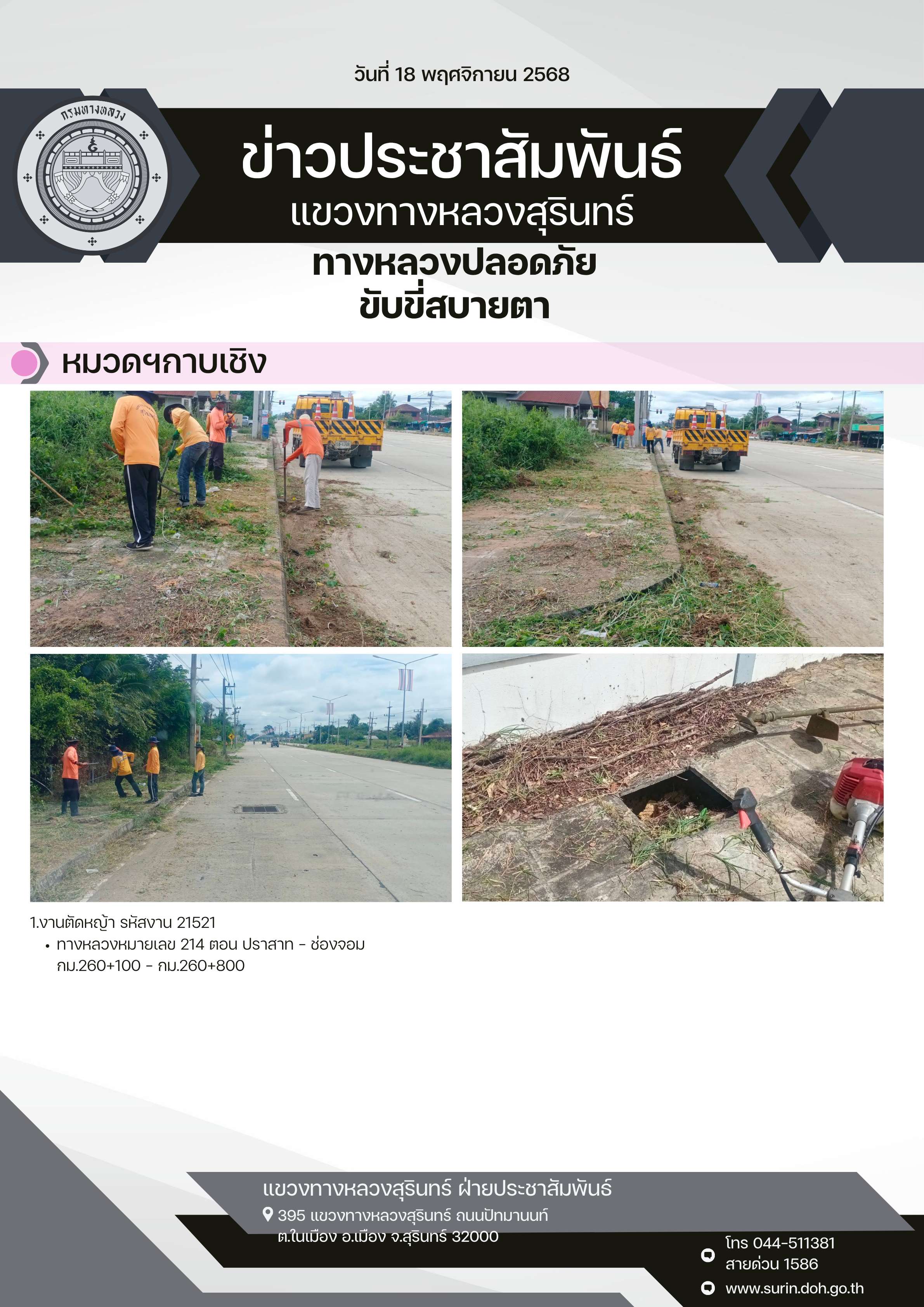 ทางหลวงปลอดภัย ขับขี่สบายตา 18 พฤศจิกายน 2568 |