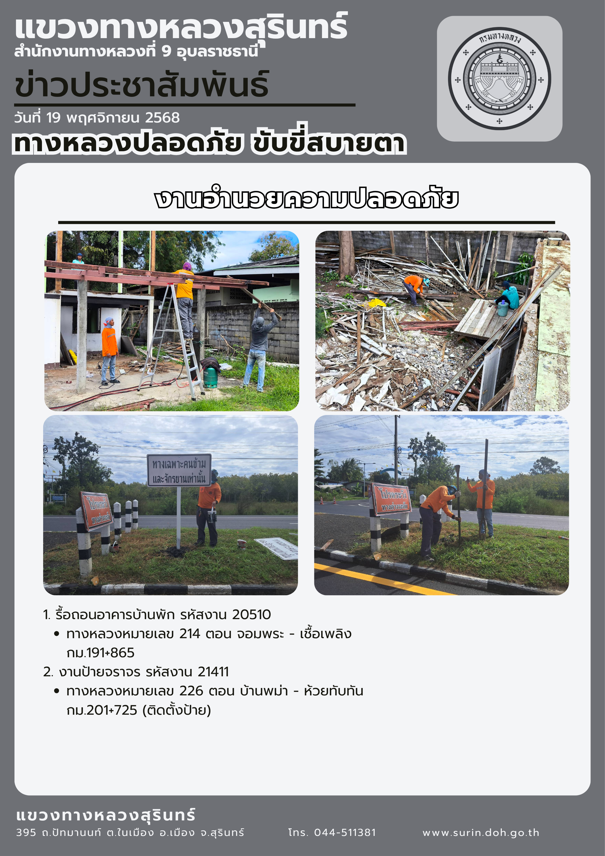 ทางหลวงปลอดภัย ขับขี่สบายตา 19 พฤศจิกายน 2568 |