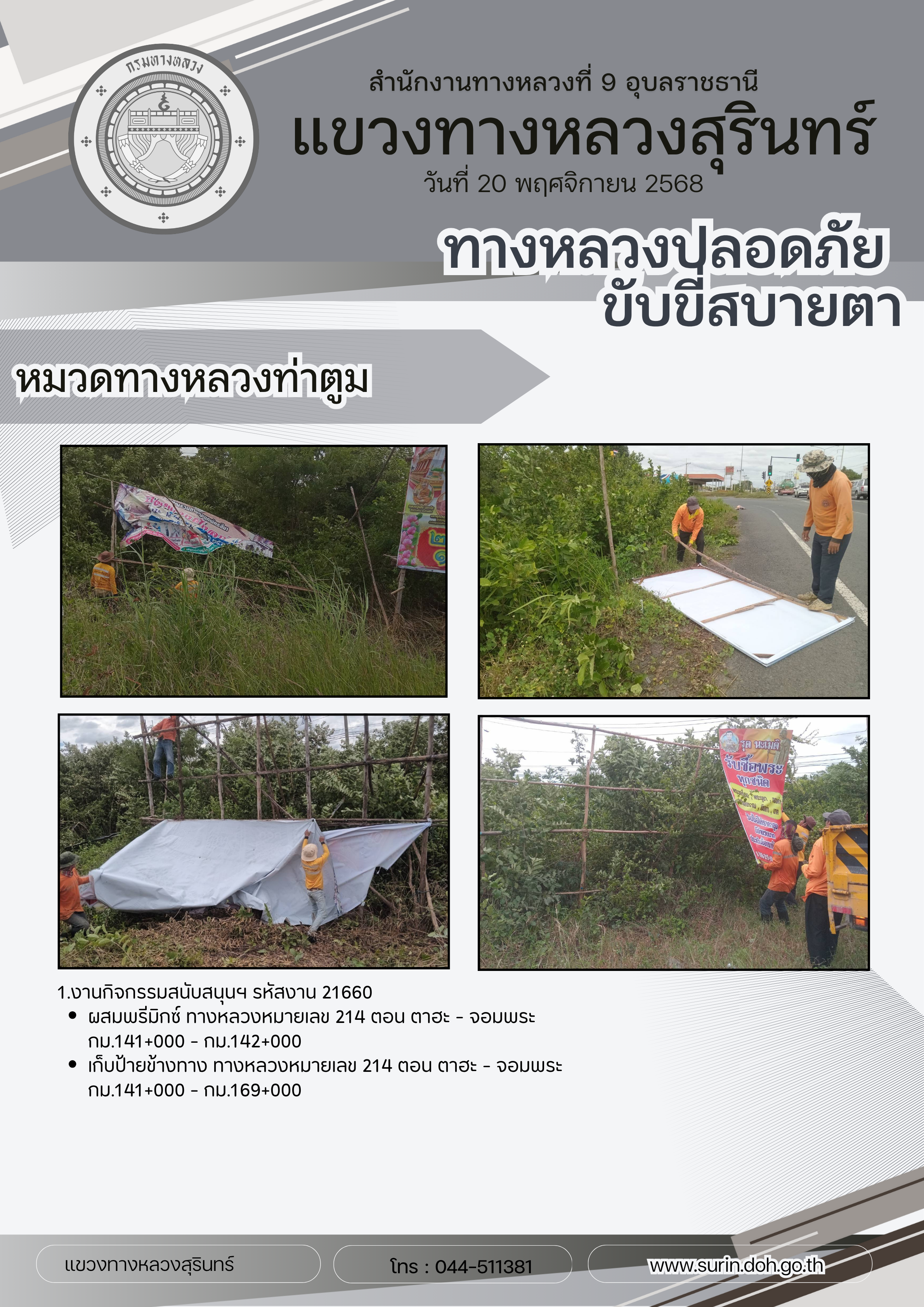 ทางหลวงปลอดภัย ขับขี่สบายตา 20 พฤศจิกายน 2568 |