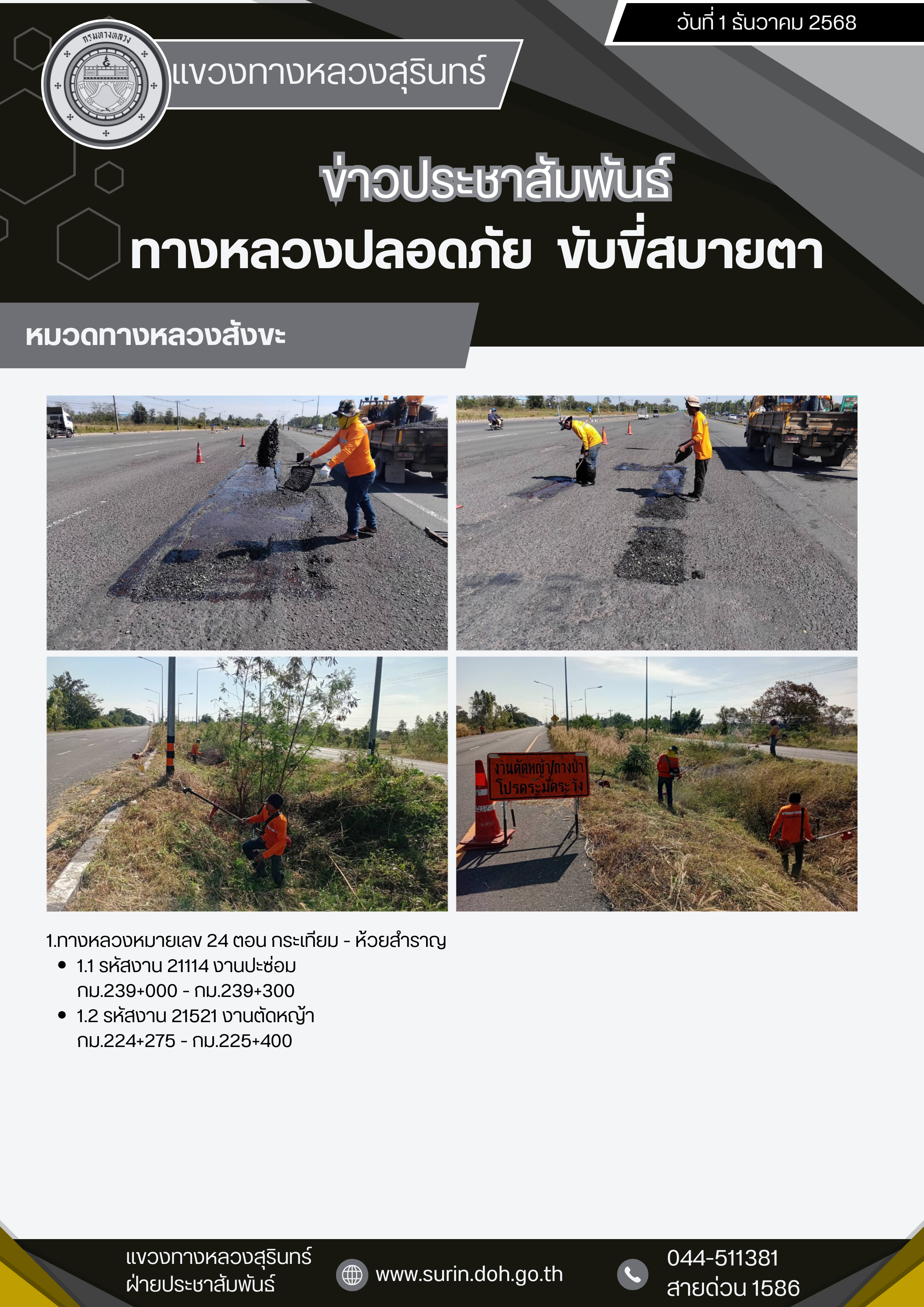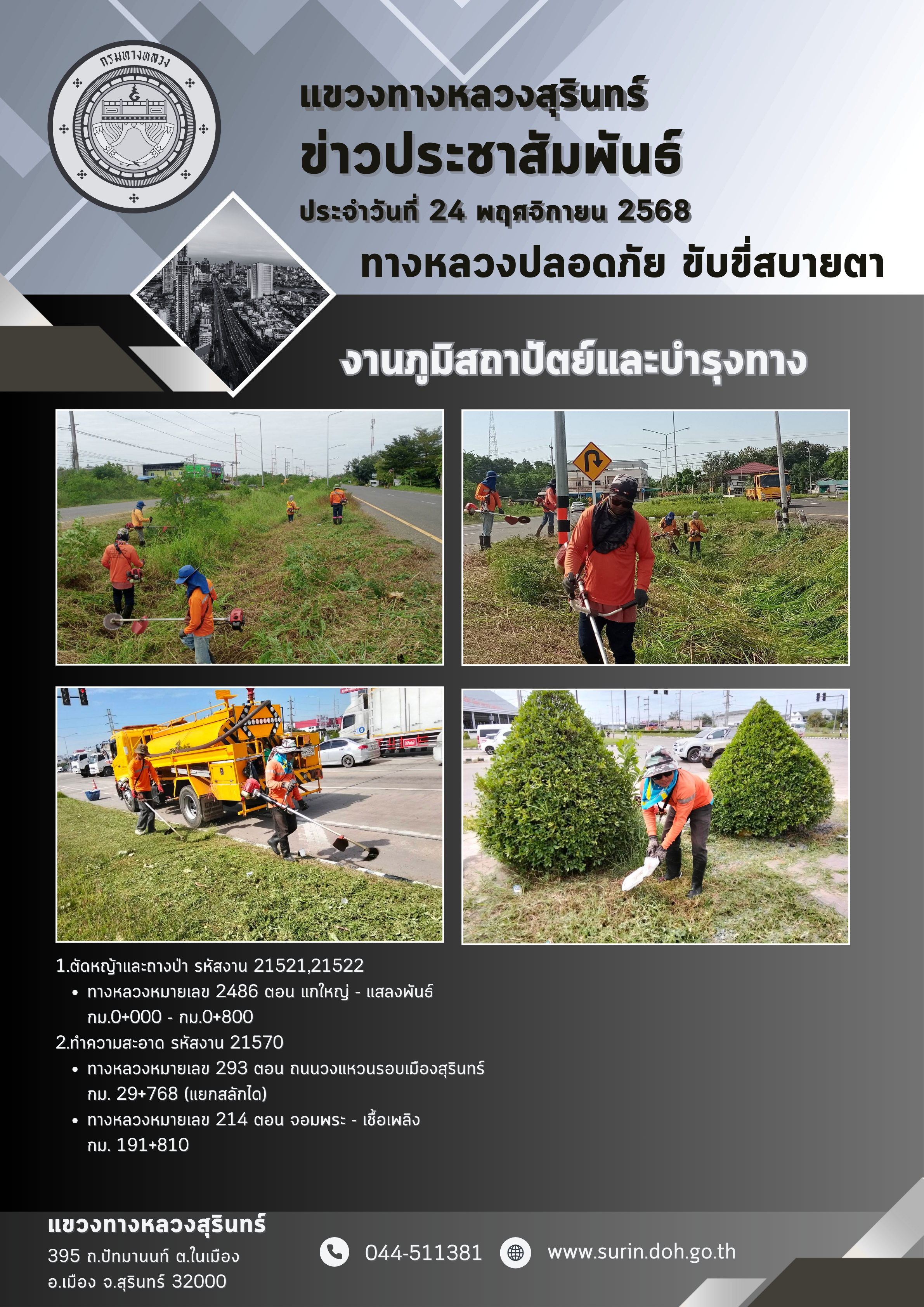 ทางหลวงปลอดภัย ขับขี่สบายตา 24 พฤศจิกายน 2568 |