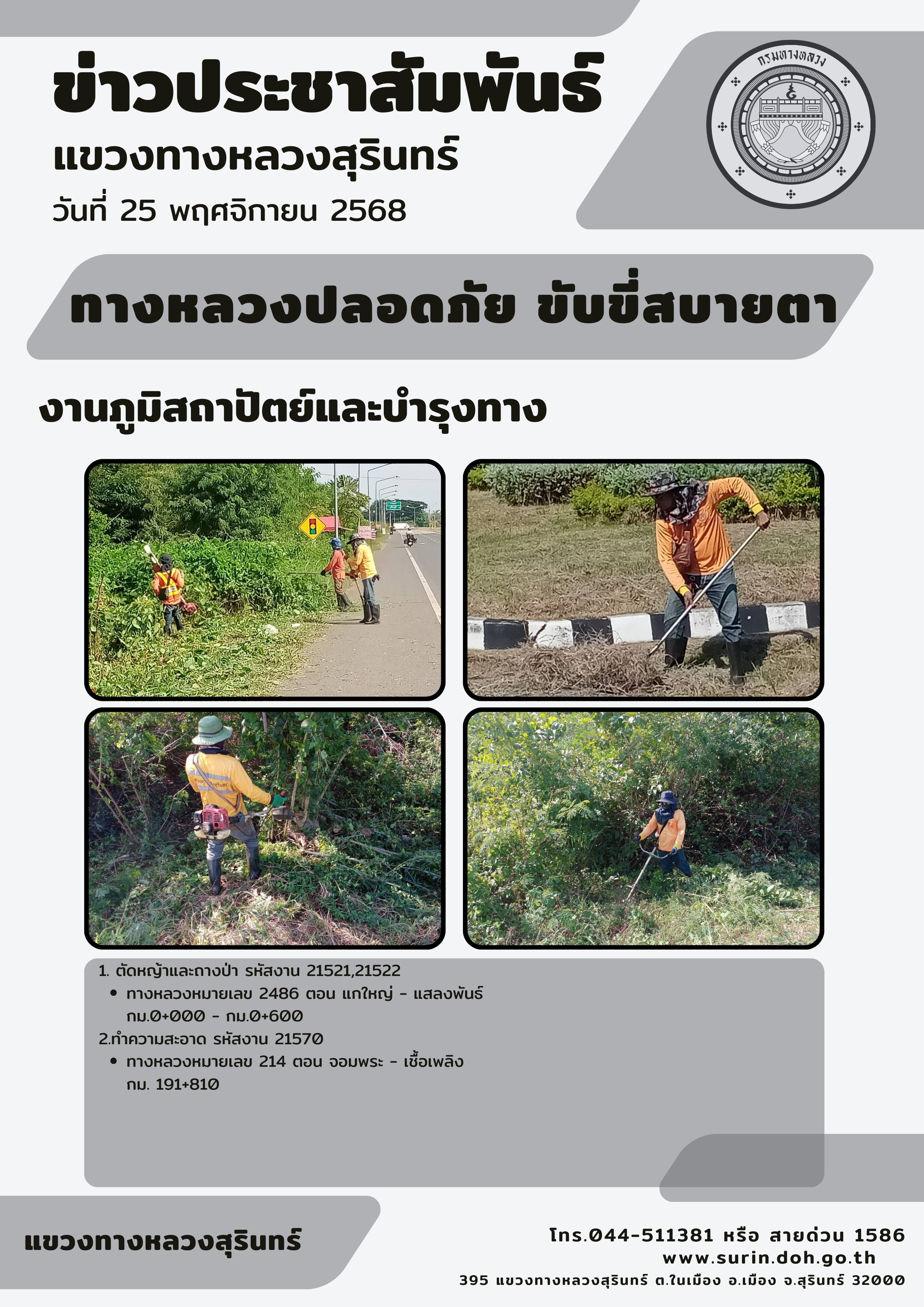 ทางหลวงปลอดภัย ขับขี่สบายตา 25 พฤศจิกายน 2568 |