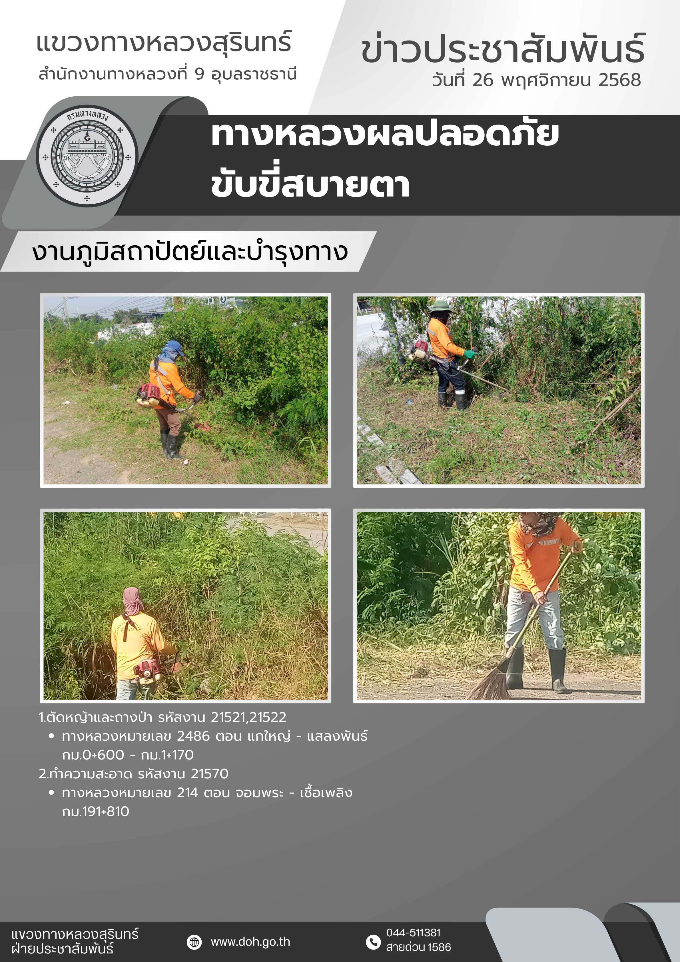 ทางหลวงปลอดภัย ขับขี่สบายตา 26 พฤศจิกายน 2568 |