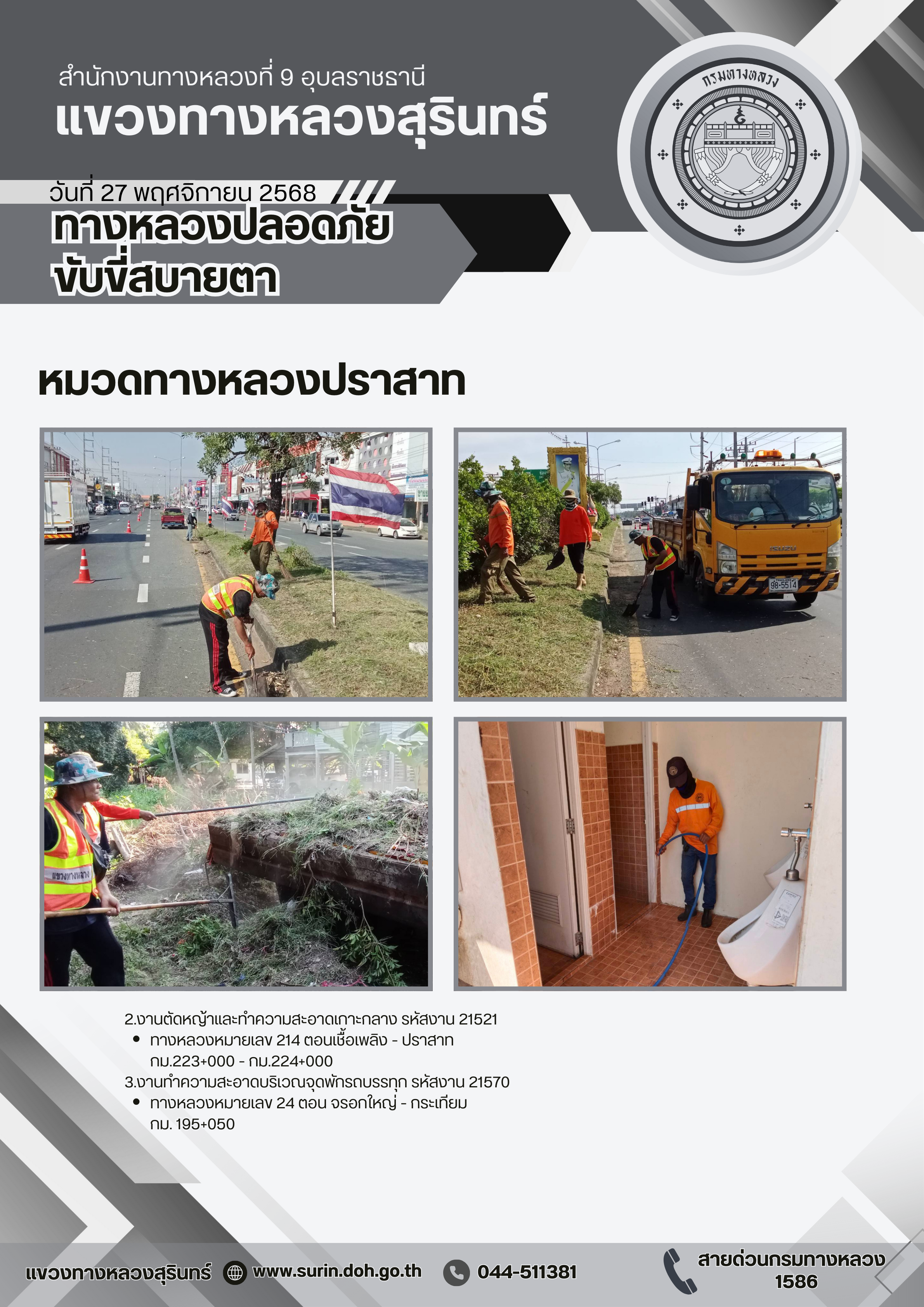 ทางหลวงปลอดภัย ขับขี่สบายตา 27 พฤศจิกายน 2568 |