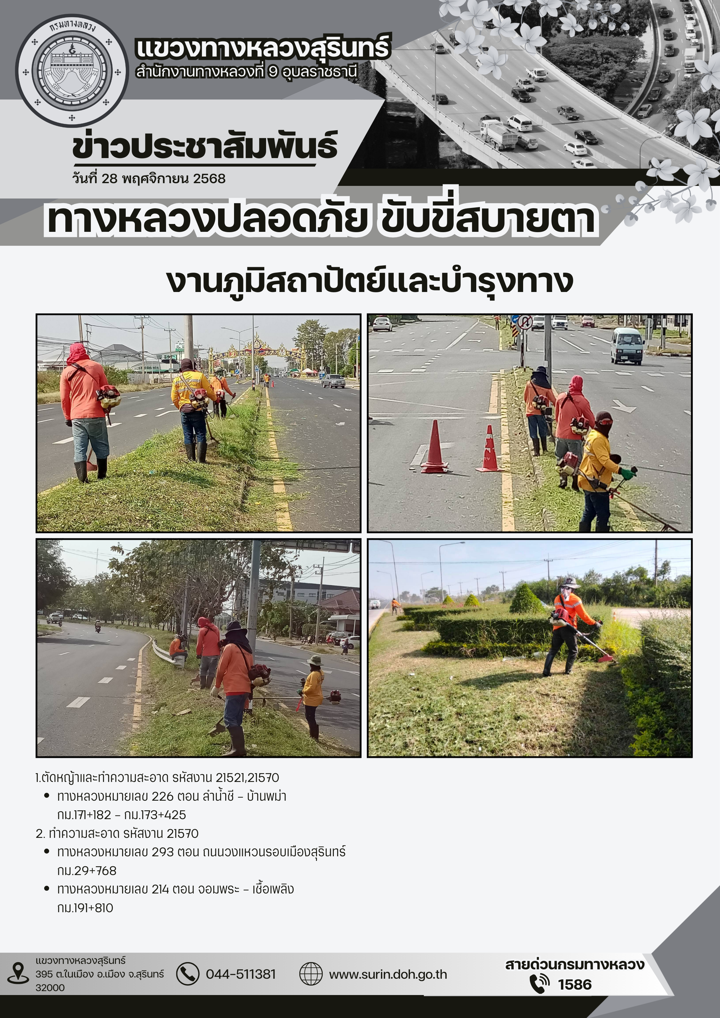 ทางหลวงปลอดภัย ขับขี่สบายตา 28 พฤศจิกายน 2568 |