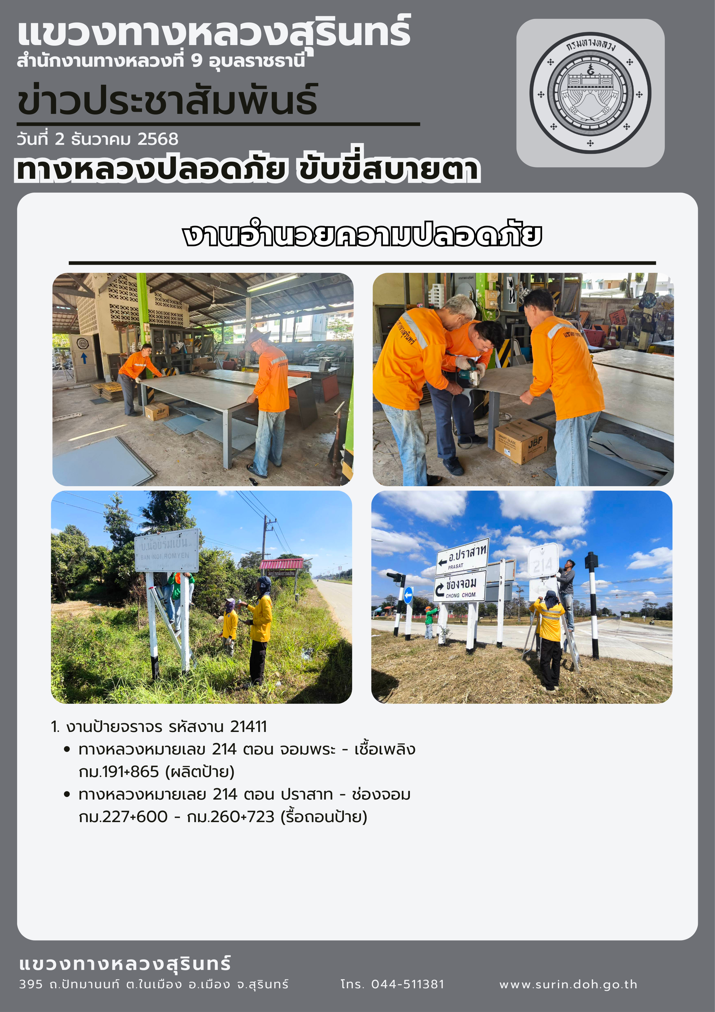 ทางหลวงปลอดภัย ขับขี่สบายตา 2 ธันวาคม 2568 |