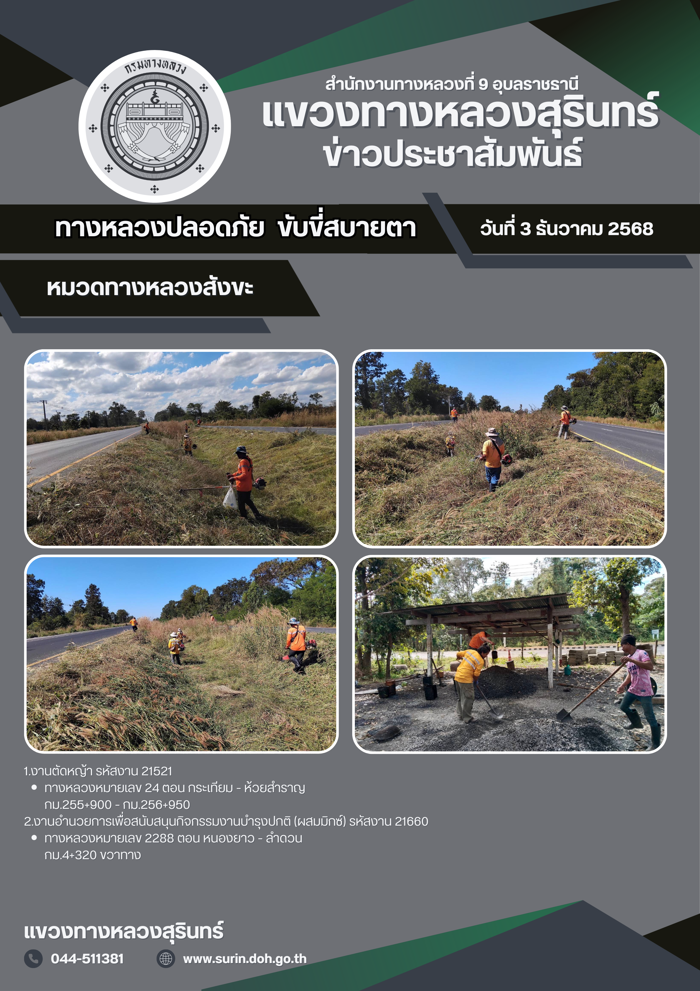 ทางหลวงปลอดภัย ขับขี่สบายตา 3 ธันวาคม 2568 |