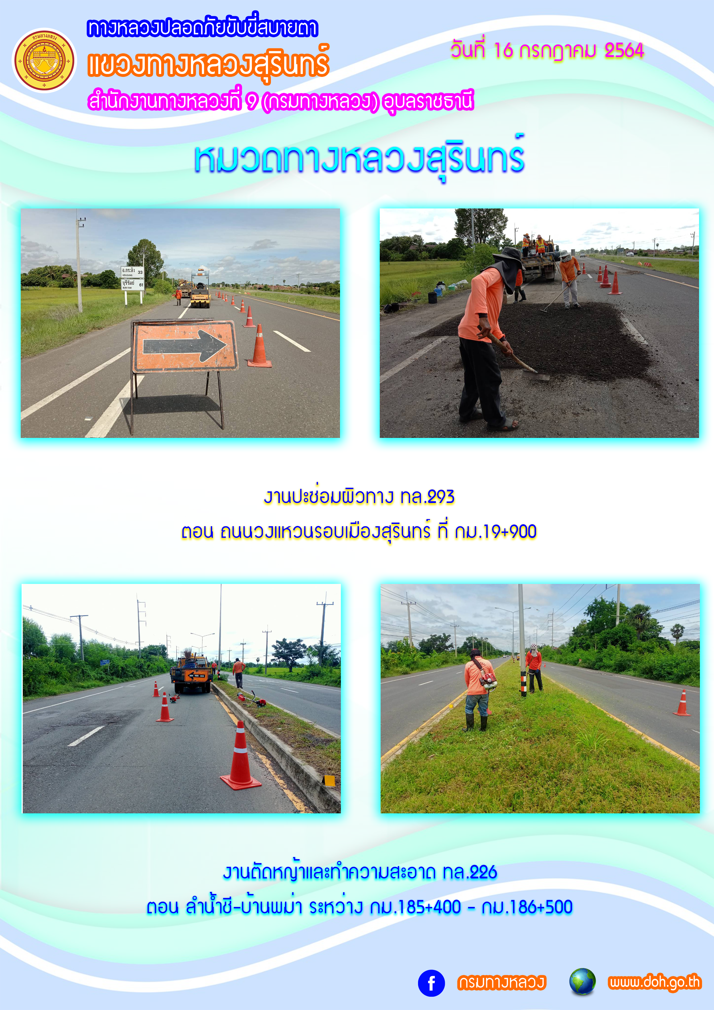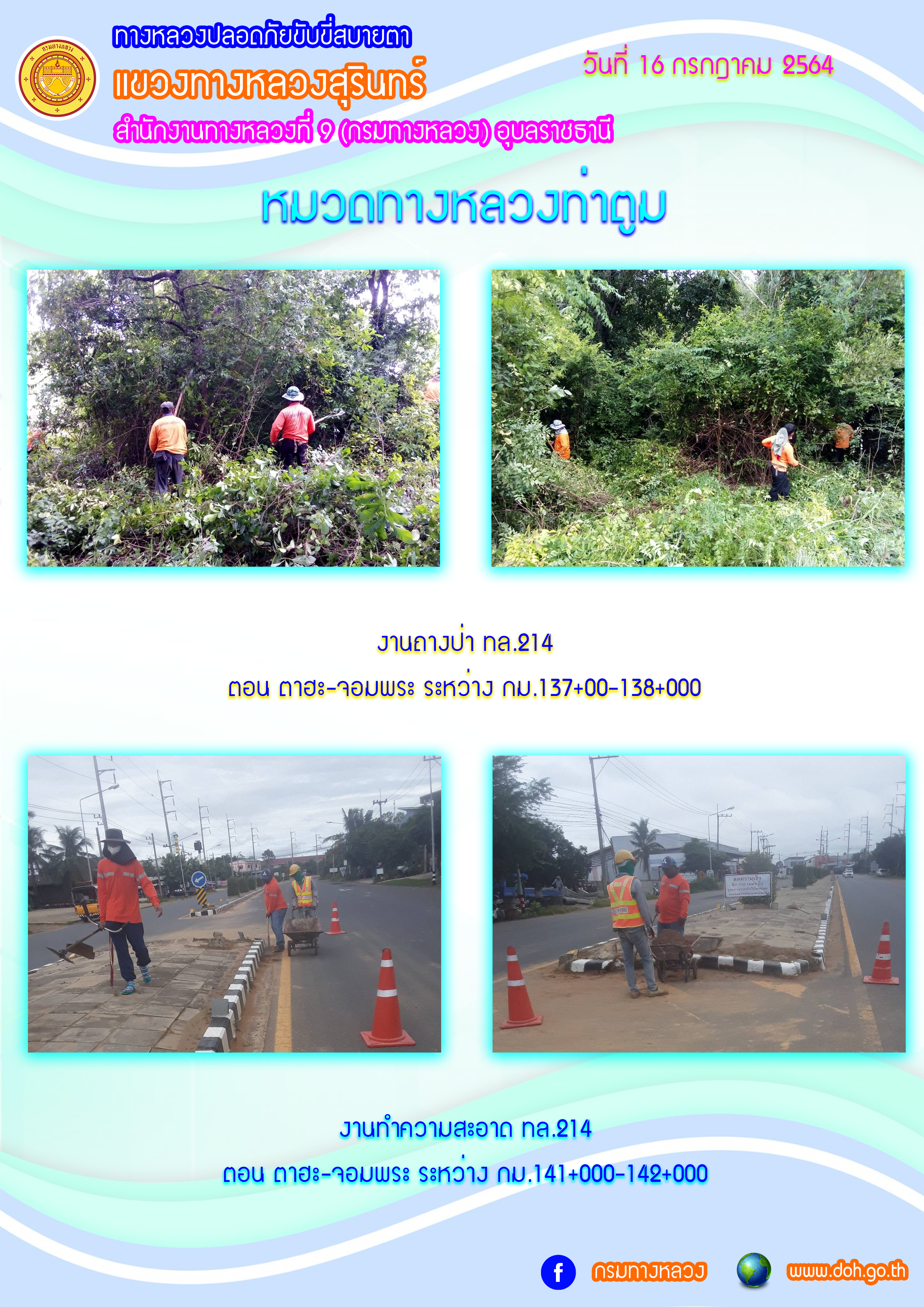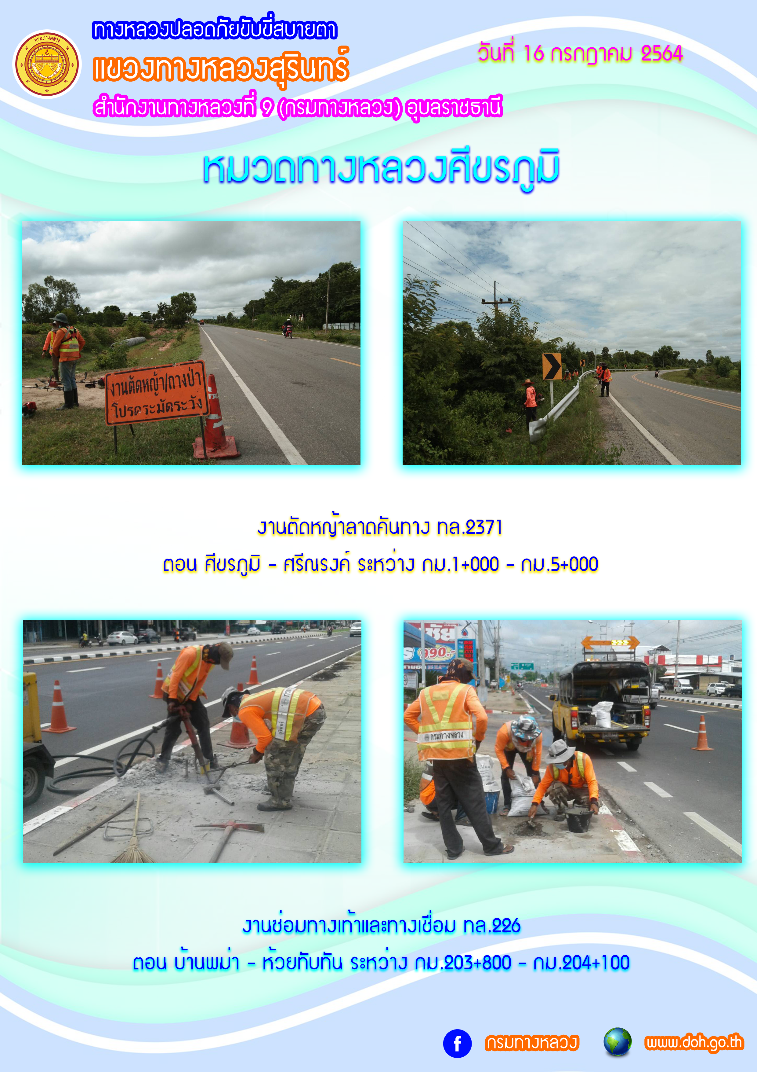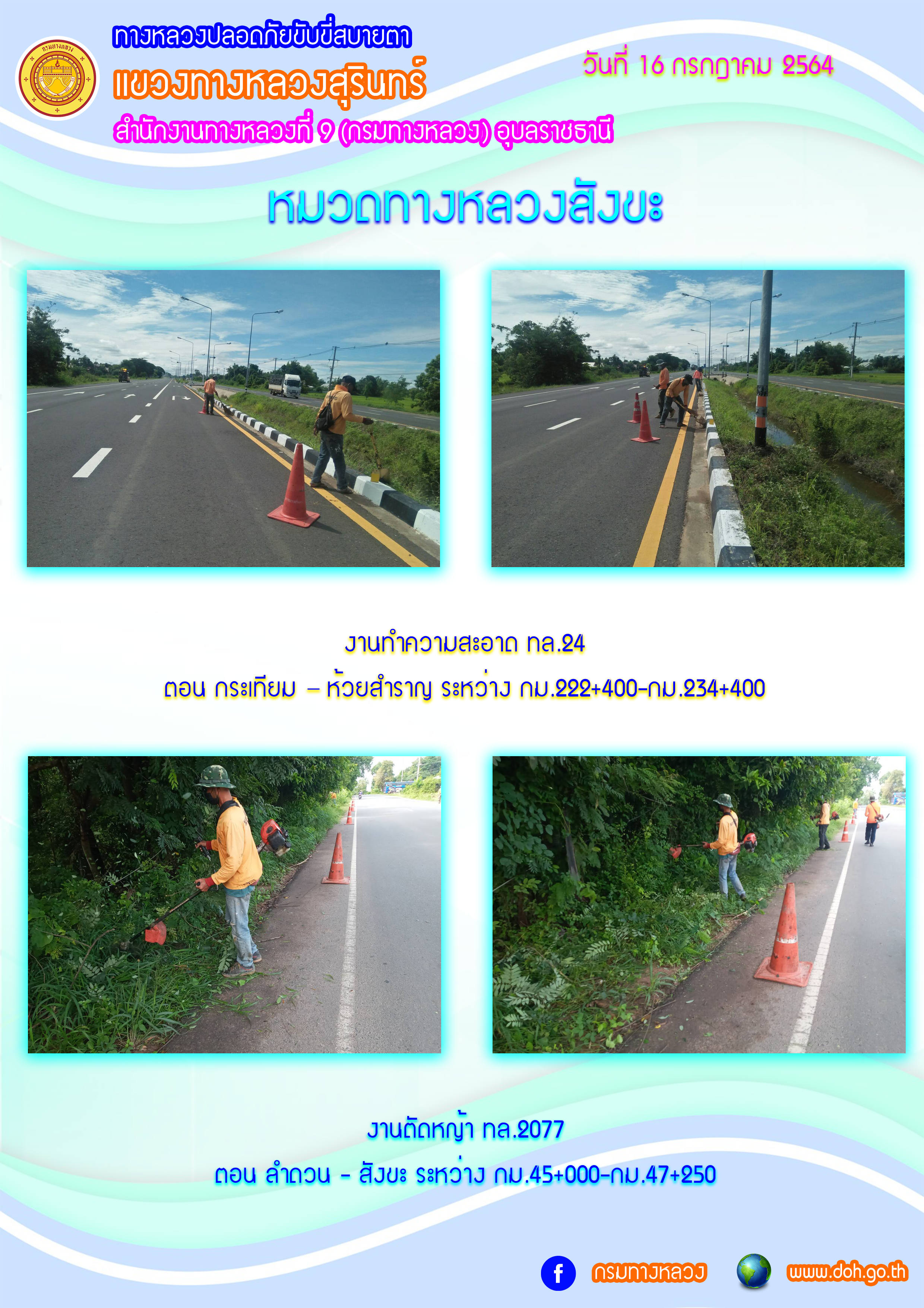 ข้อมูลภาพกิจกรรม : ทางหลวงปลอยภัย ขับขี่สบายตา 16 ก.ค. 64