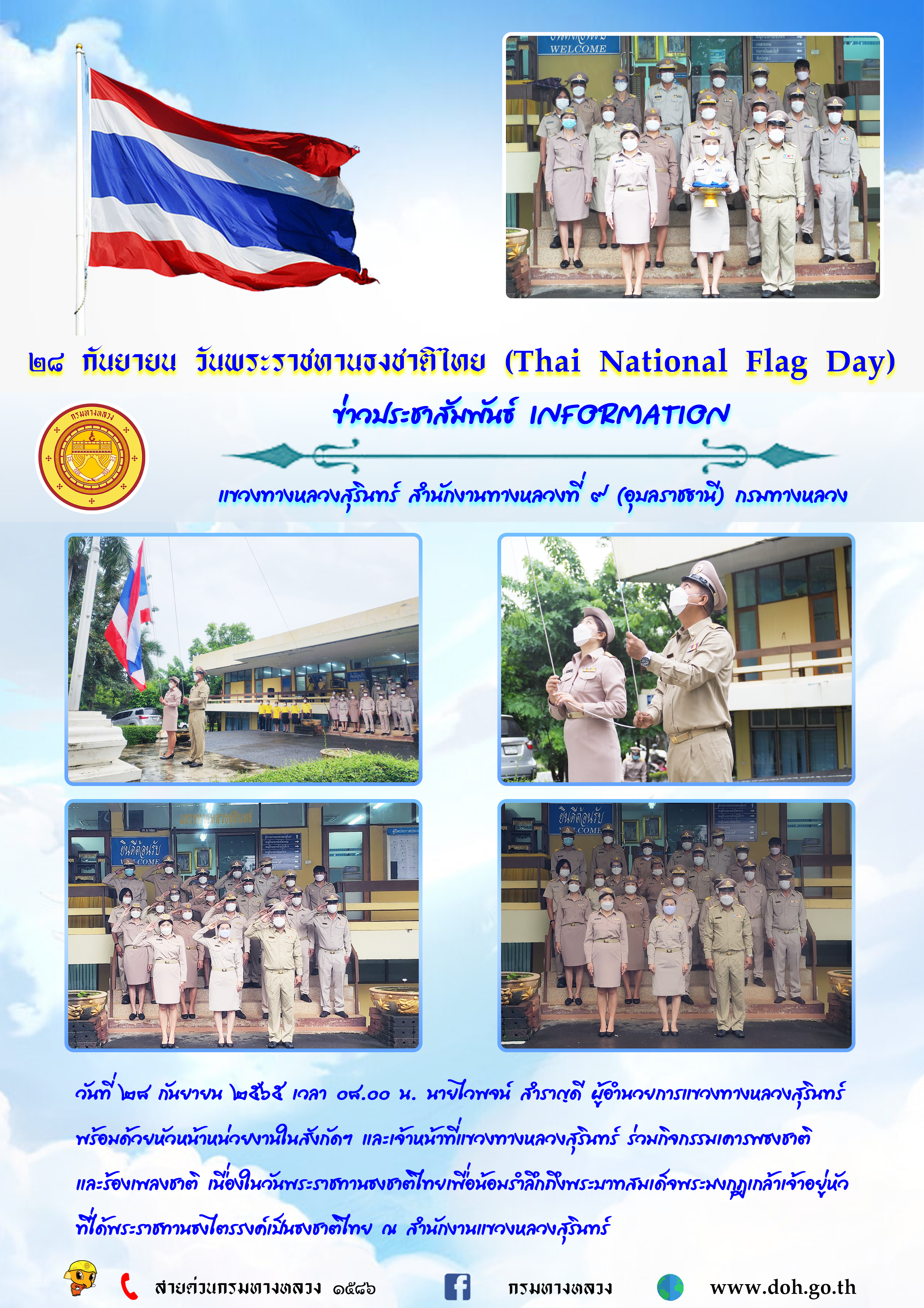 พร้อมด้วยหัวหน้าหน่วยงานในสังกัดฯ และเจ้าหน้าที่แขวงทางหลวงสุรินทร์ ร่วมกิจกรรมเคารพธงชาติ