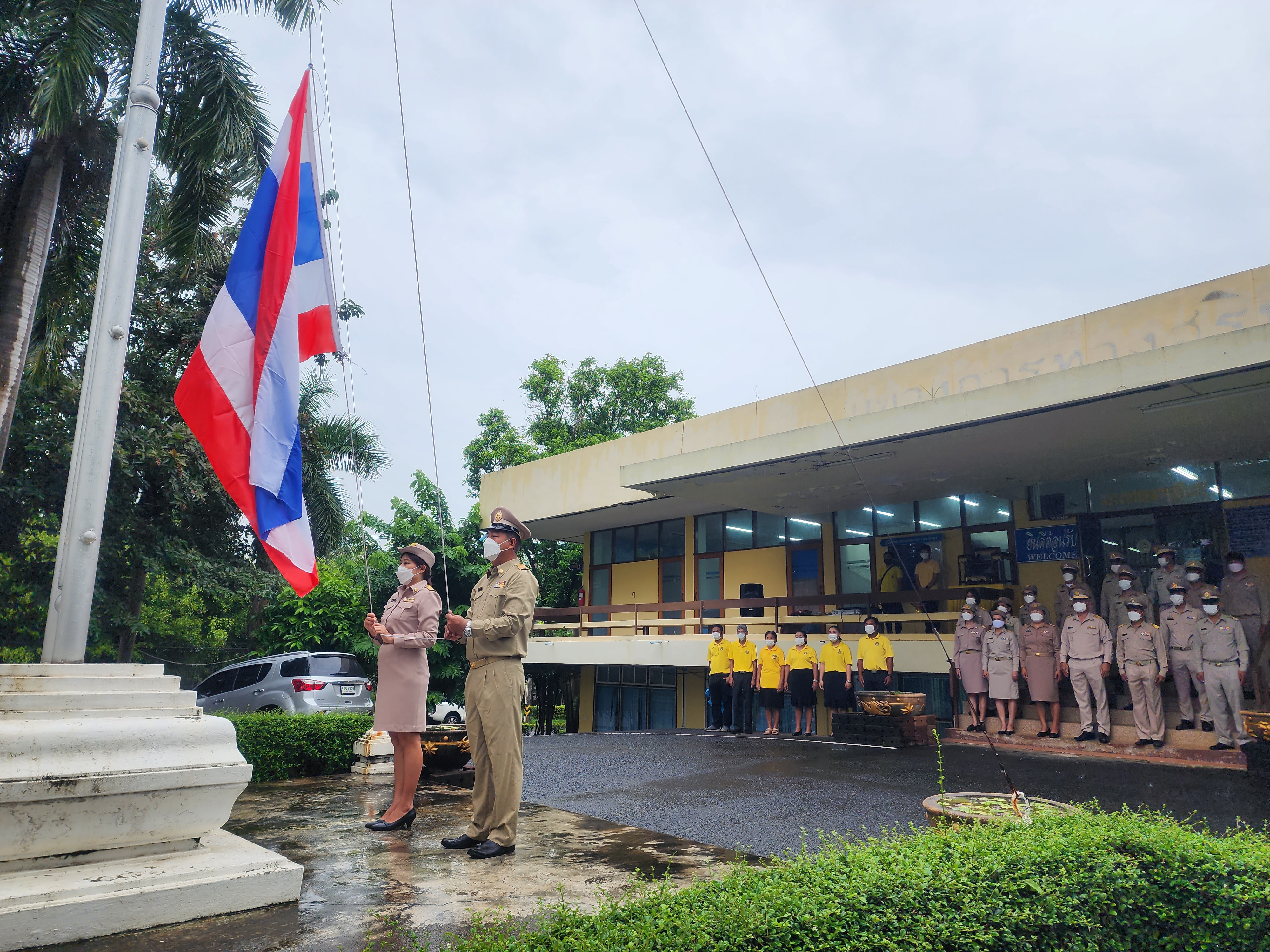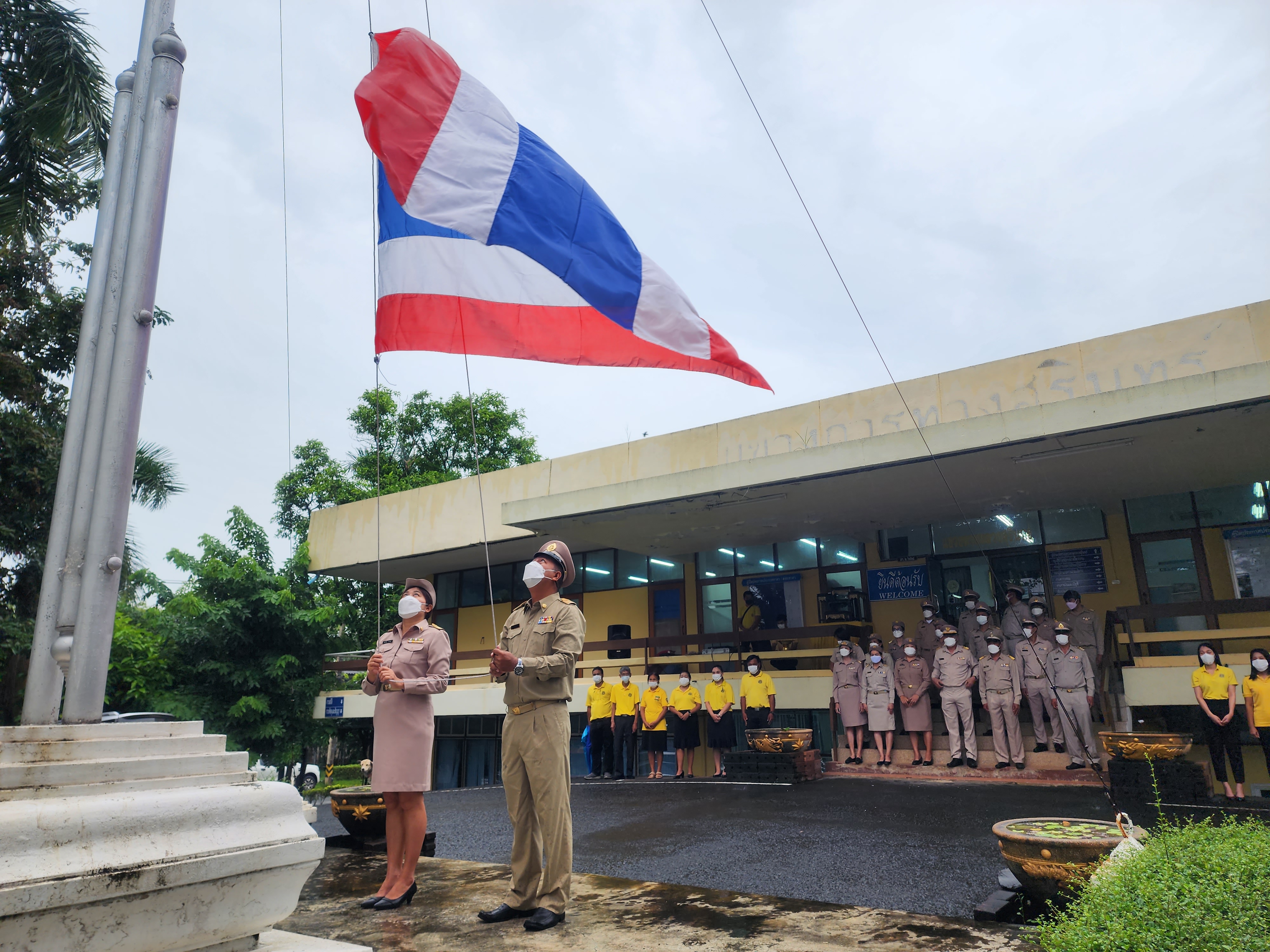 และร้องเพลงชาติ เนื่องในวันพระราชทานธงชาติไทยเพื่อน้อมรำลึกถึงพระบาทสมเด็จพระมงกุฎเกล้าเจ้าอยู่หัว