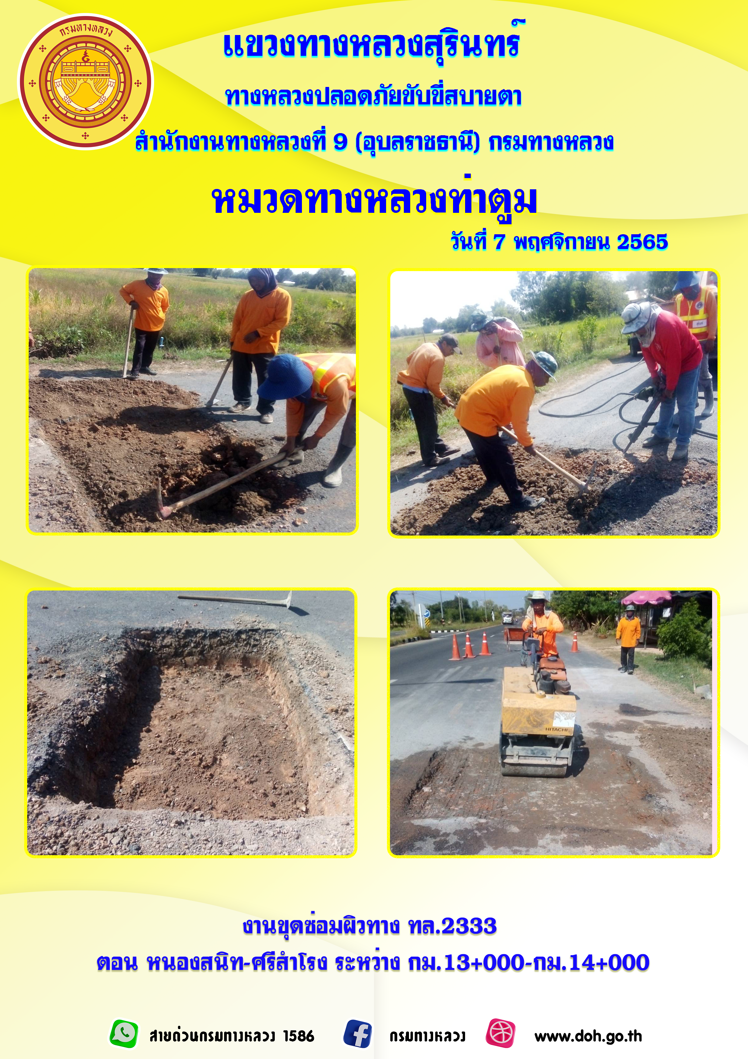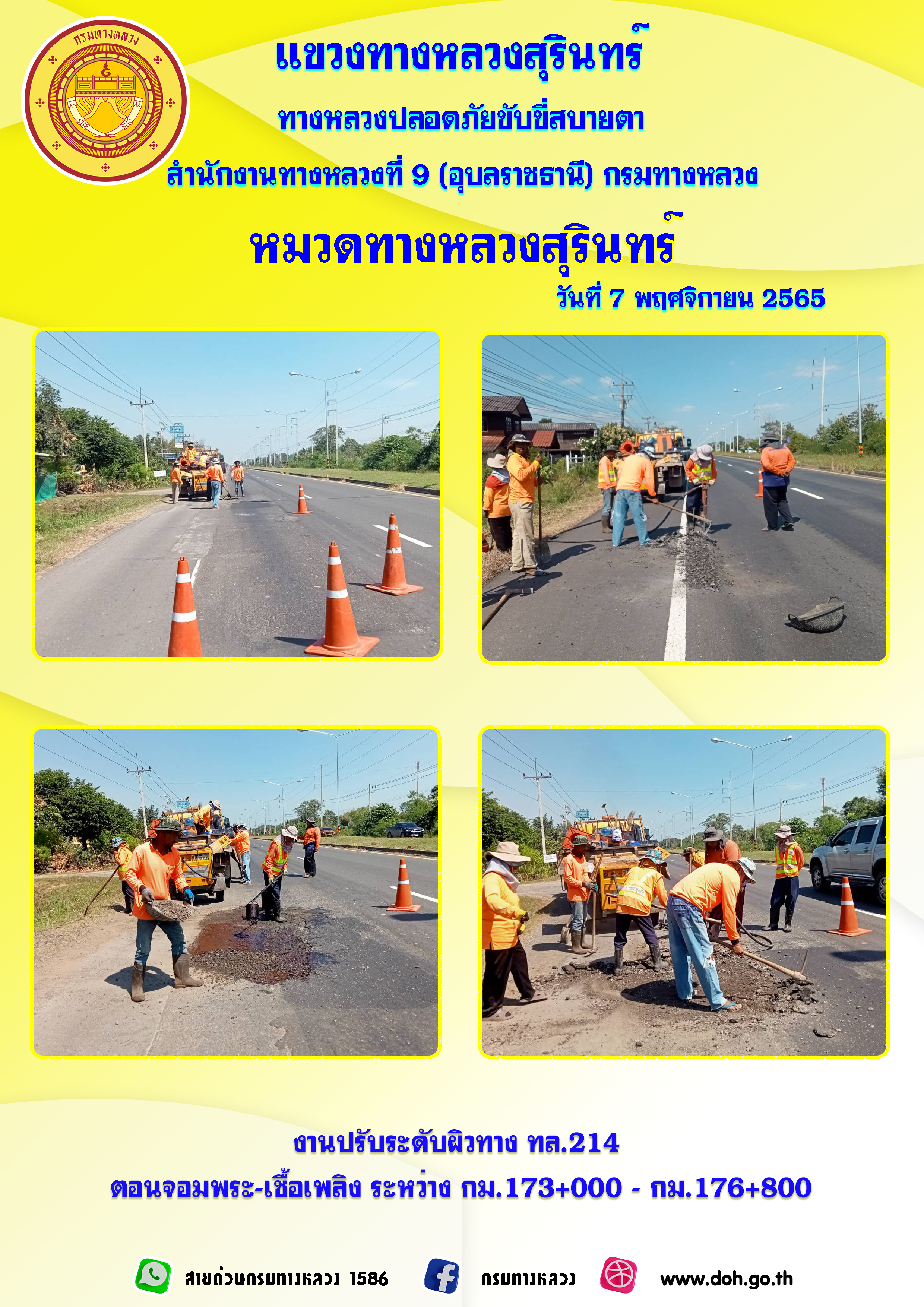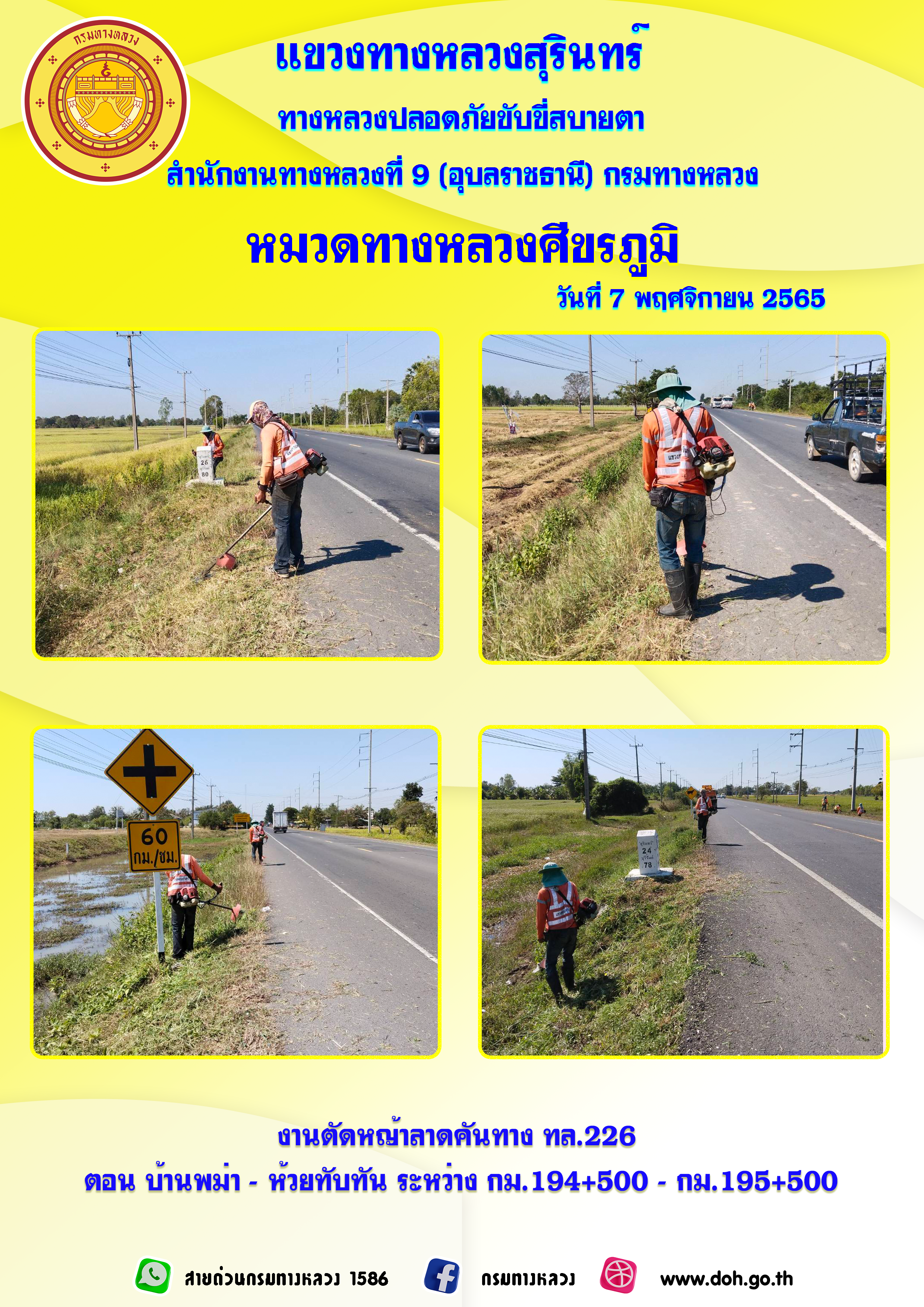 ทางหลวงปลอยภัย ขับขี่สบายตา 7 พฤศจิกายน 2565