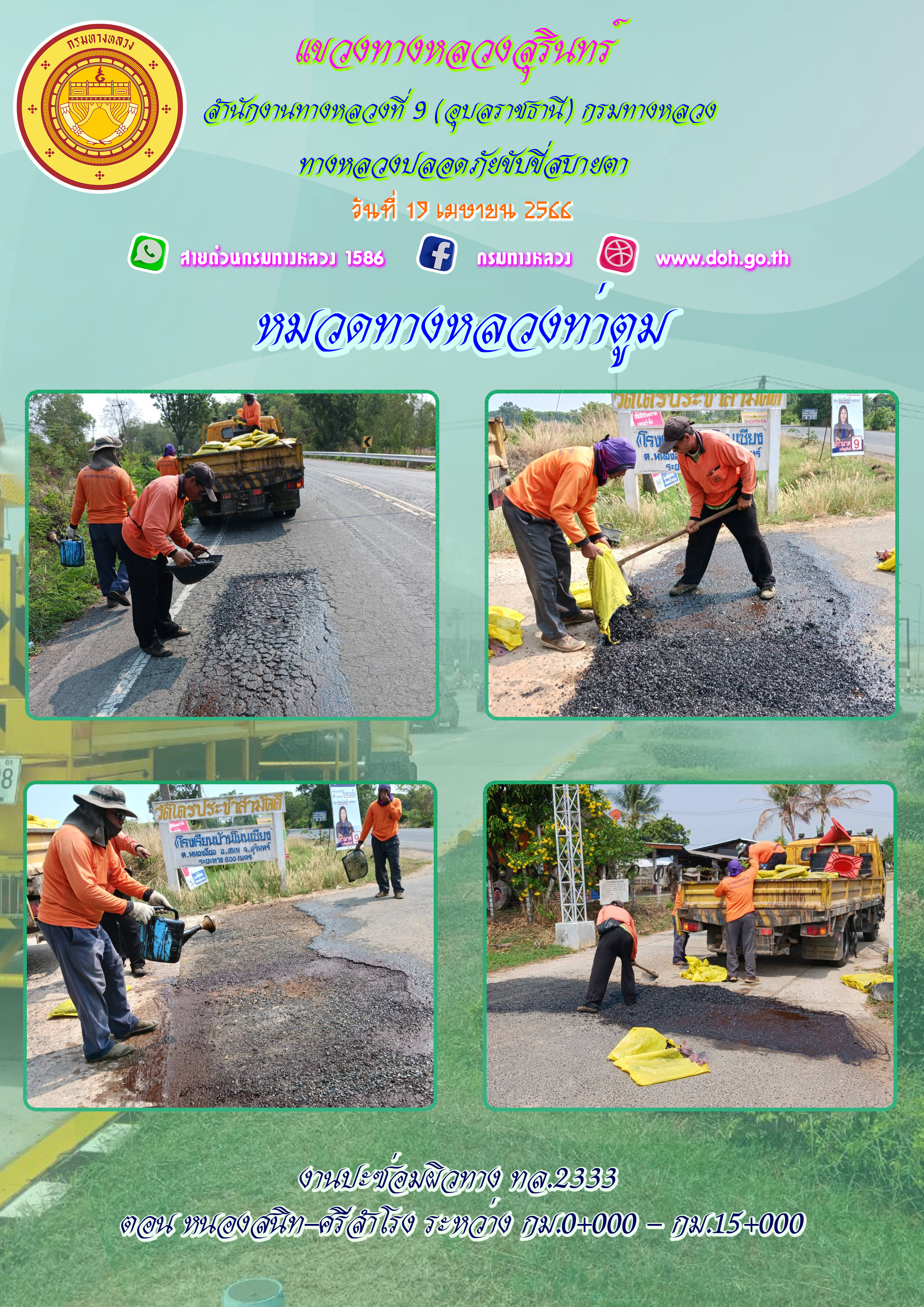 ทางหลวงปลอยภัย ขับขี่สบายตา 19 เมษายน 2566