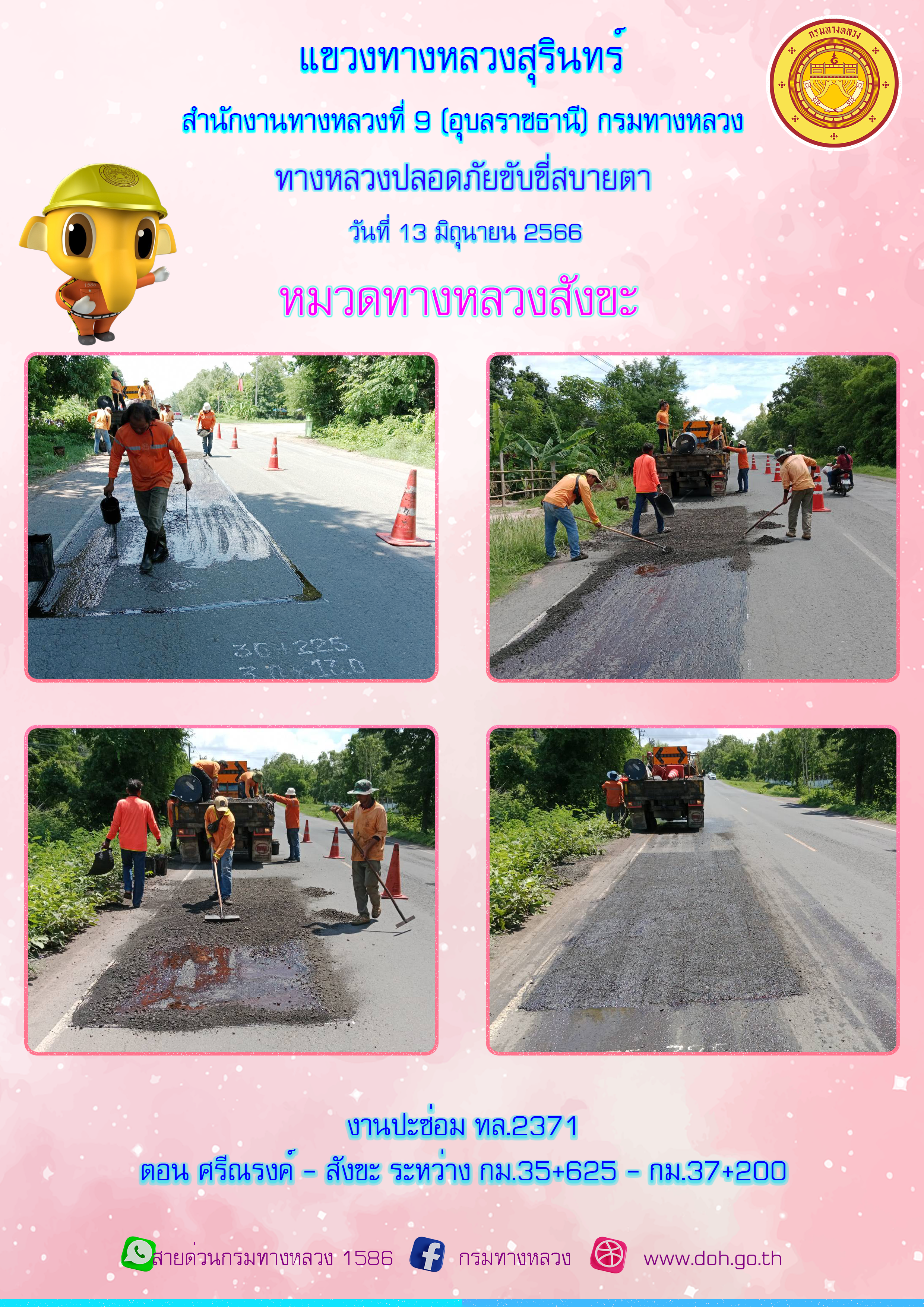 ข้อมูลภาพกิจกรรม : ทางหลวงปลอยภัย ขับขี่สบายตา 13 มิถุนายน 2566