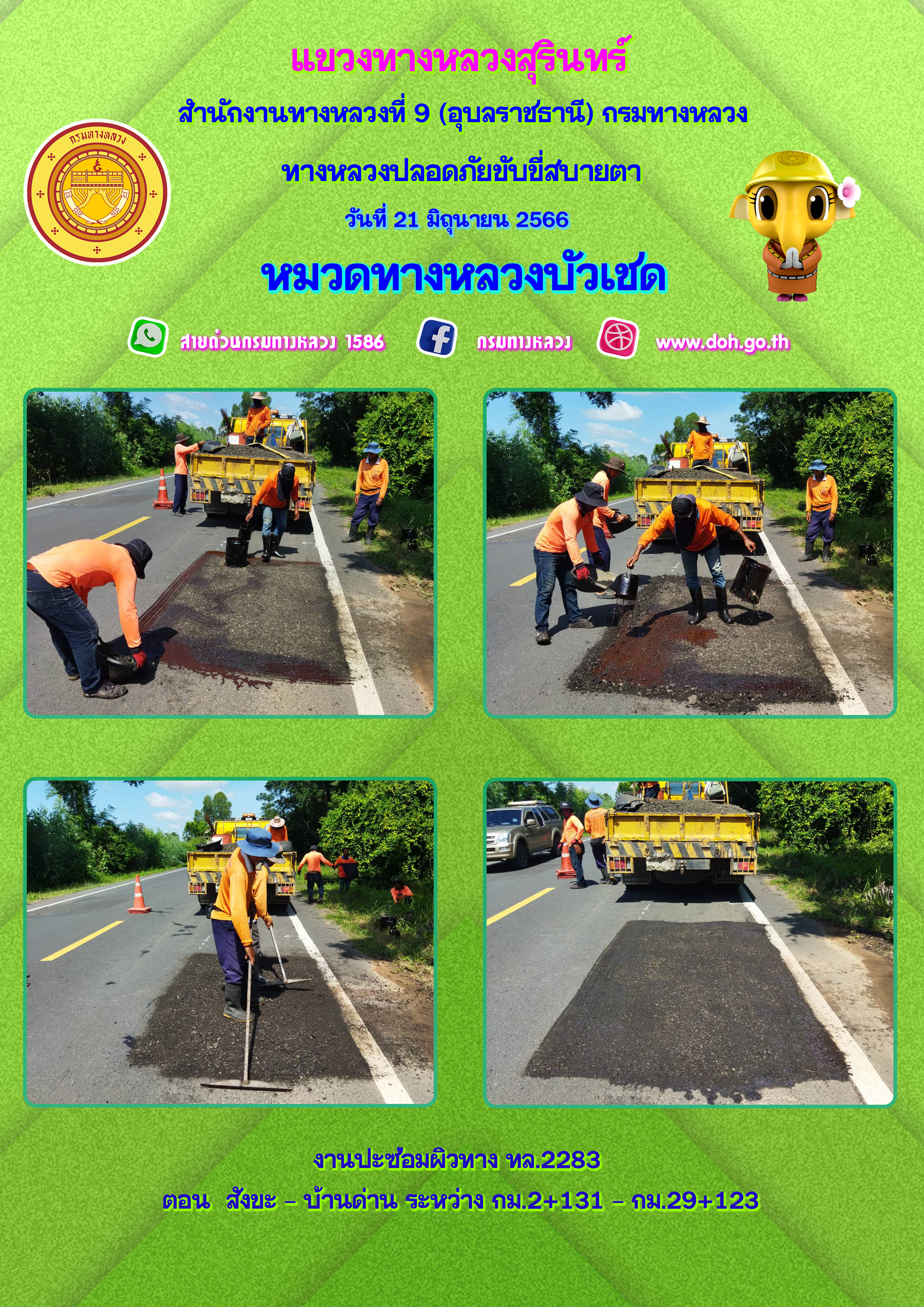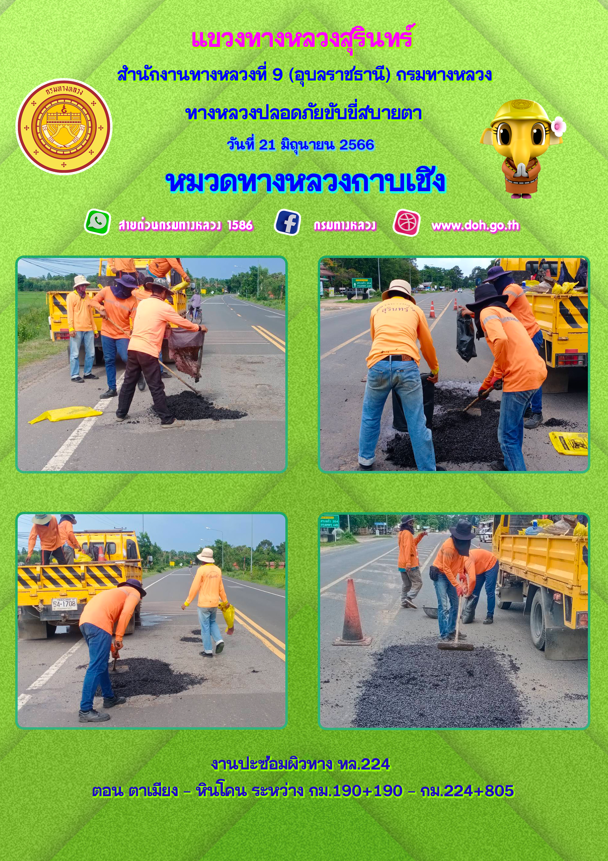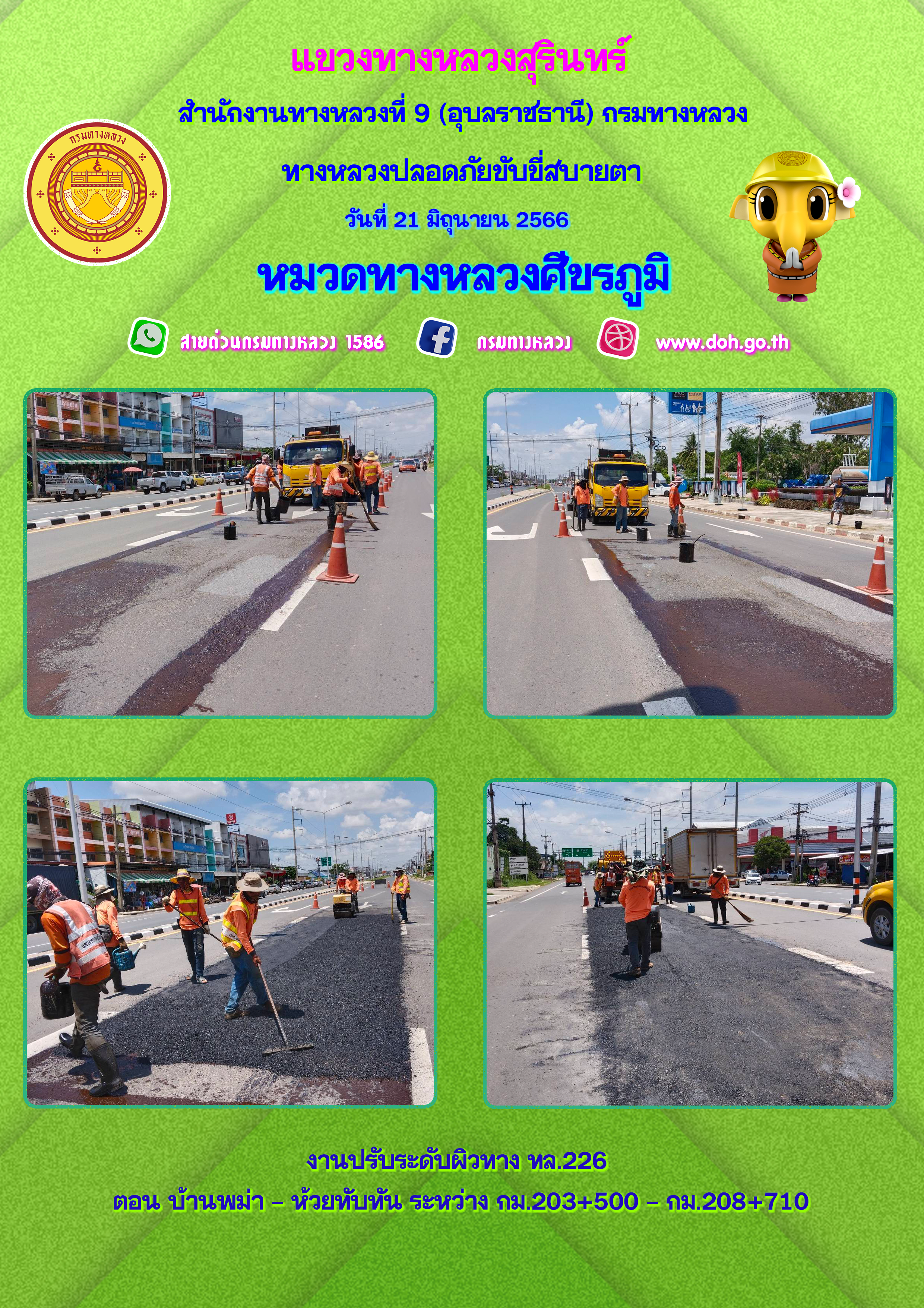 ข้อมูลภาพกิจกรรม : ทางหลวงปลอยภัย ขับขี่สบายตา 21 มิถุนายน 2566