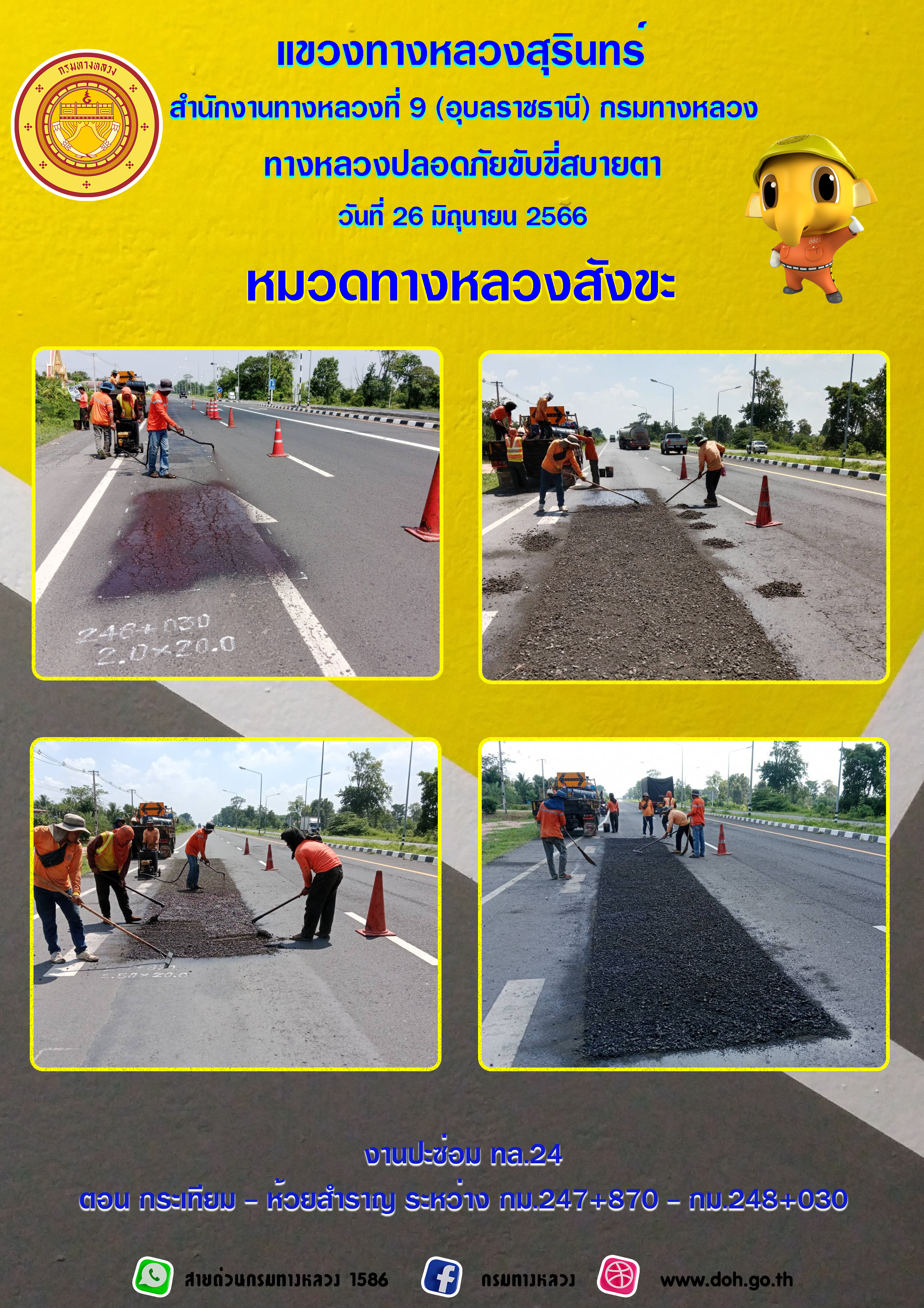 ข้อมูลภาพกิจกรรม : ทางหลวงปลอยภัย ขับขี่สบายตา 26 มิถุนายน 2566
