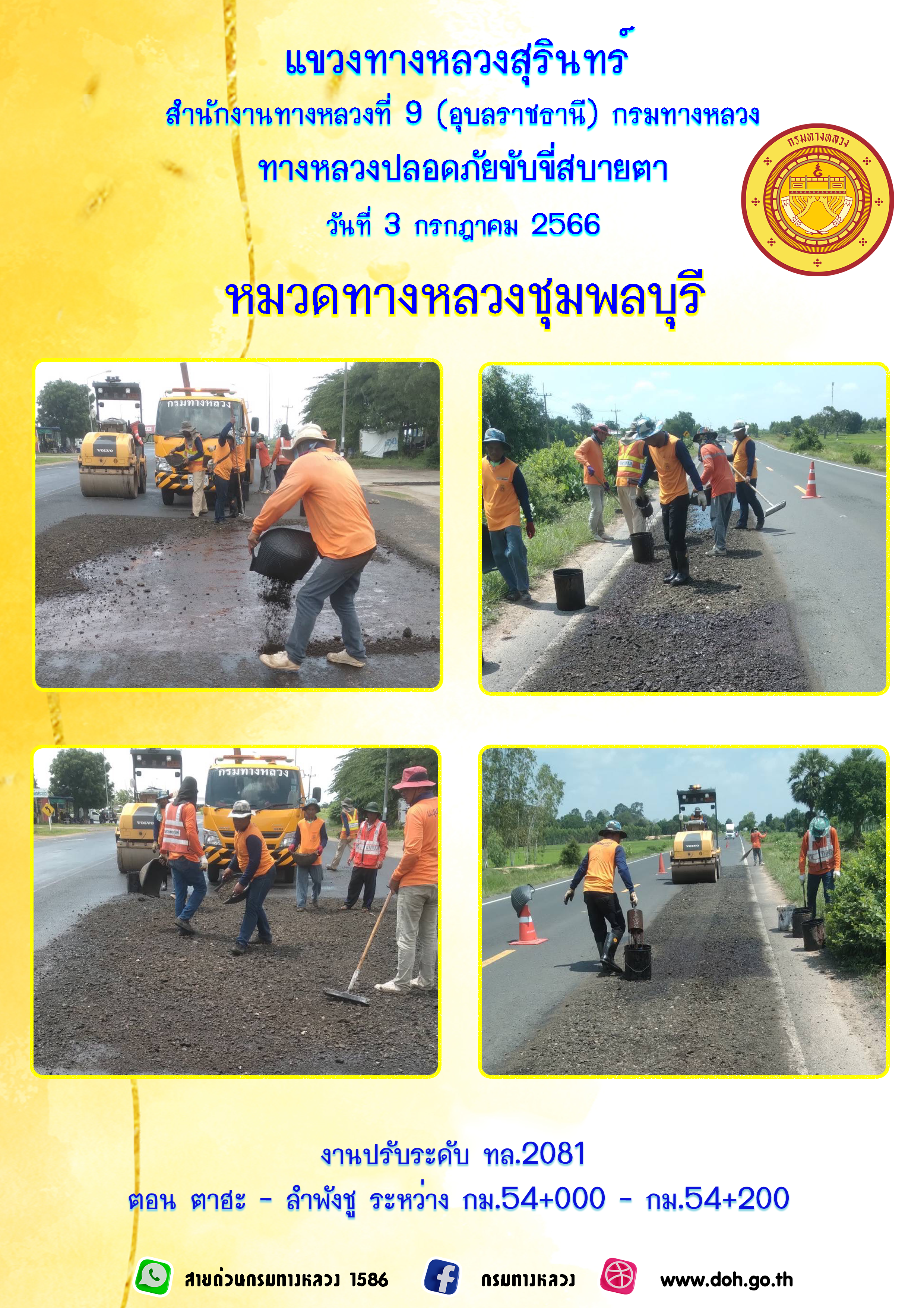 ข้อมูลภาพกิจกรรม : ทางหลวงปลอยภัย ขับขี่สบายตา 3 กรกฎาคม 2566