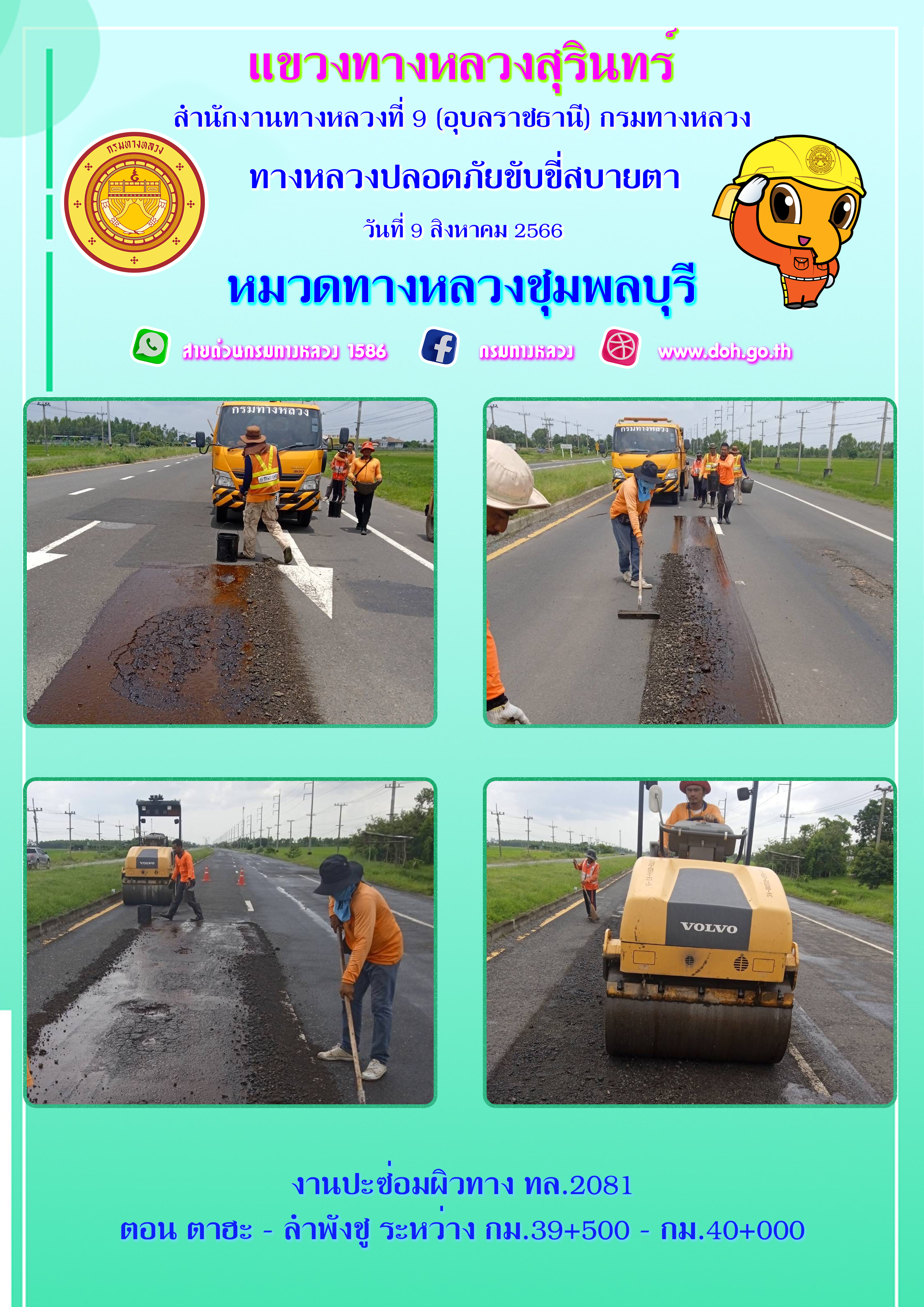 ข้อมูลภาพกิจกรรม : ทางหลวงปลอยภัย ขับขี่สบายตา 9 สิงหาคม 2566