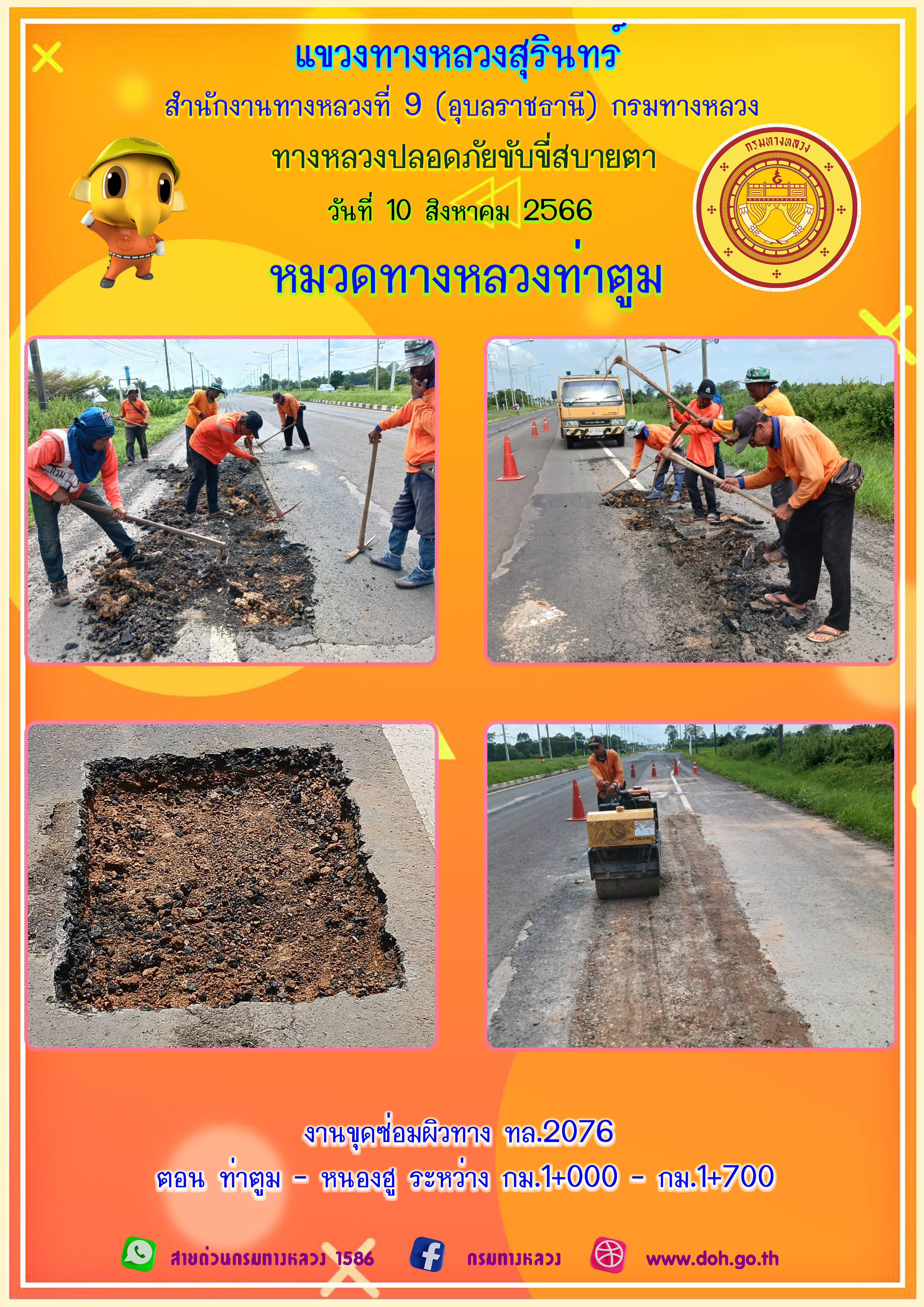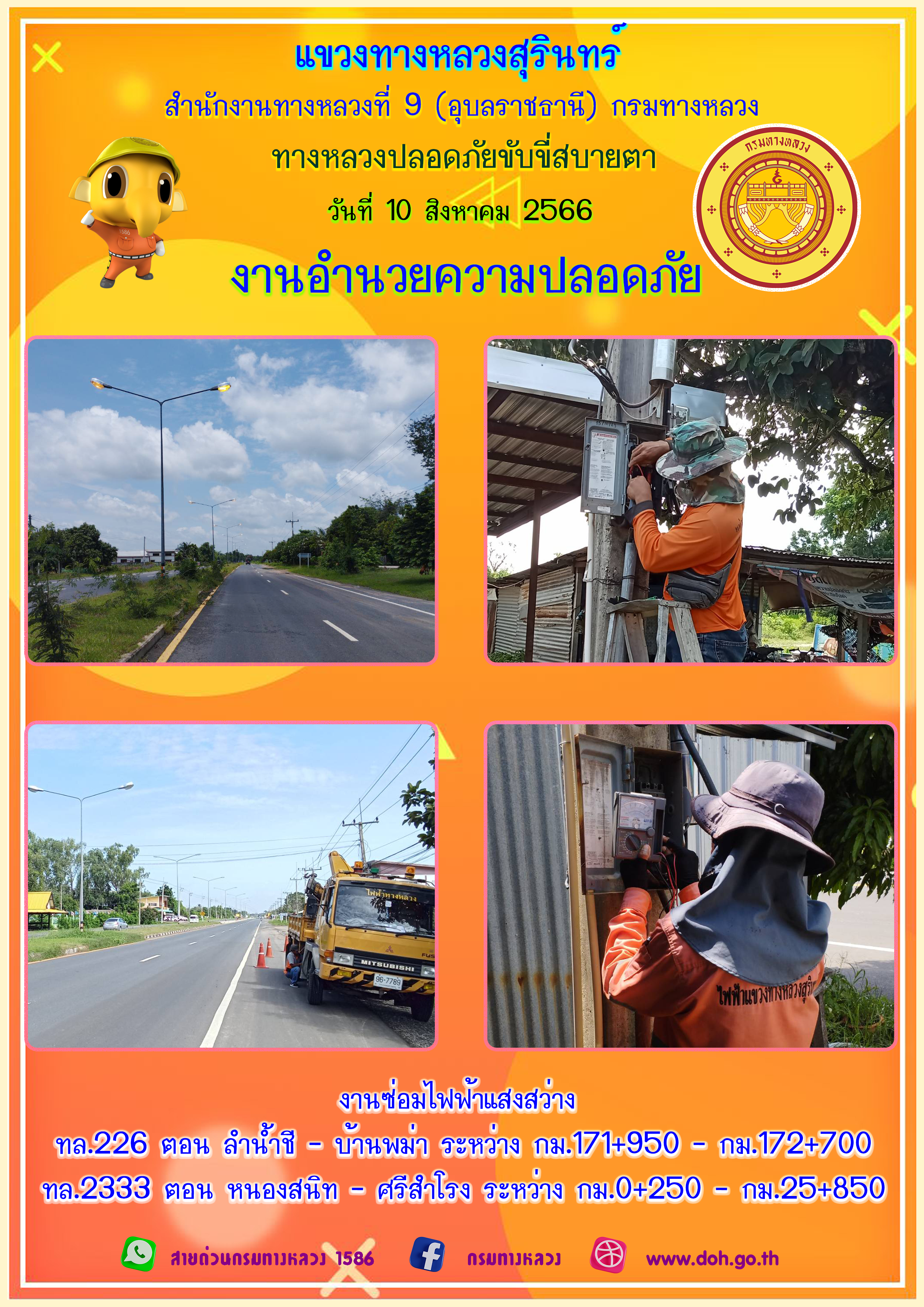 ข้อมูลภาพกิจกรรม : ทางหลวงปลอยภัย ขับขี่สบายตา 10 สิงหาคม 2566