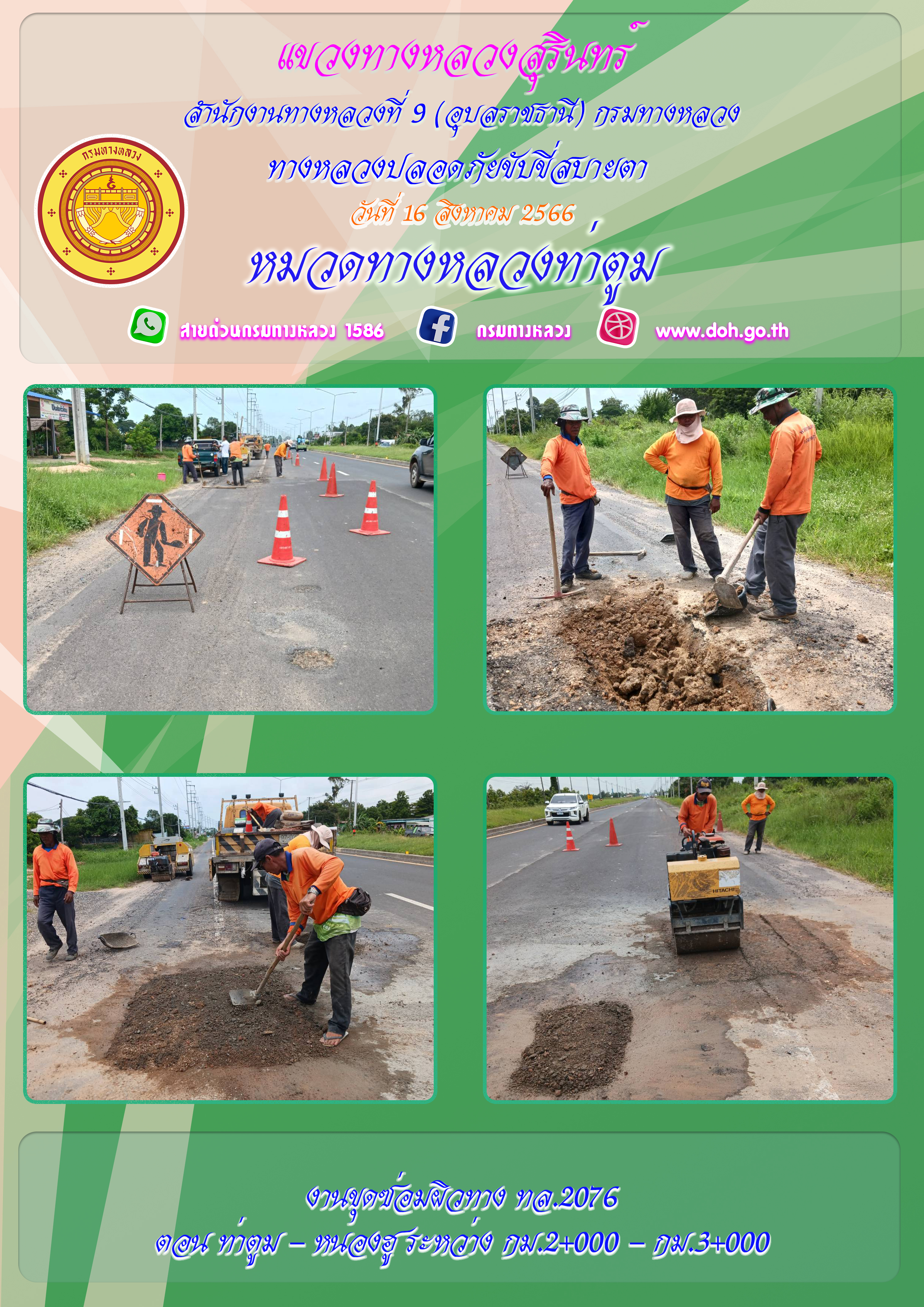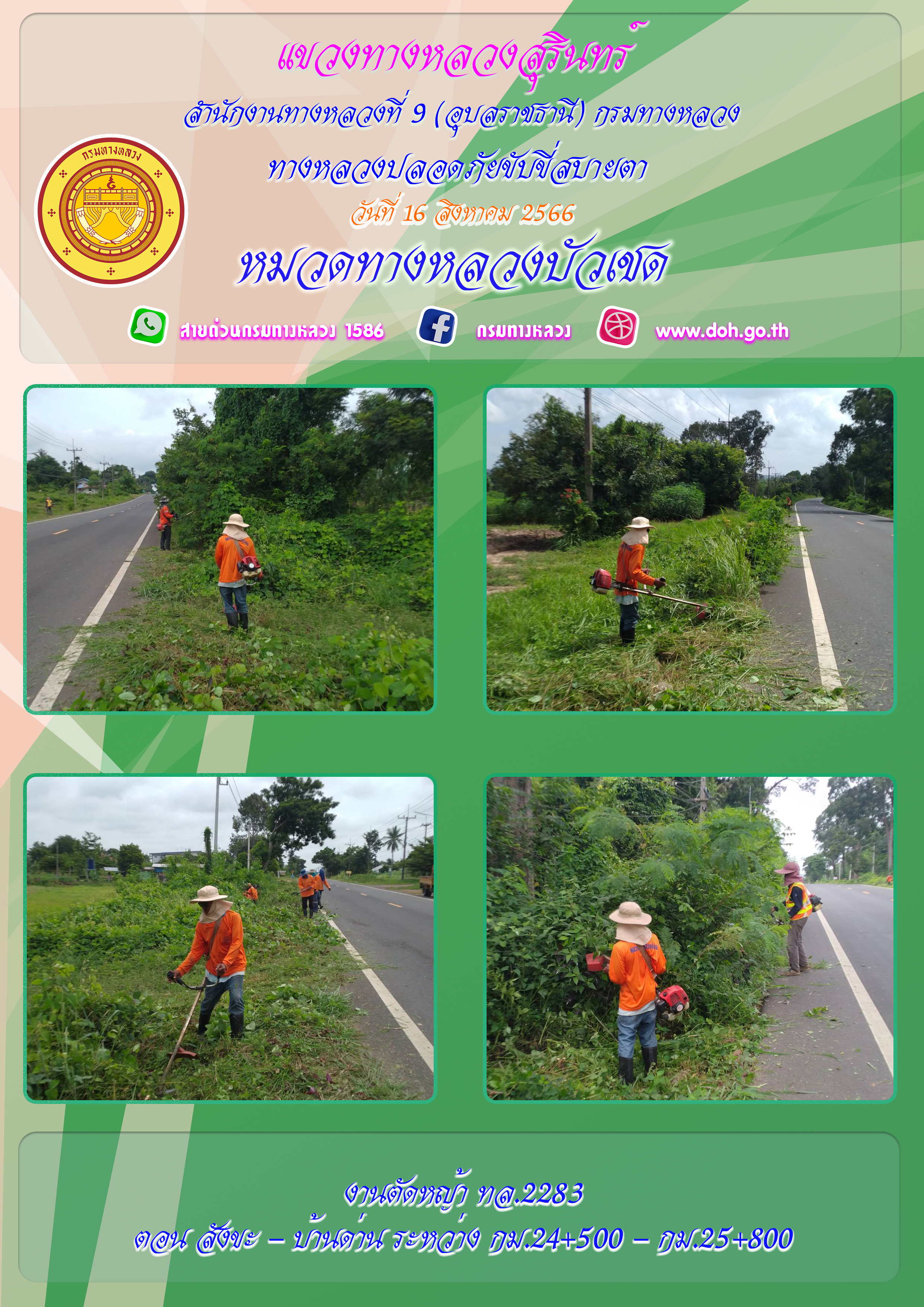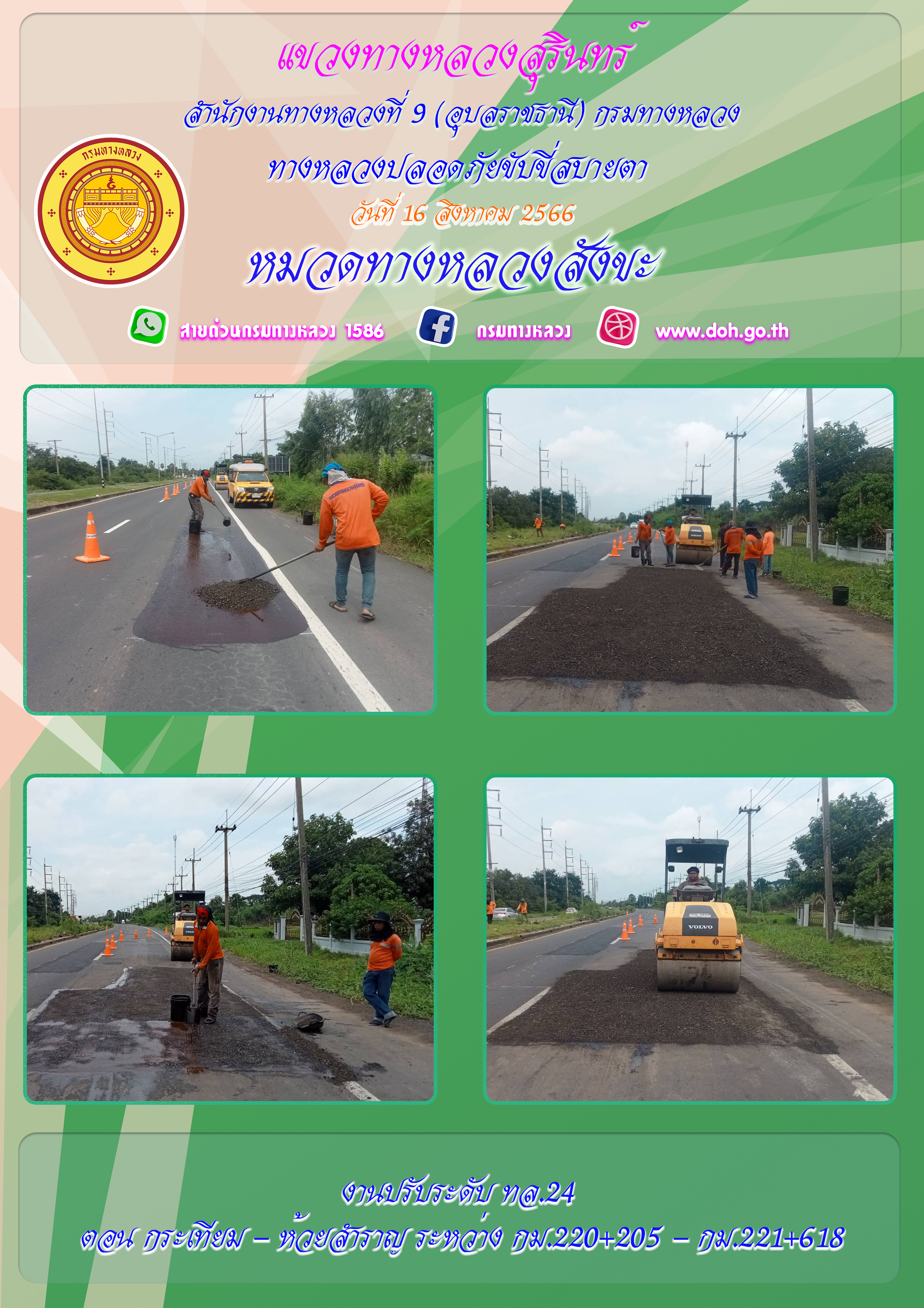 ข้อมูลภาพกิจกรรม : ทางหลวงปลอยภัย ขับขี่สบายตา 16 สิงหาคม 2566