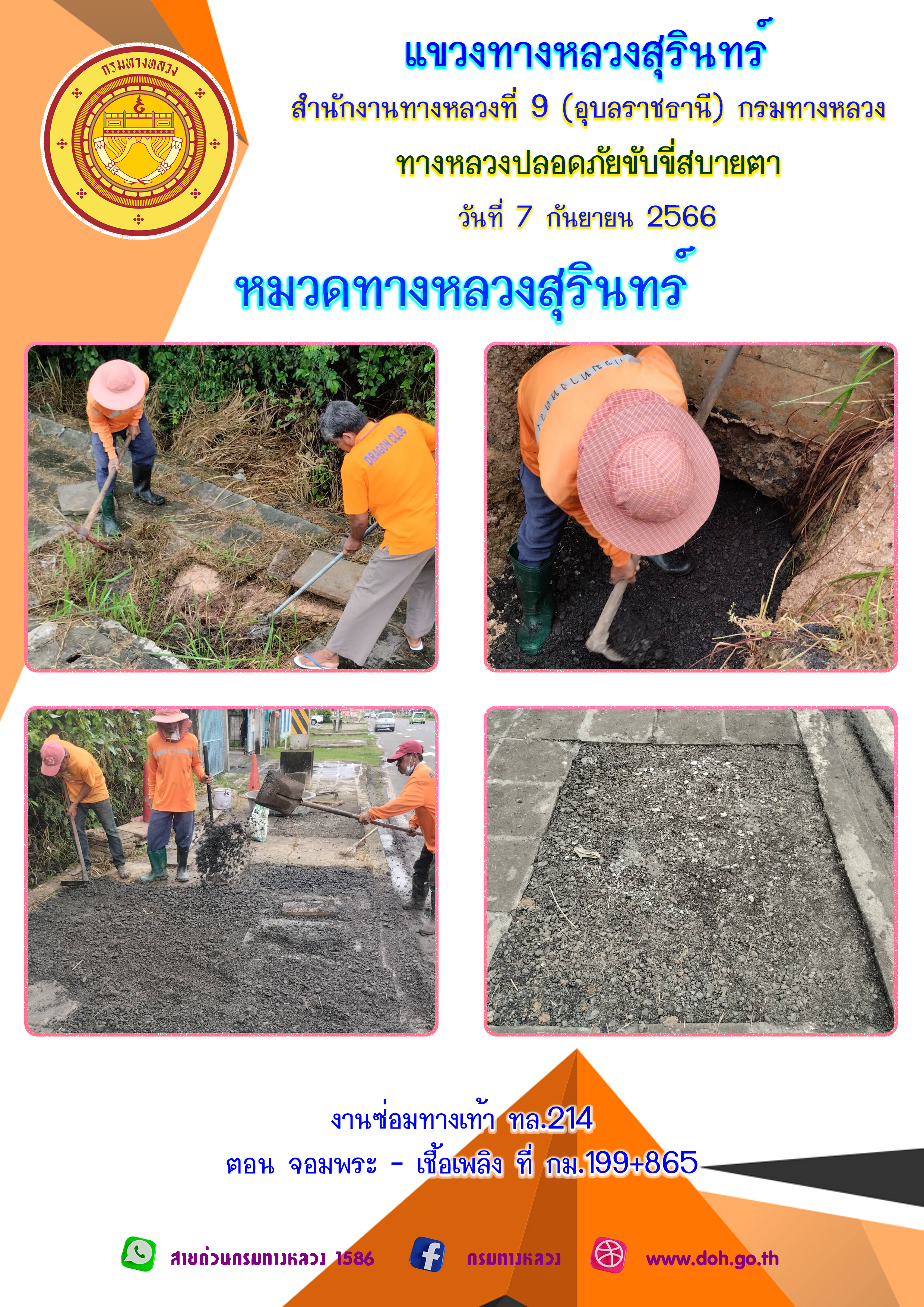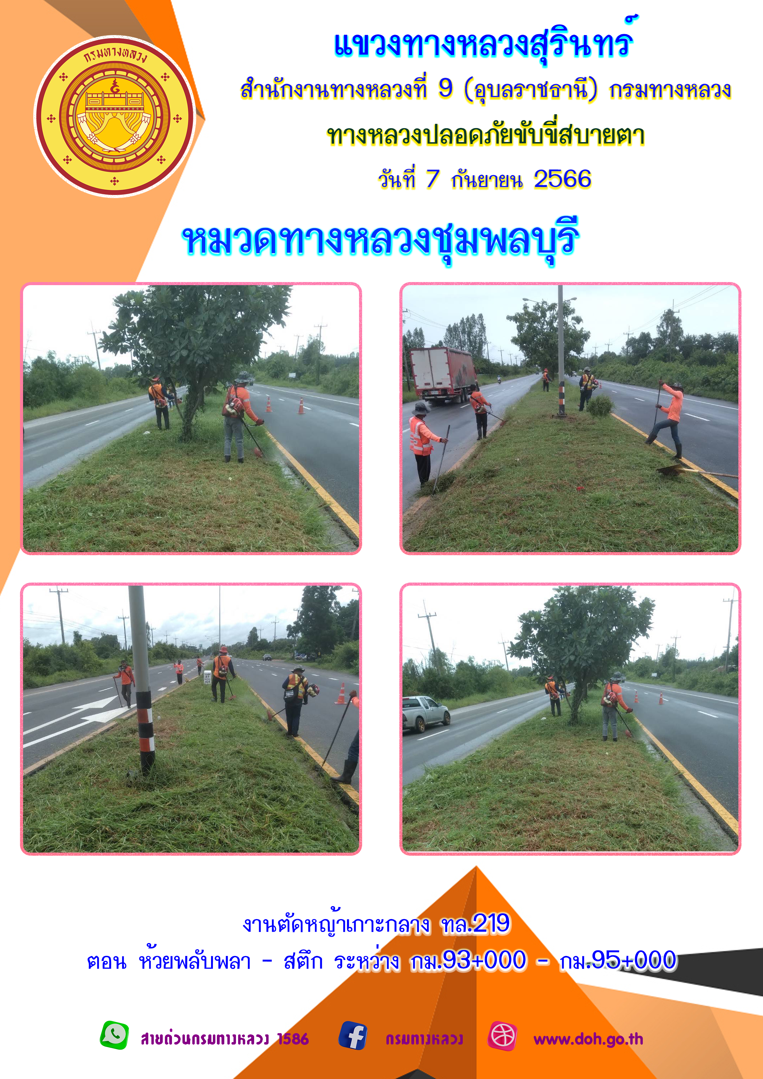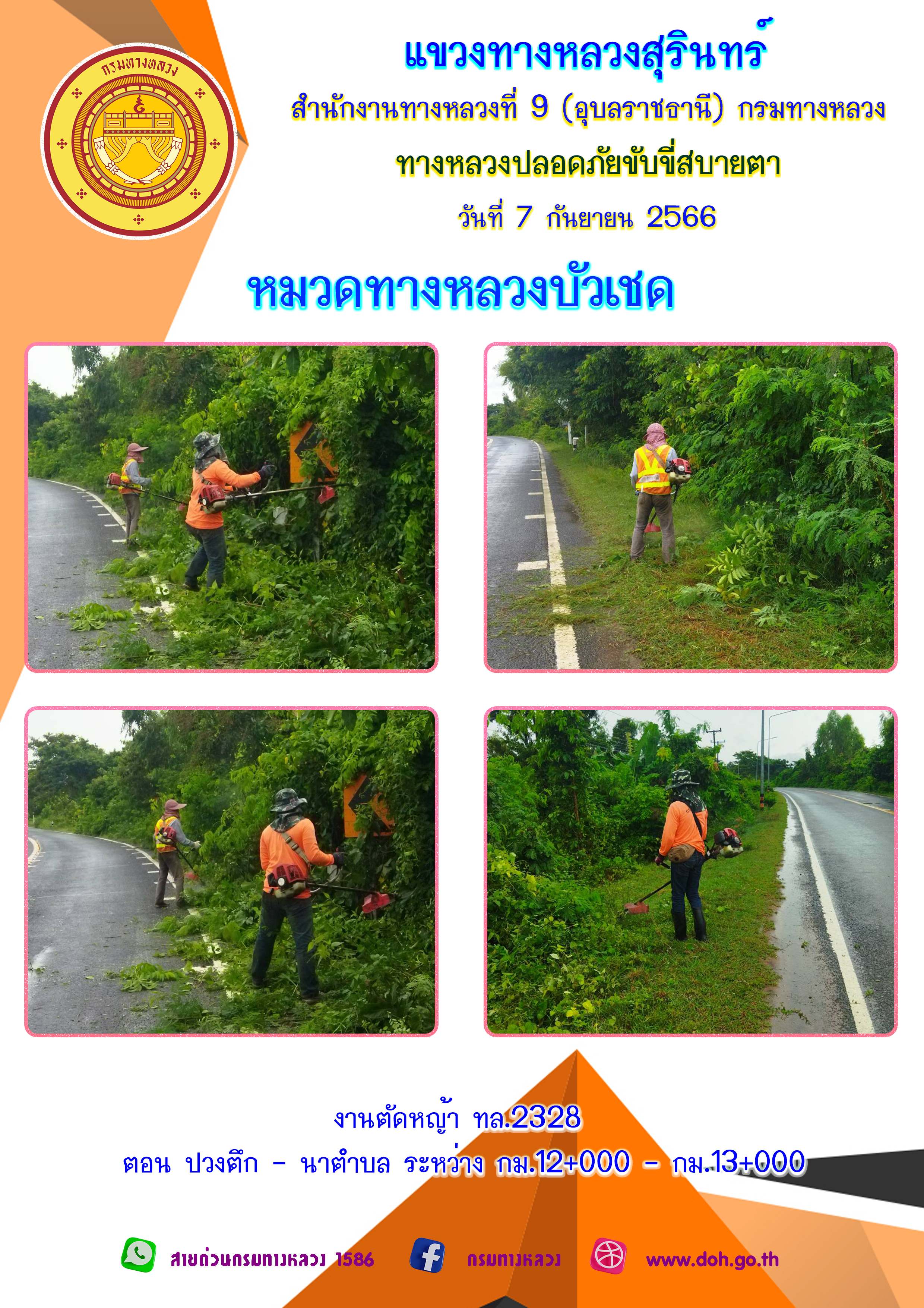 ข้อมูลภาพกิจกรรม : ทางหลวงปลอยภัย ขับขี่สบายตา 7 กันยายน 2566