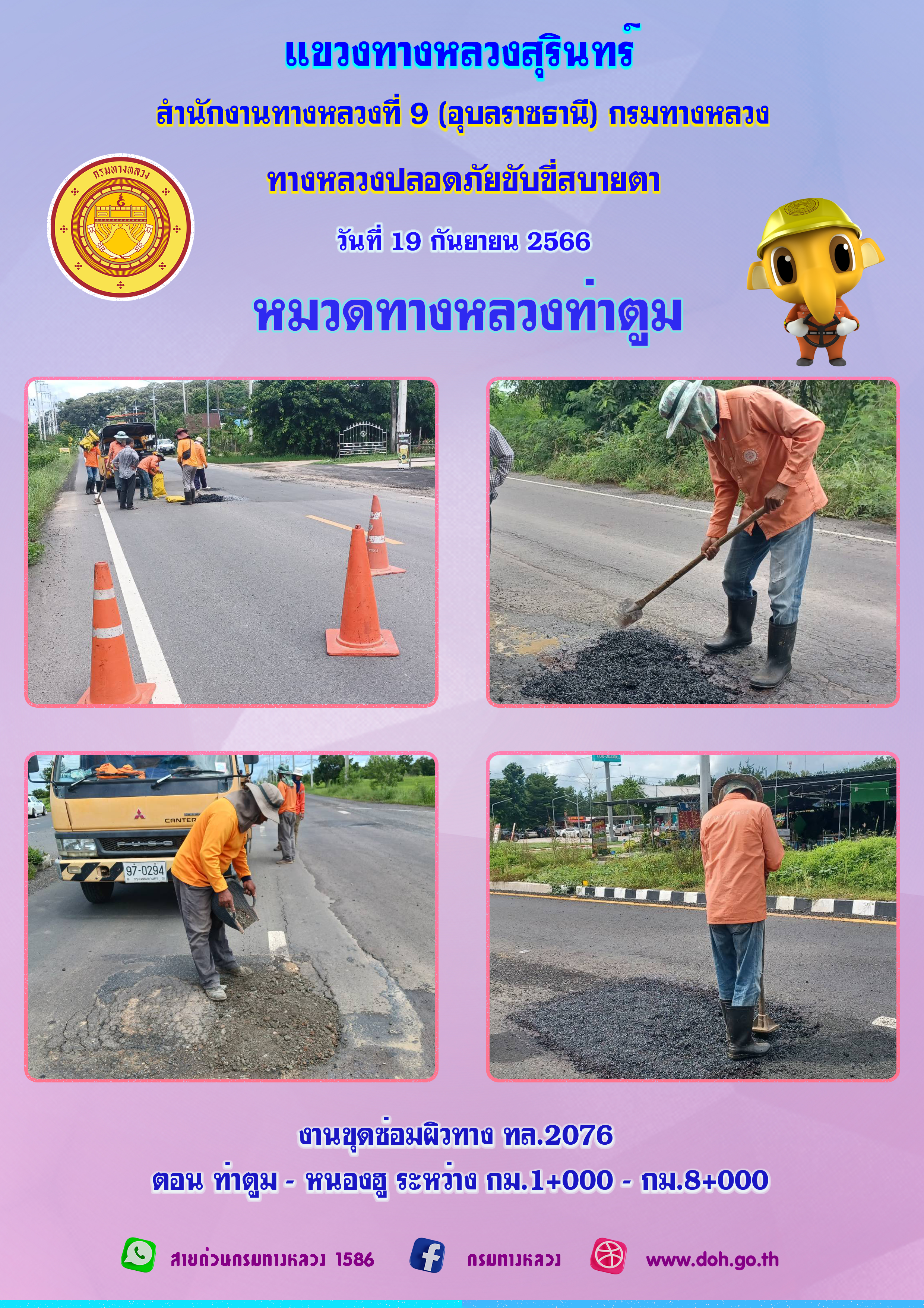 ข้อมูลภาพกิจกรรม : ทางหลวงปลอยภัย ขับขี่สบายตา 19 กันยายน 2566