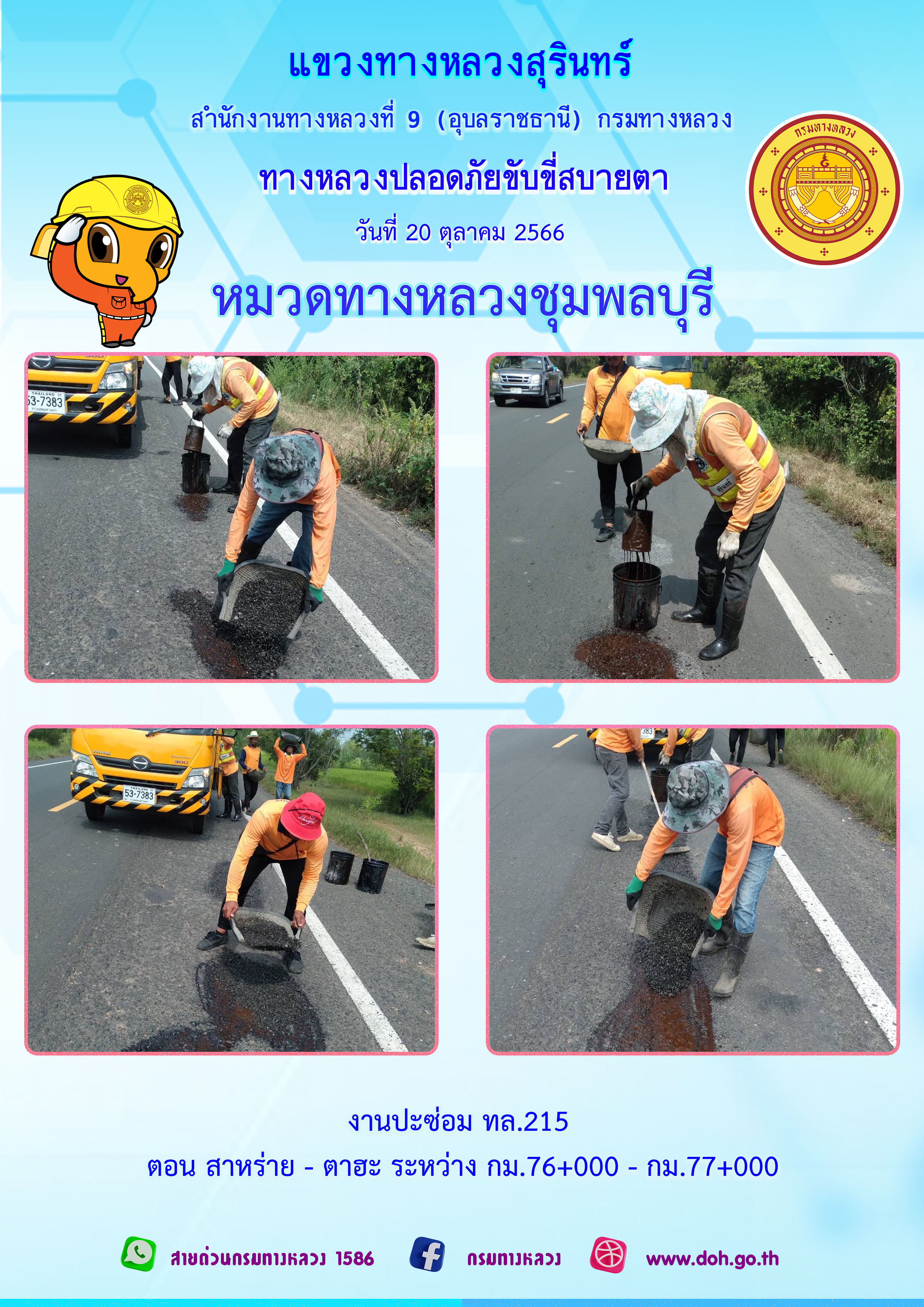 ข้อมูลภาพกิจกรรม : ทางหลวงปลอยภัย ขับขี่สบายตา 20 ตุลาคม 2566