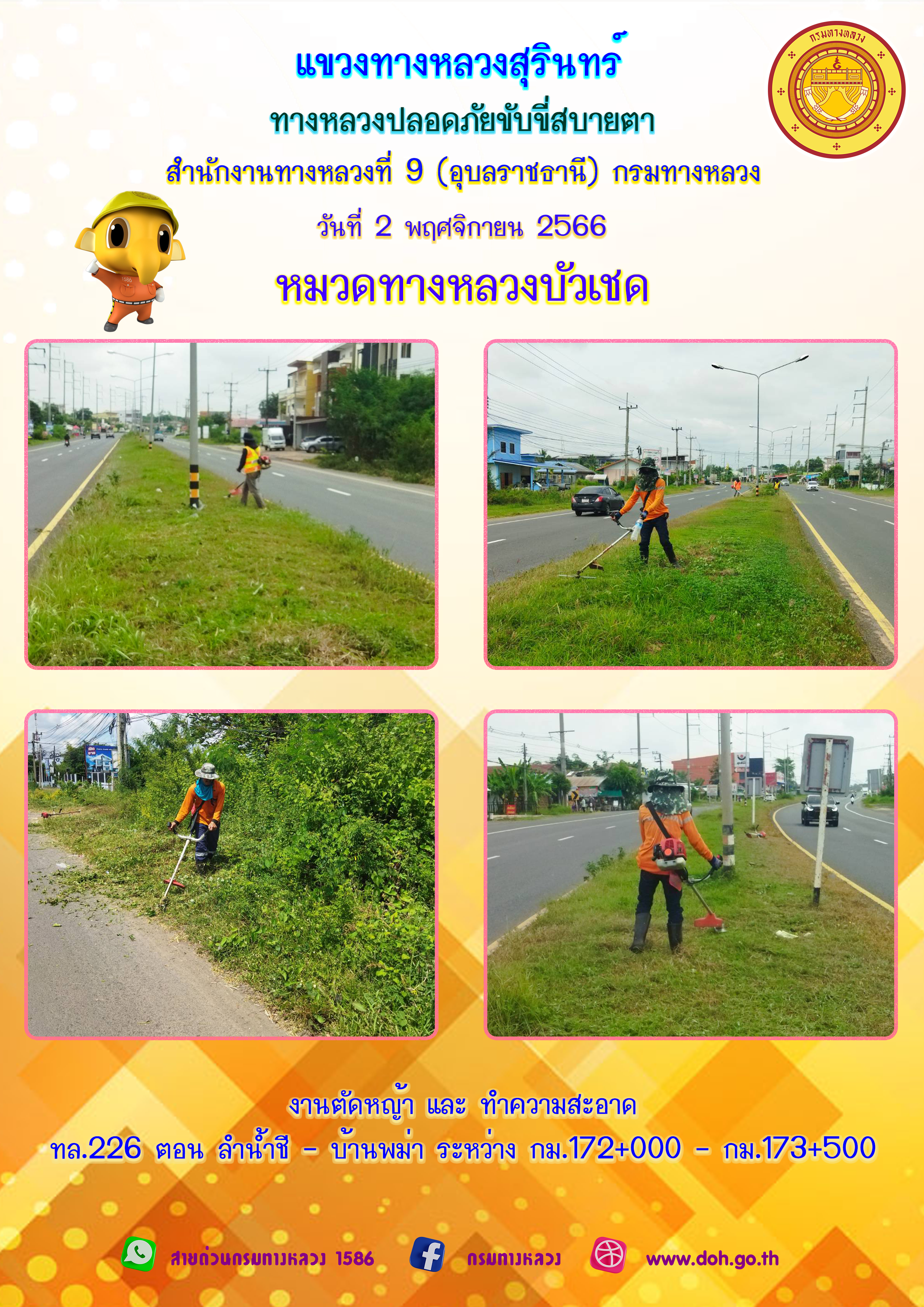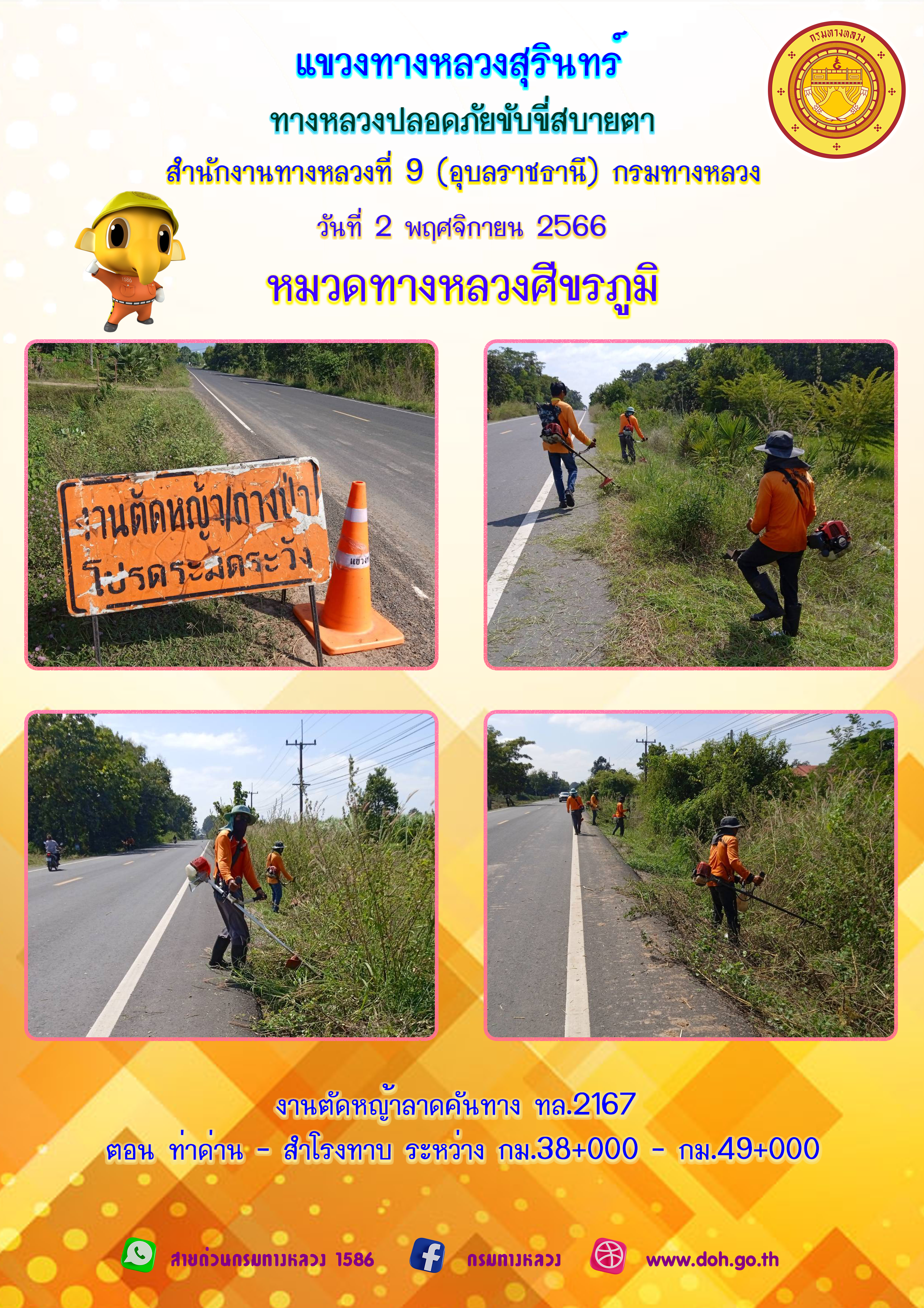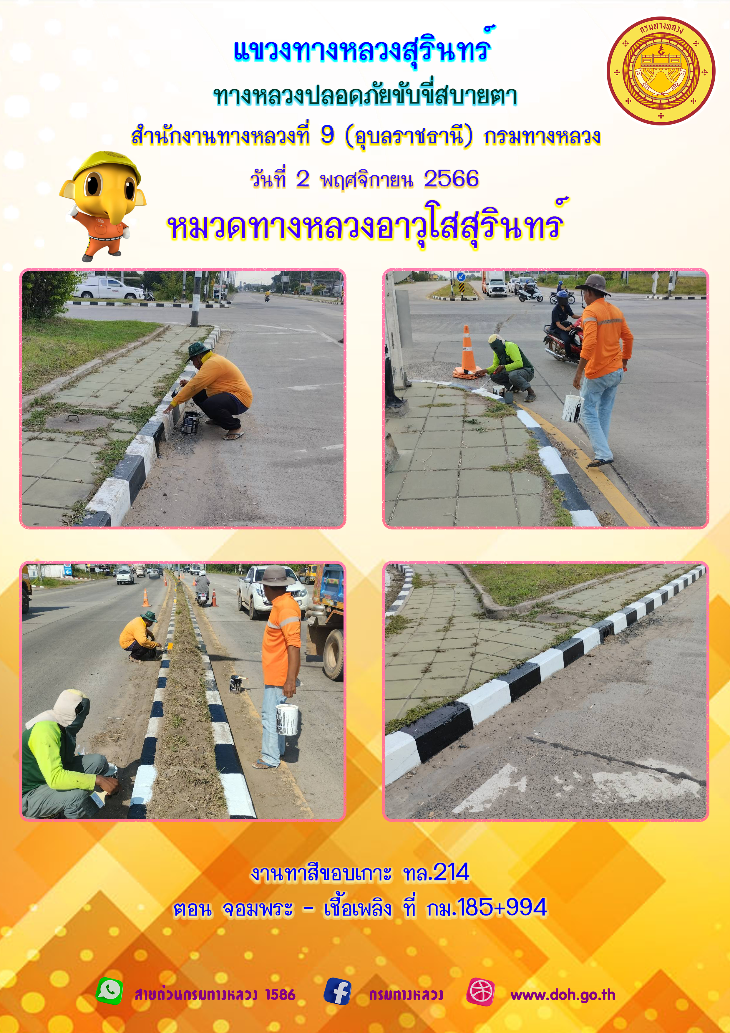 ข้อมูลภาพกิจกรรม : ทางหลวงปลอยภัย ขับขี่สบายตา 2 พฤศจิกายน 2566