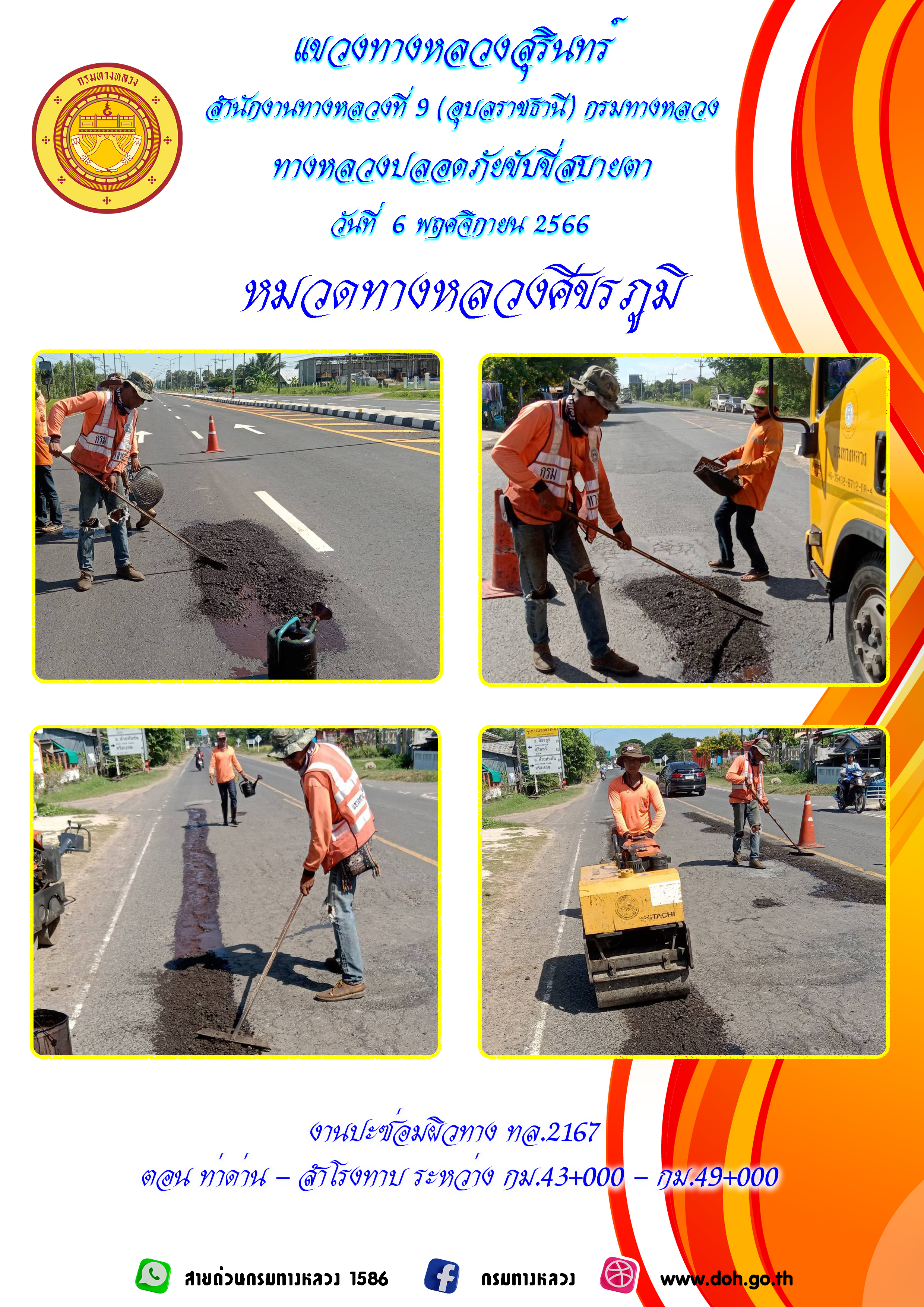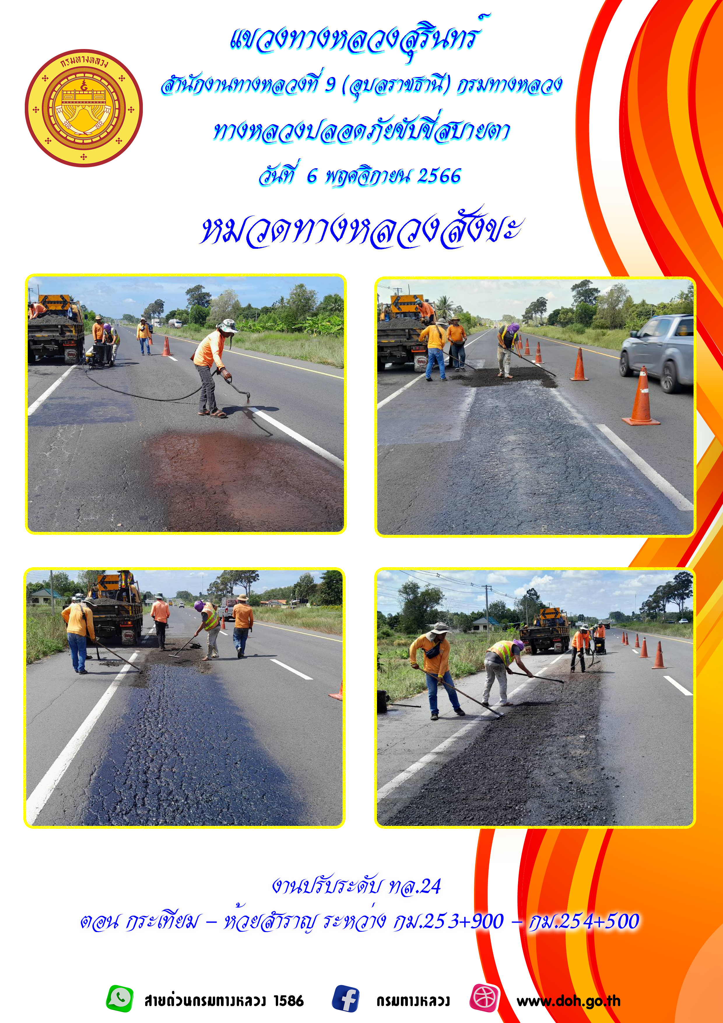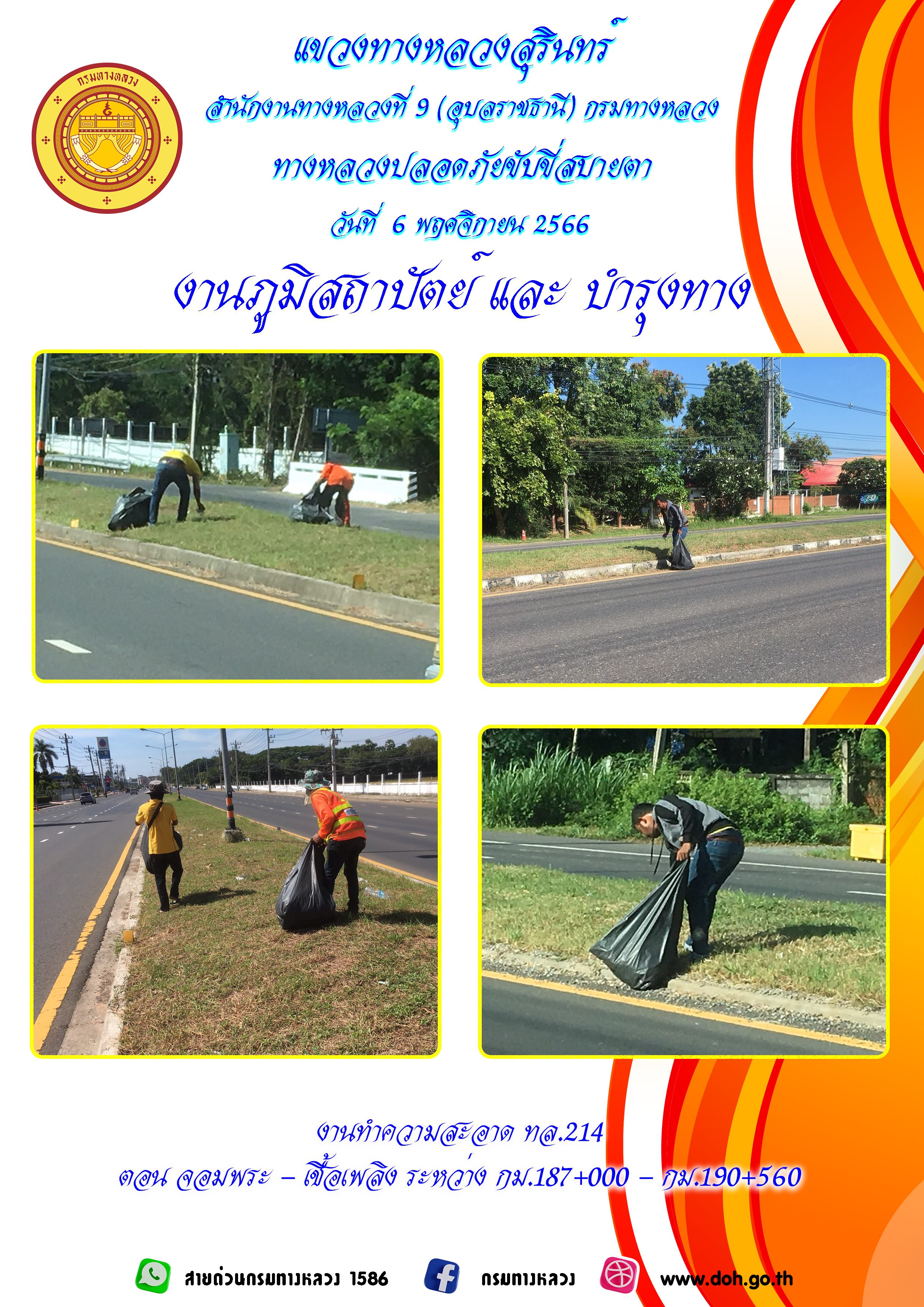 ข้อมูลภาพกิจกรรม : ทางหลวงปลอยภัย ขับขี่สบายตา 6 พฤศจิกายน 2566