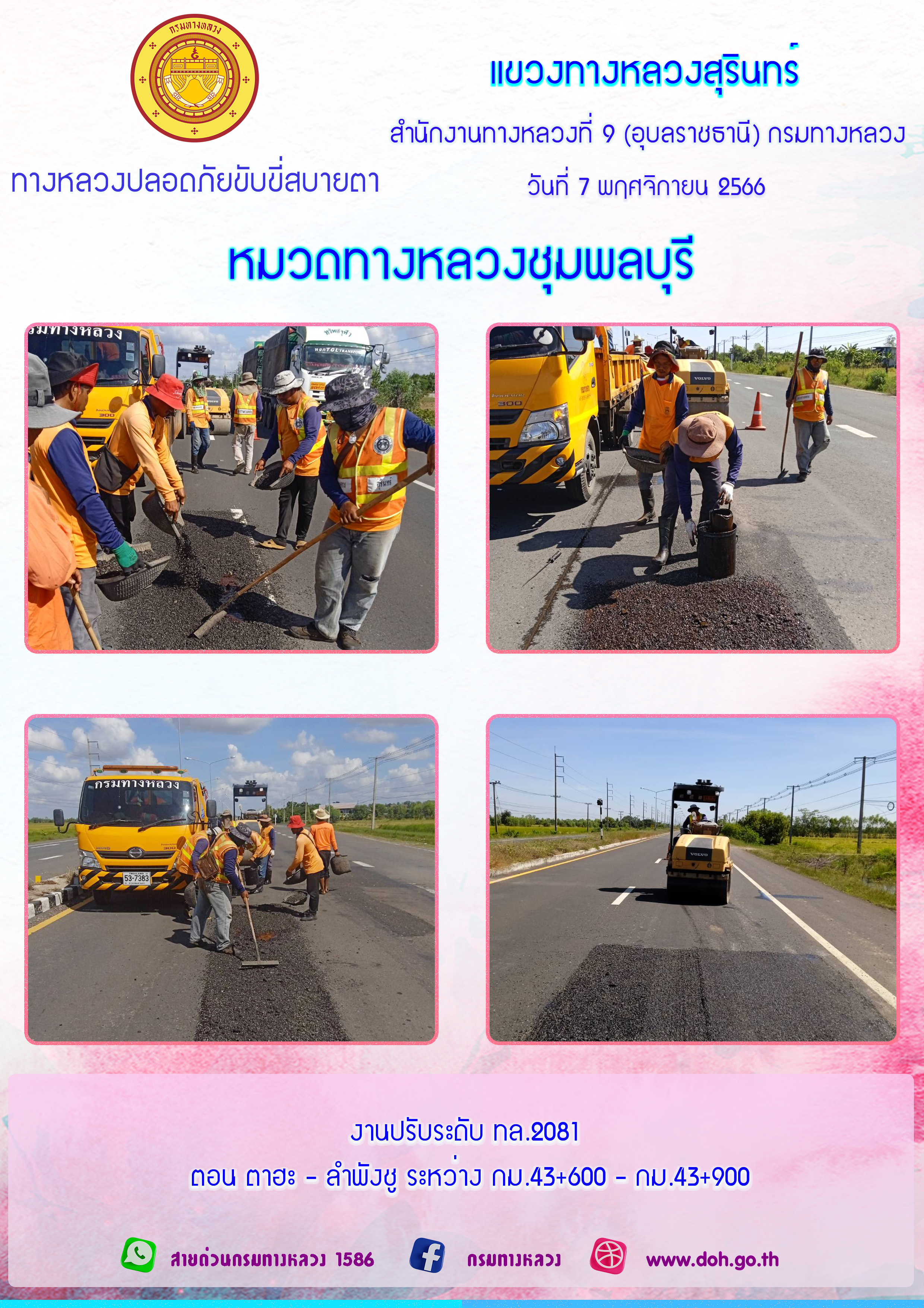 ข้อมูลภาพกิจกรรม : ทางหลวงปลอยภัย ขับขี่สบายตา 7 พฤศจิกายน 2566