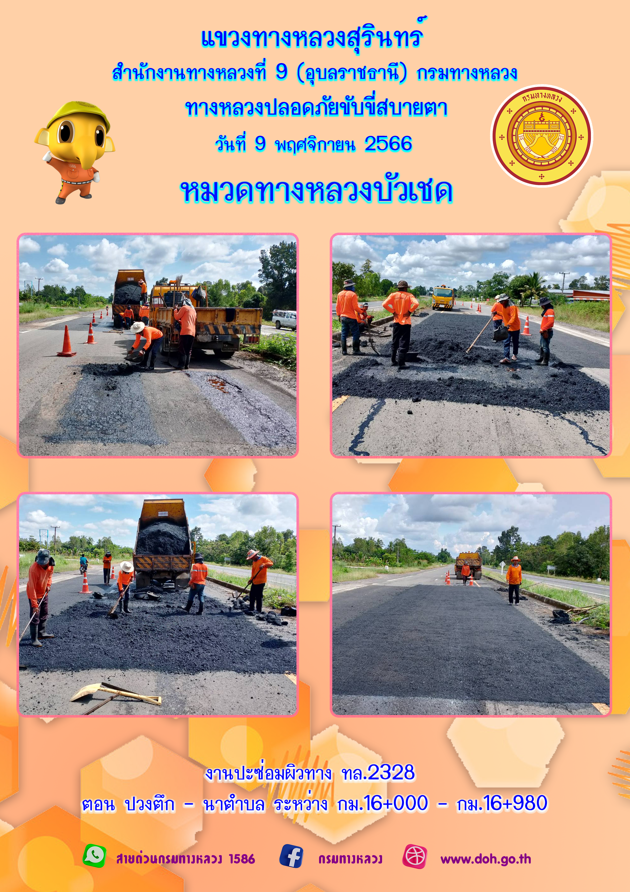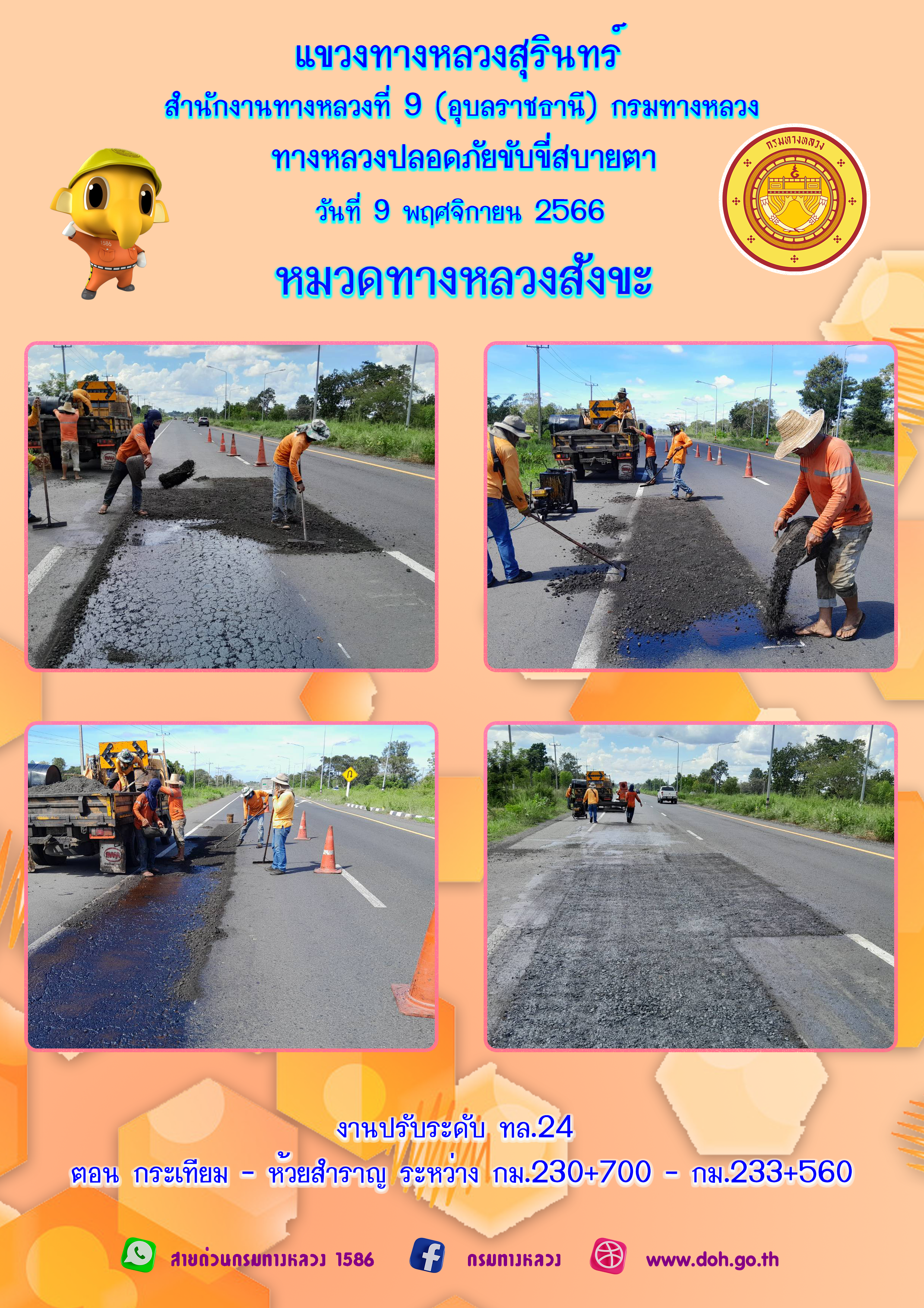 ทางหลวงปลอยภัย ขับขี่สบายตา 9 พฤศจิกายน 2566