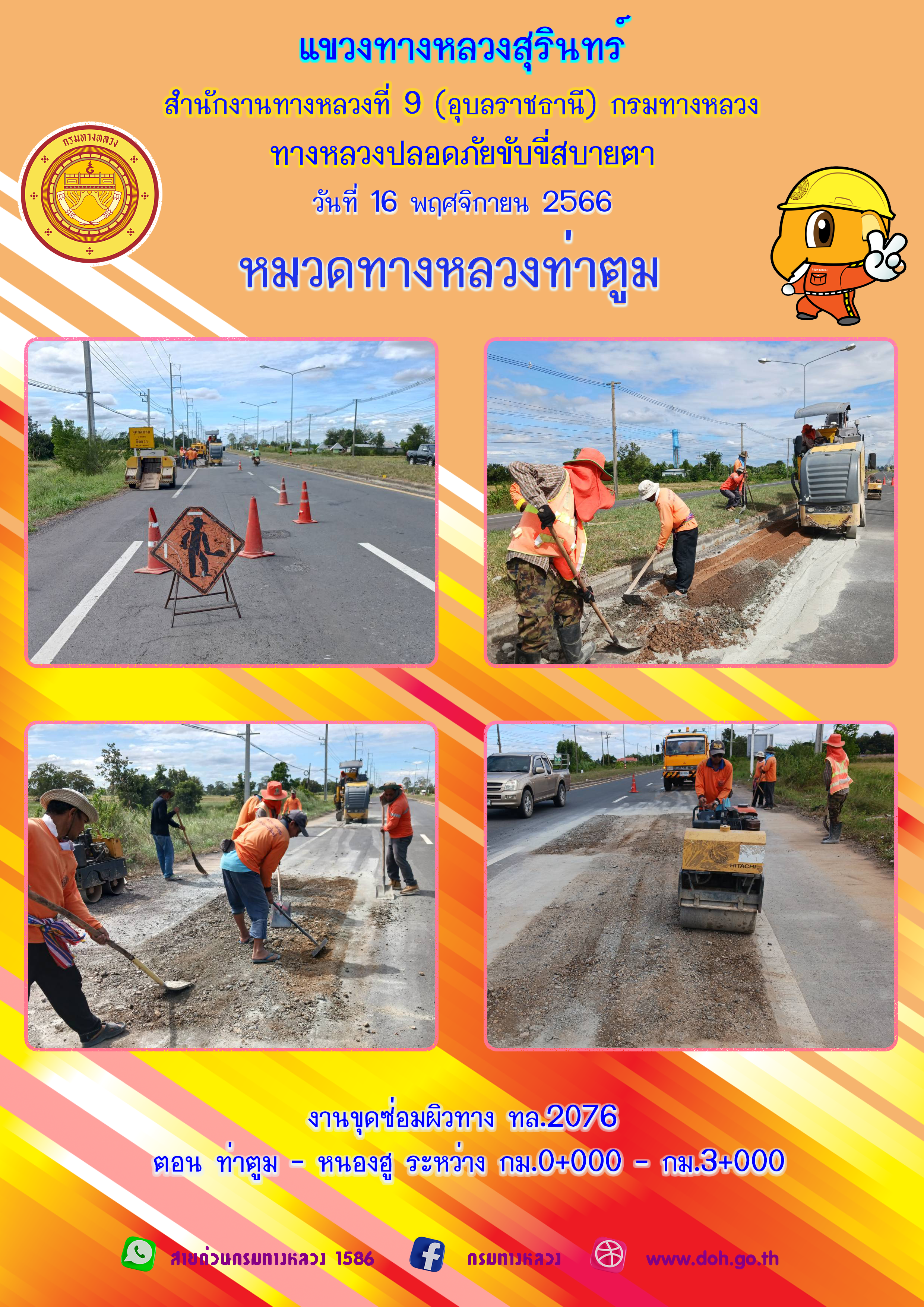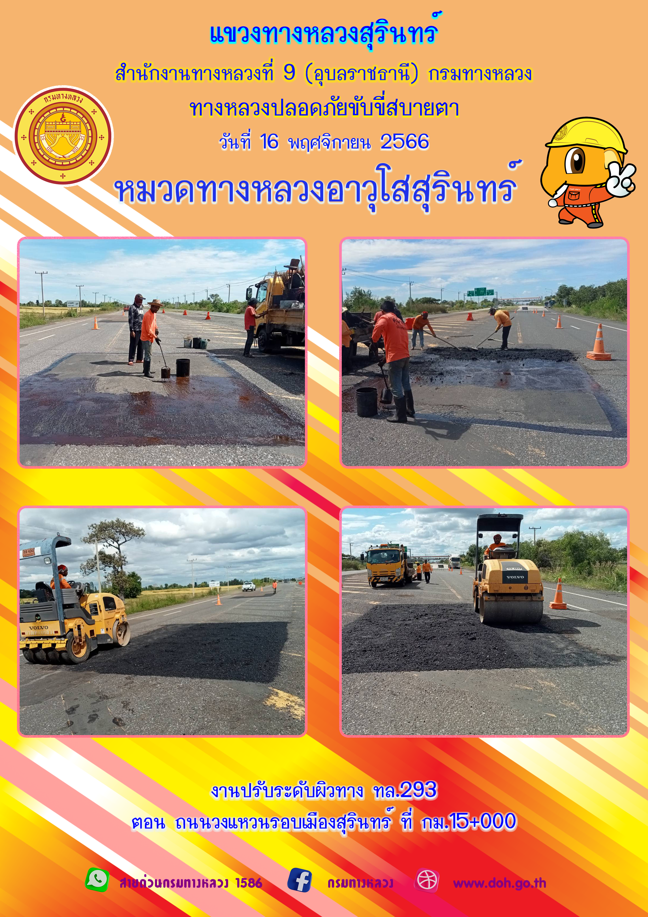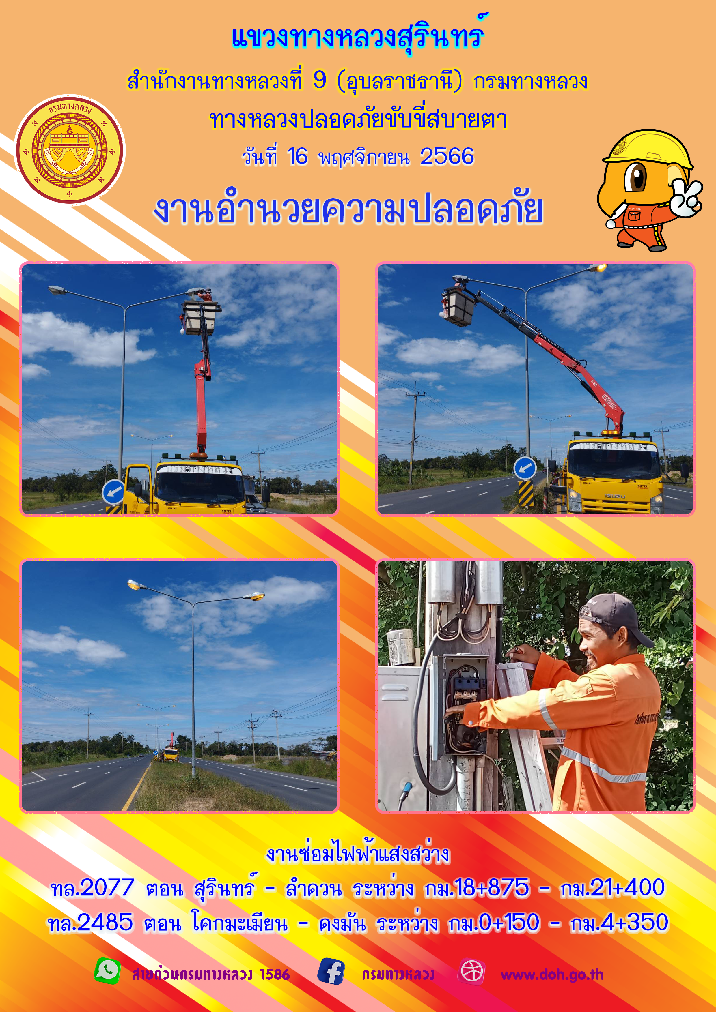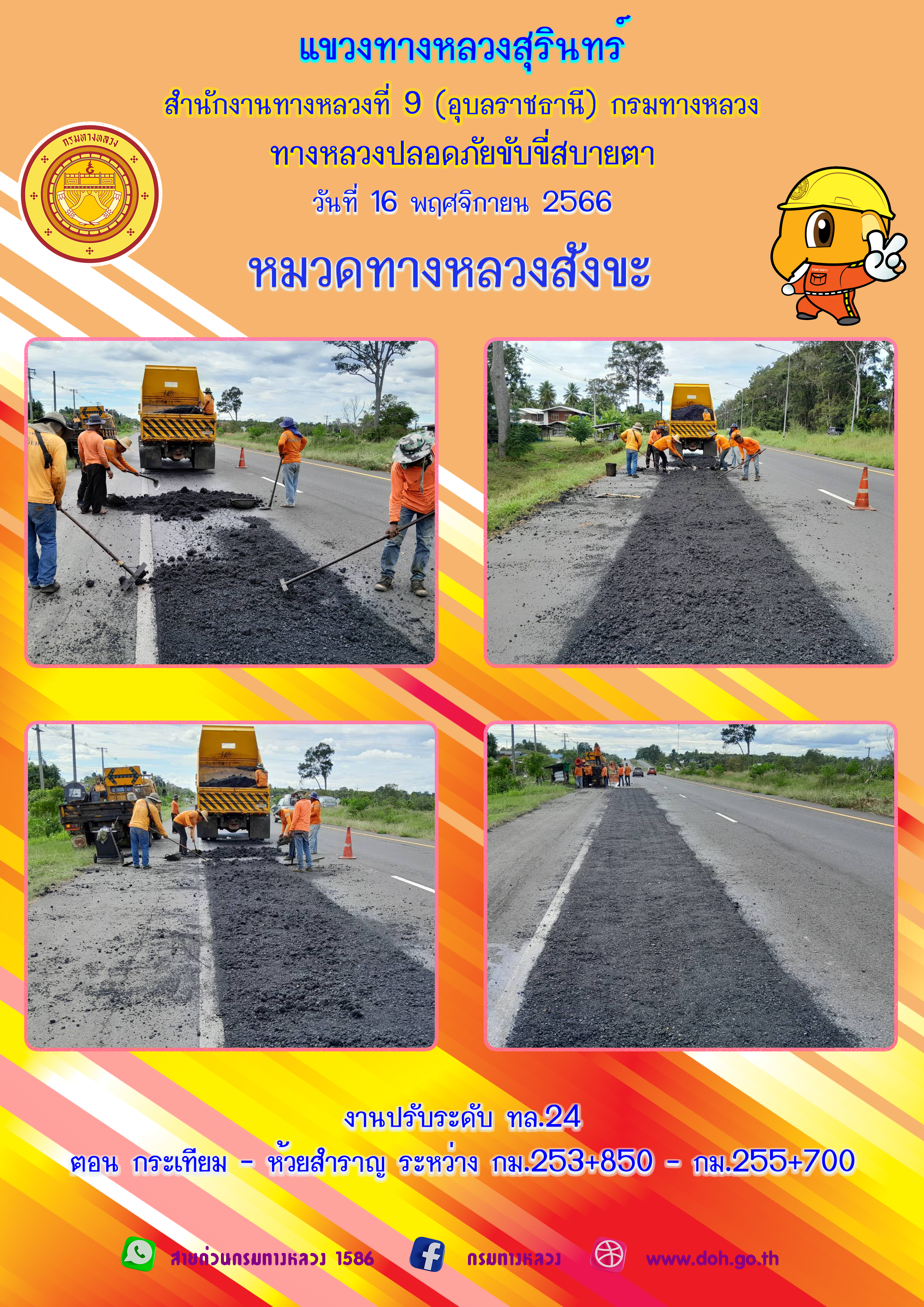 ข้อมูลภาพกิจกรรม : ทางหลวงปลอยภัย ขับขี่สบายตา 16 พฤศจิกายน 2566