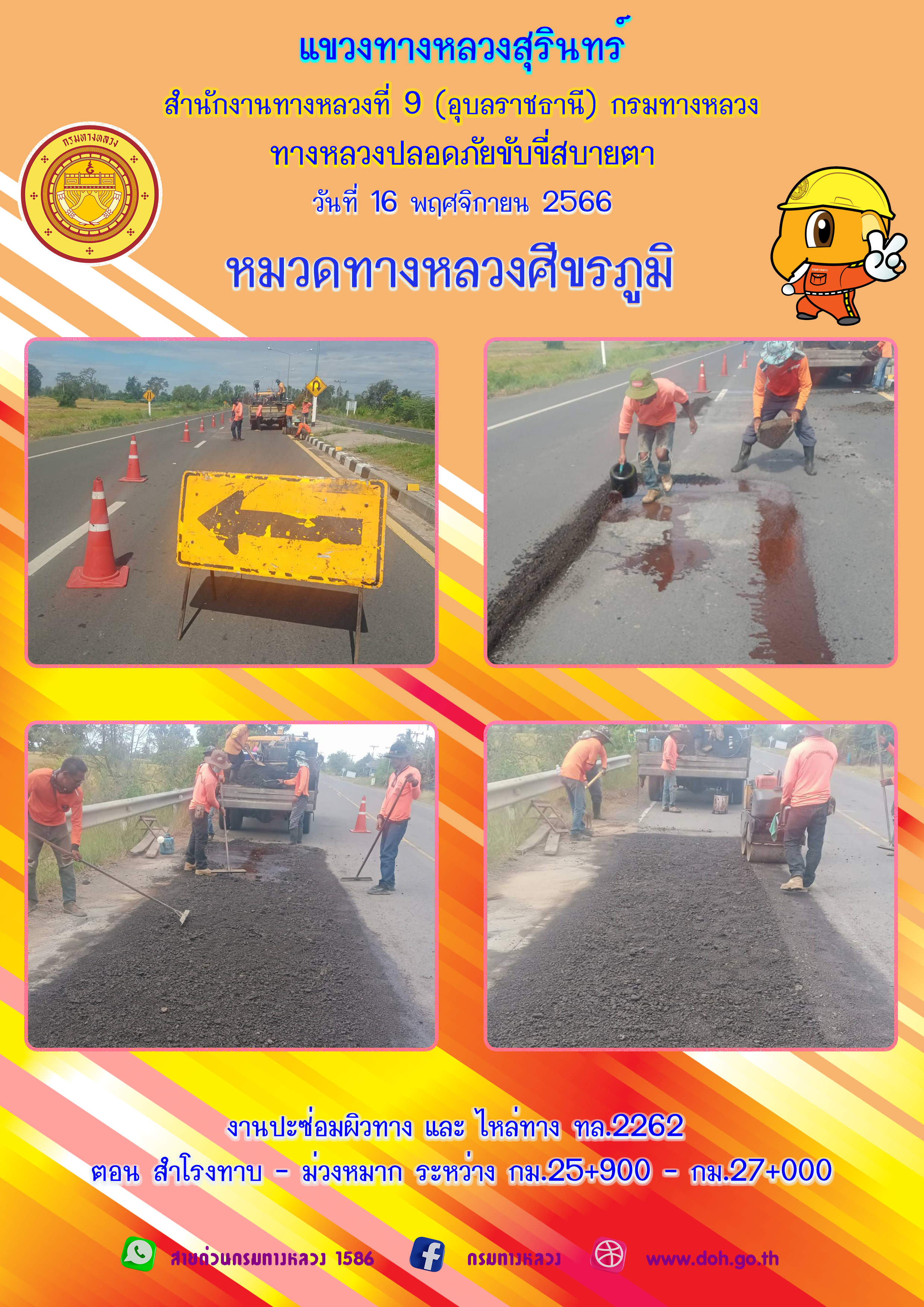 ทางหลวงปลอยภัย ขับขี่สบายตา 16 พฤศจิกายน 2566