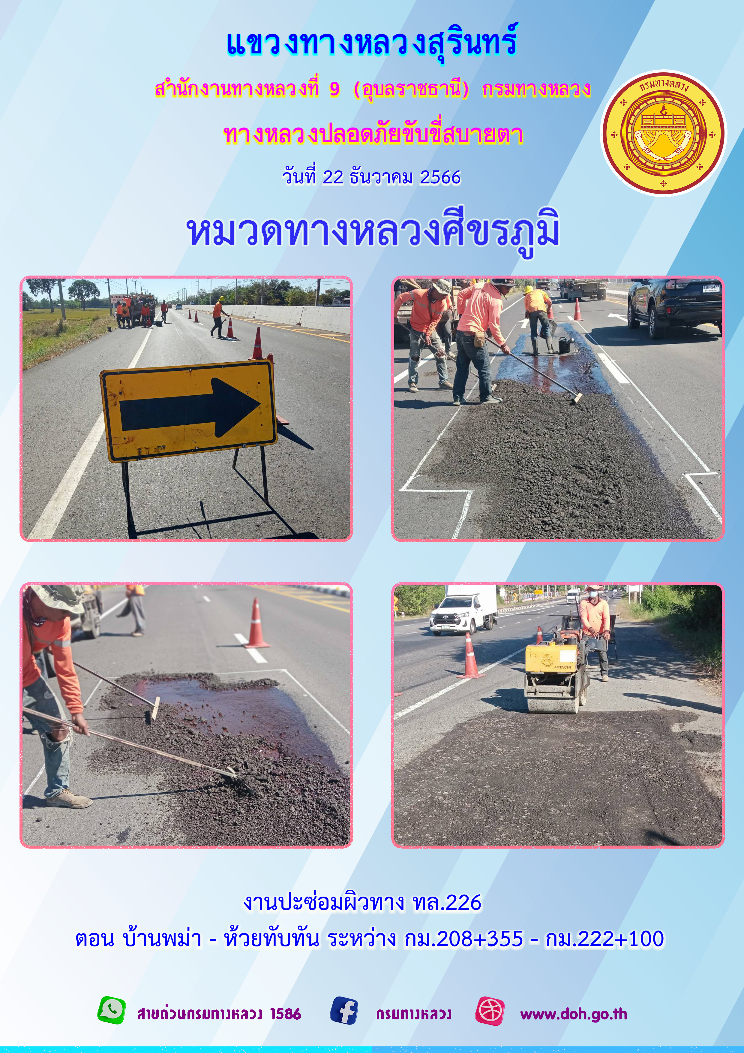 ทางหลวงปลอยภัย ขับขี่สบายตา 22 ธันวาคม 2566