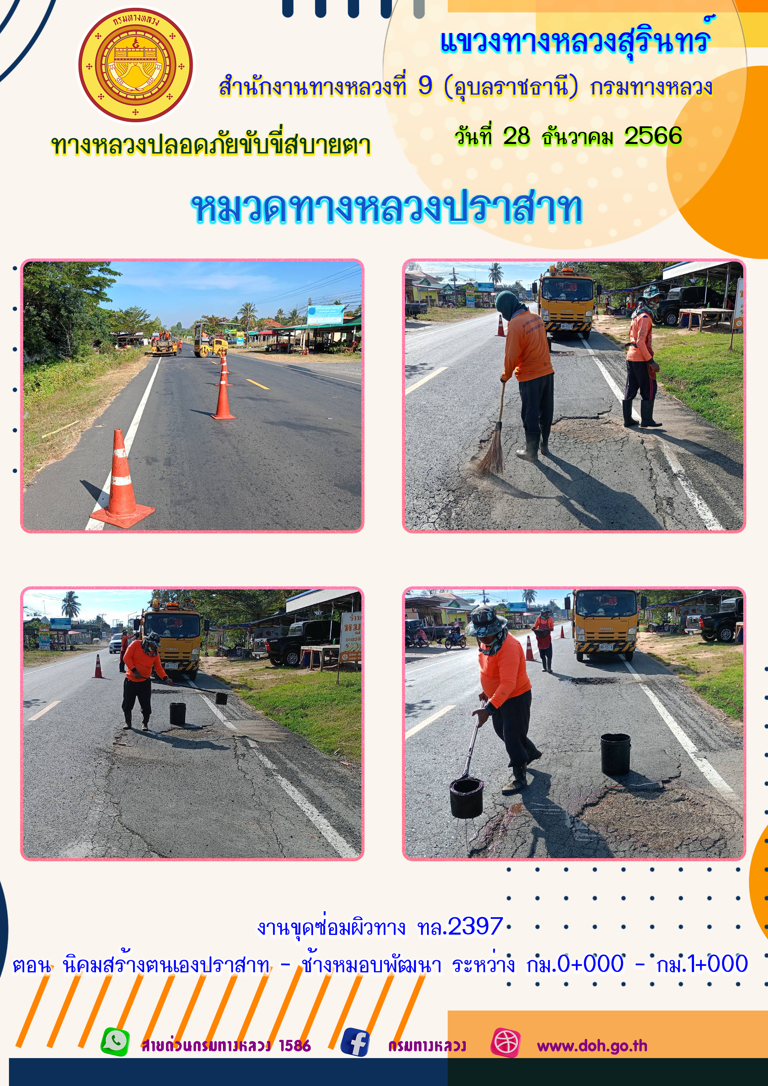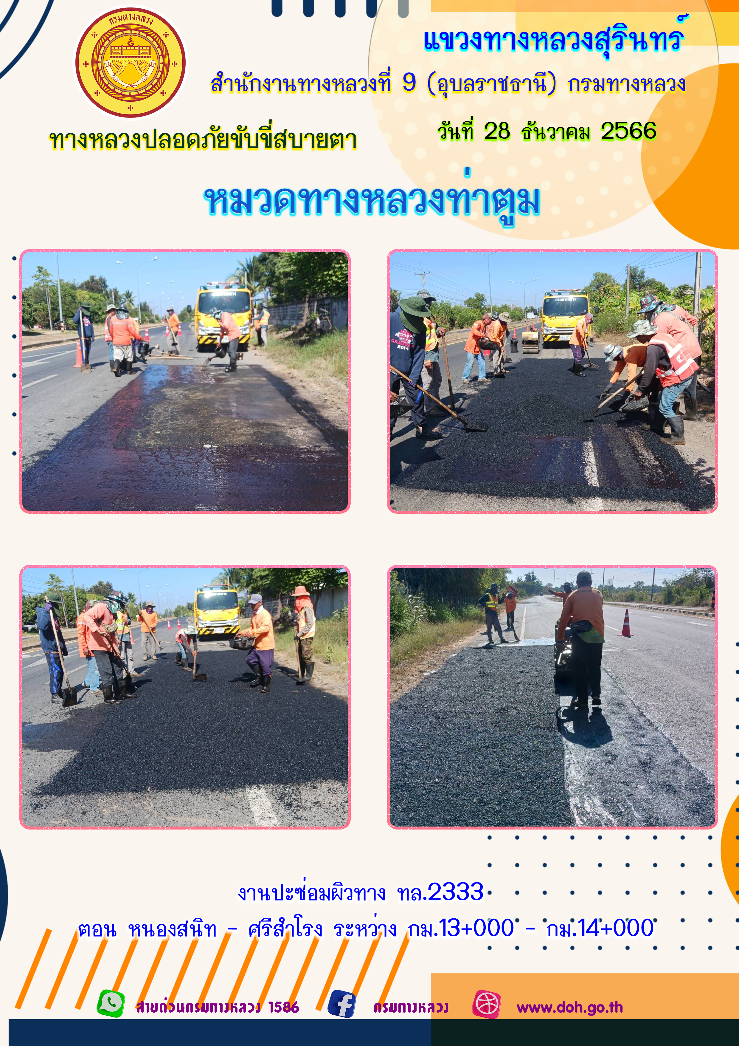 ข้อมูลภาพกิจกรรม : ทางหลวงปลอยภัย ขับขี่สบายตา 28 ธันวาคม 2566